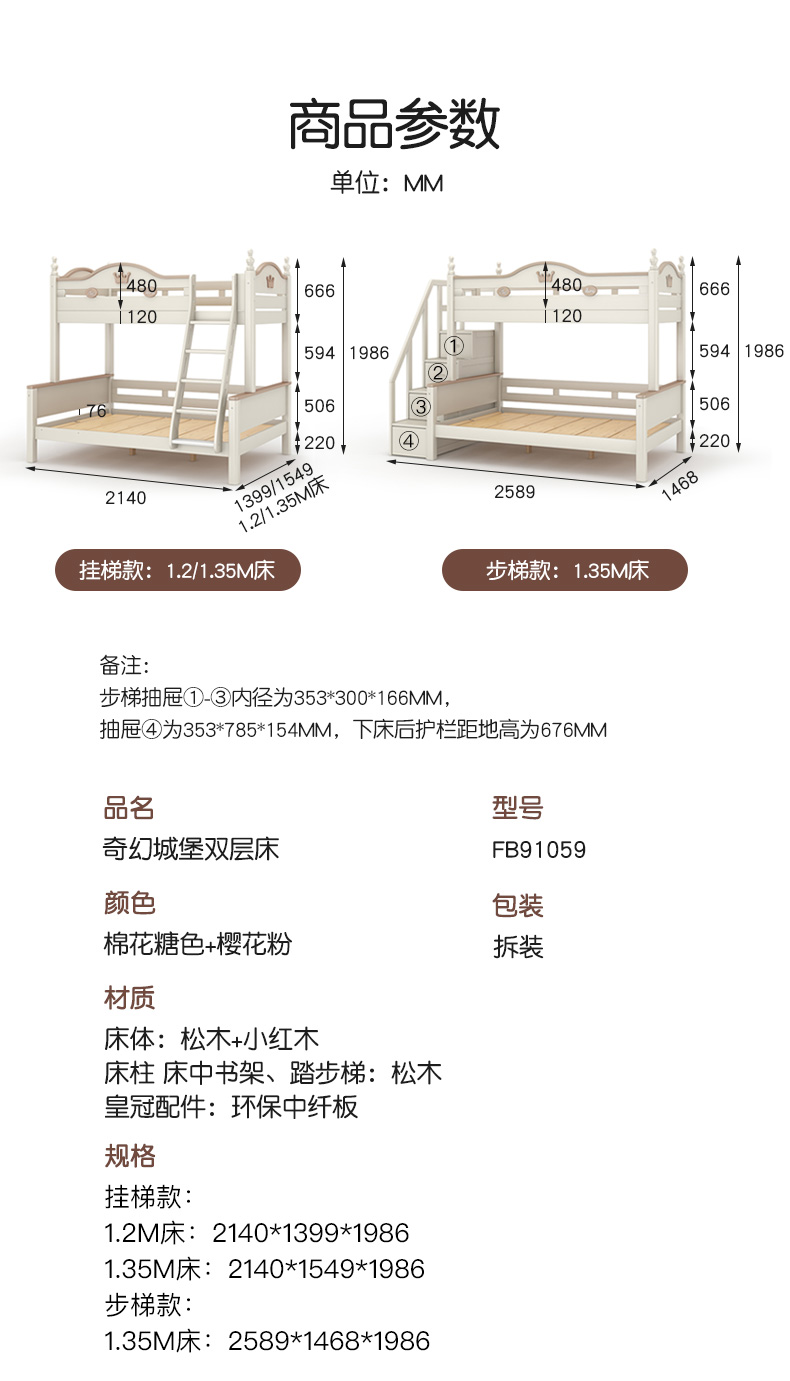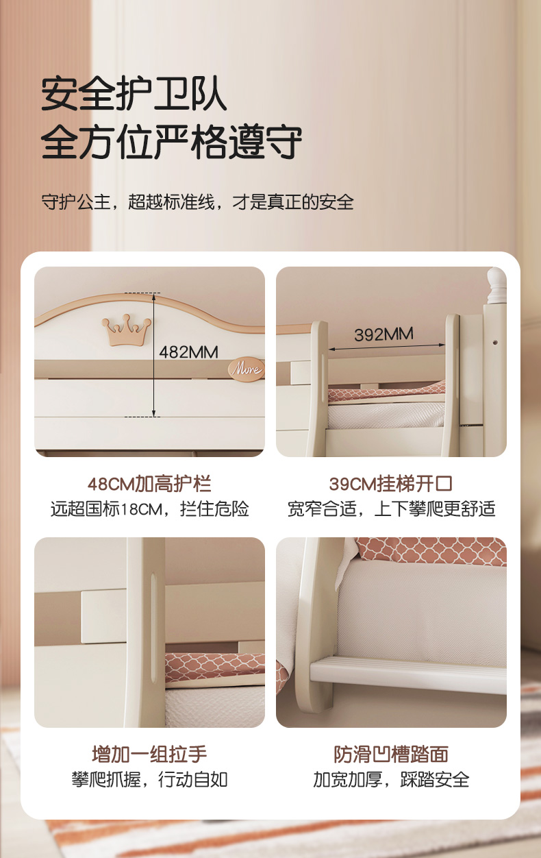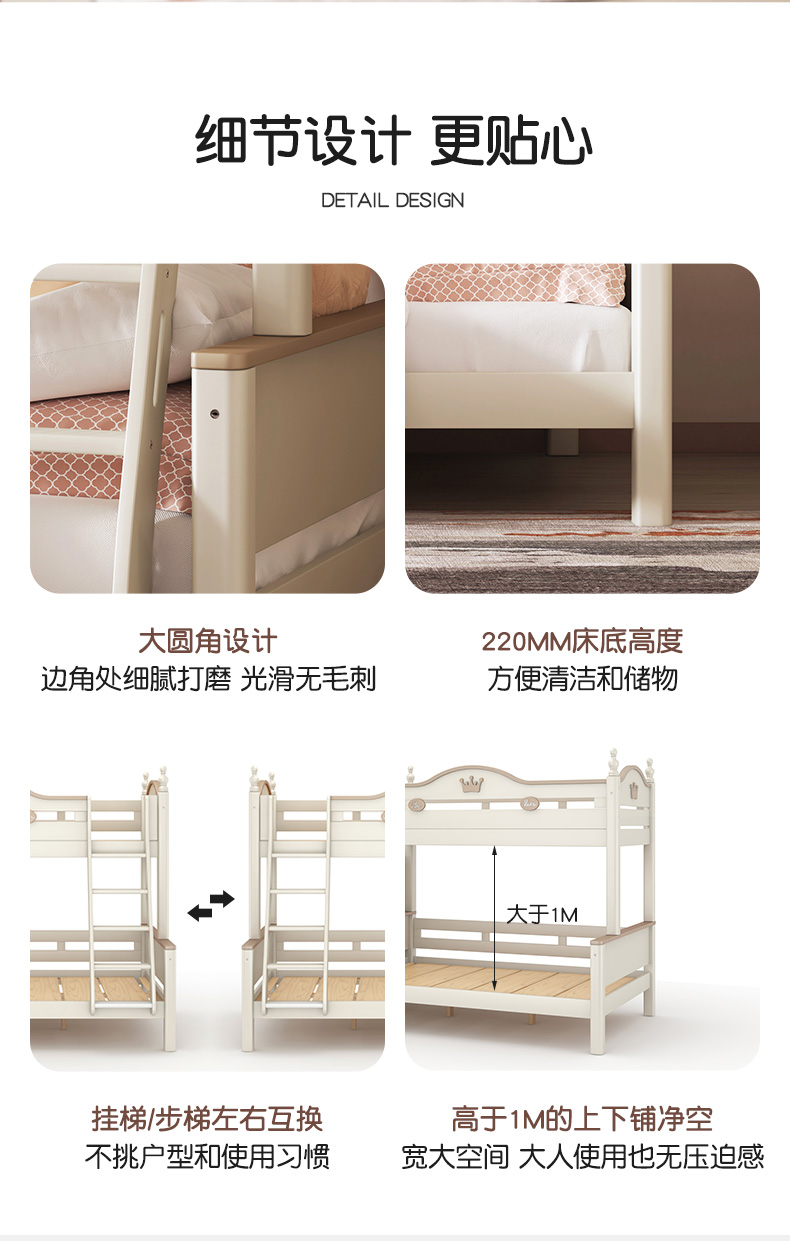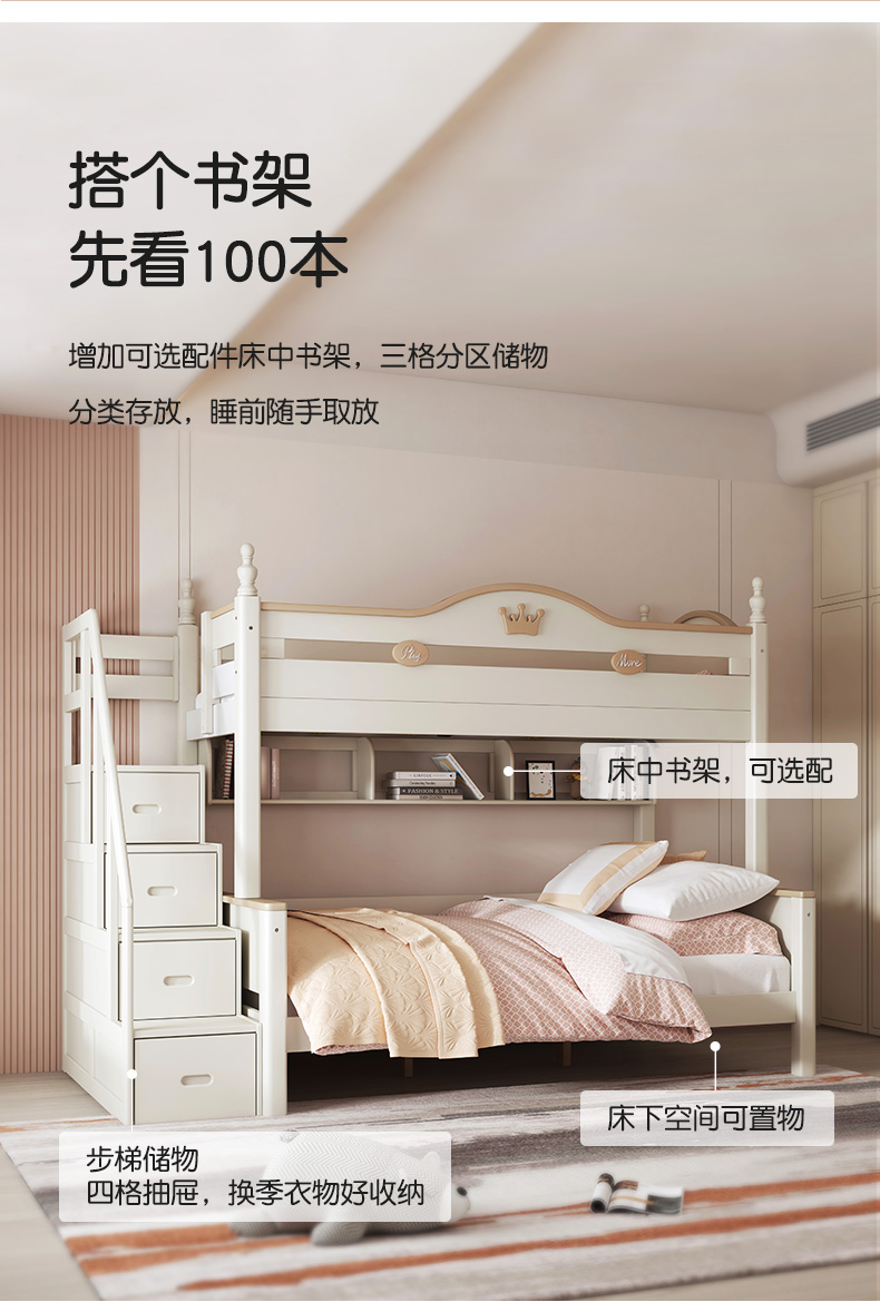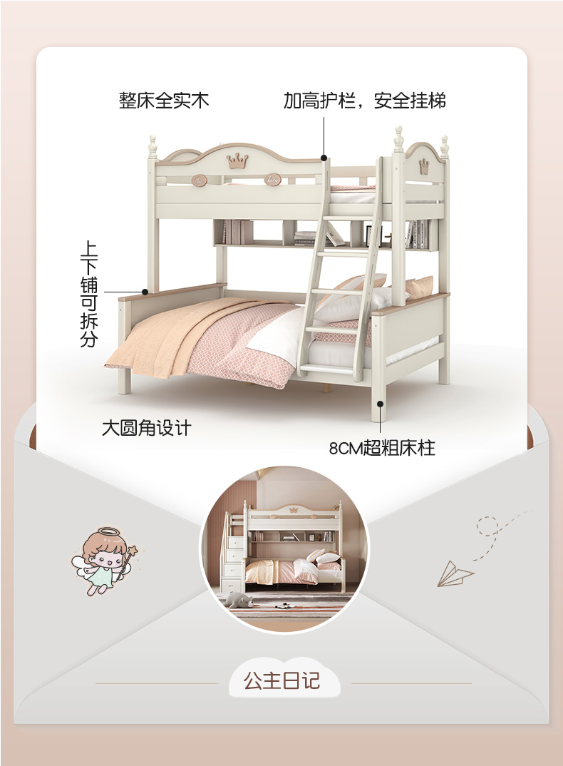 喜梦宝全实木子母床上下铺双层床高低床男孩女孩儿童床奇幻城堡