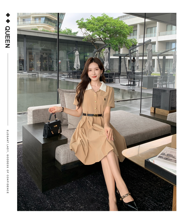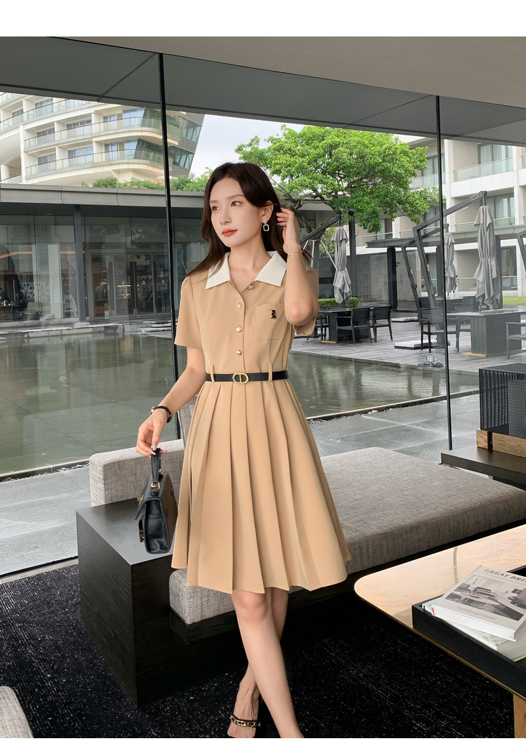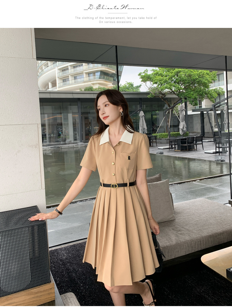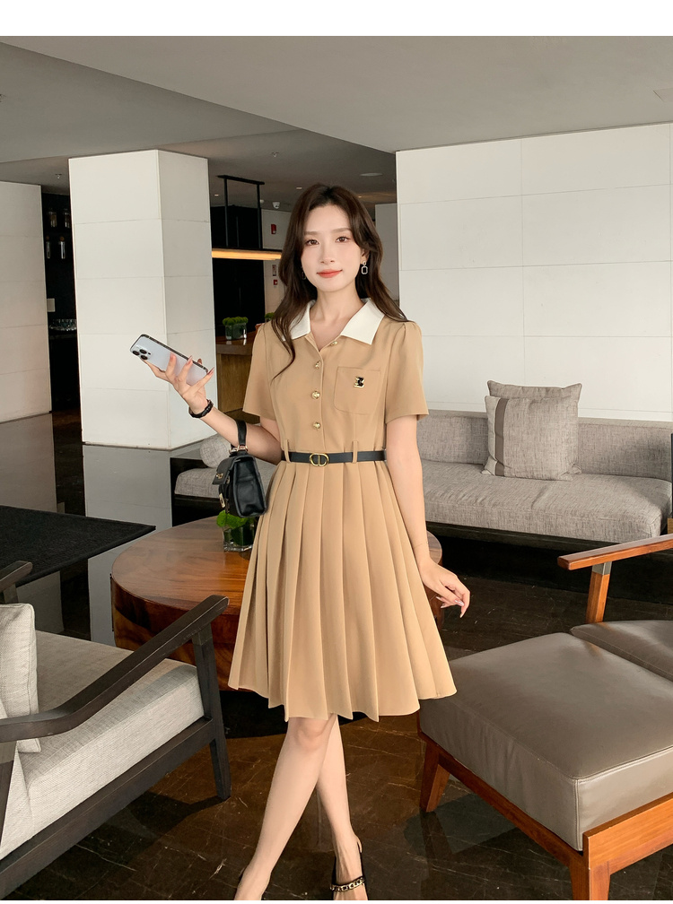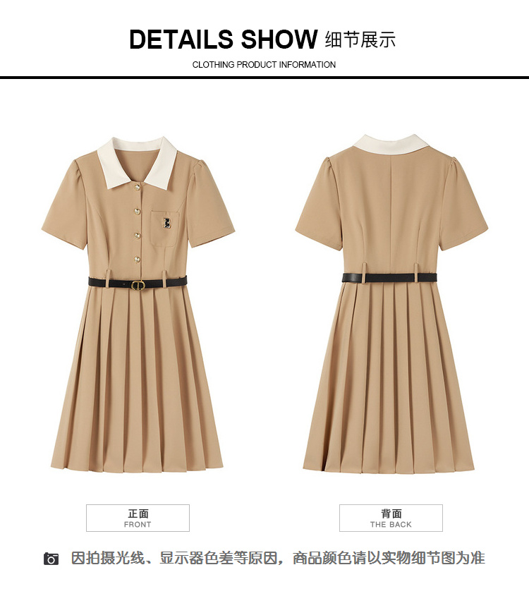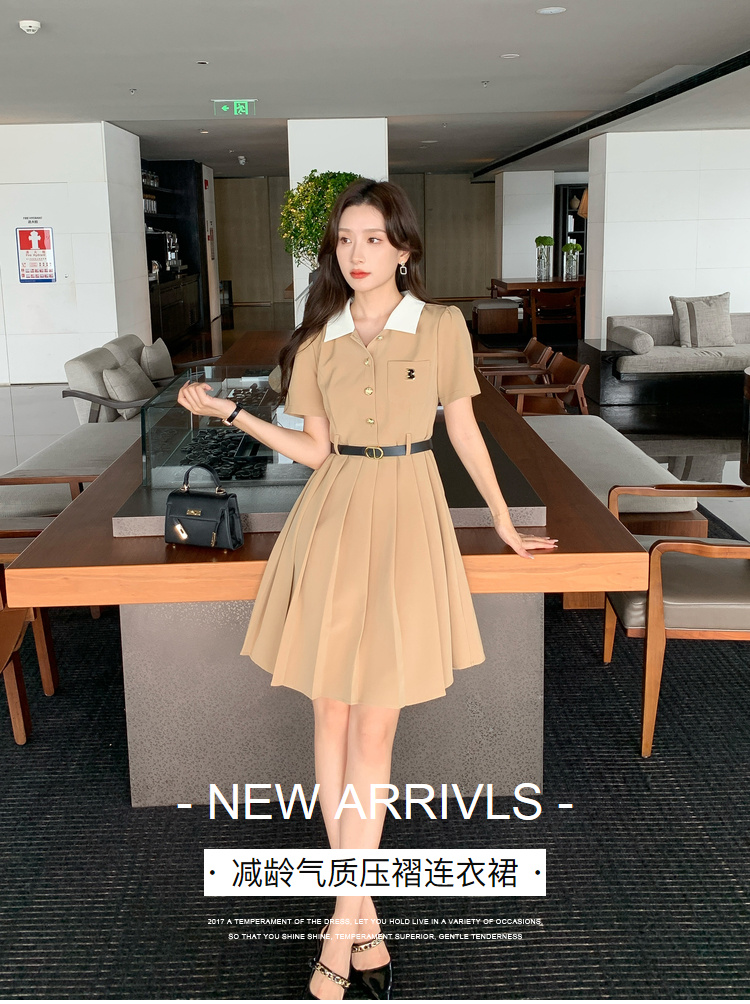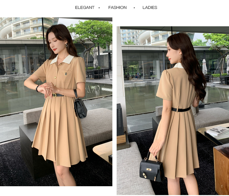 【202号】 [奢姿轻奢系列]减龄压褶连衣裙大码女装夏季新款胖妹妹撞色裙子8942826542