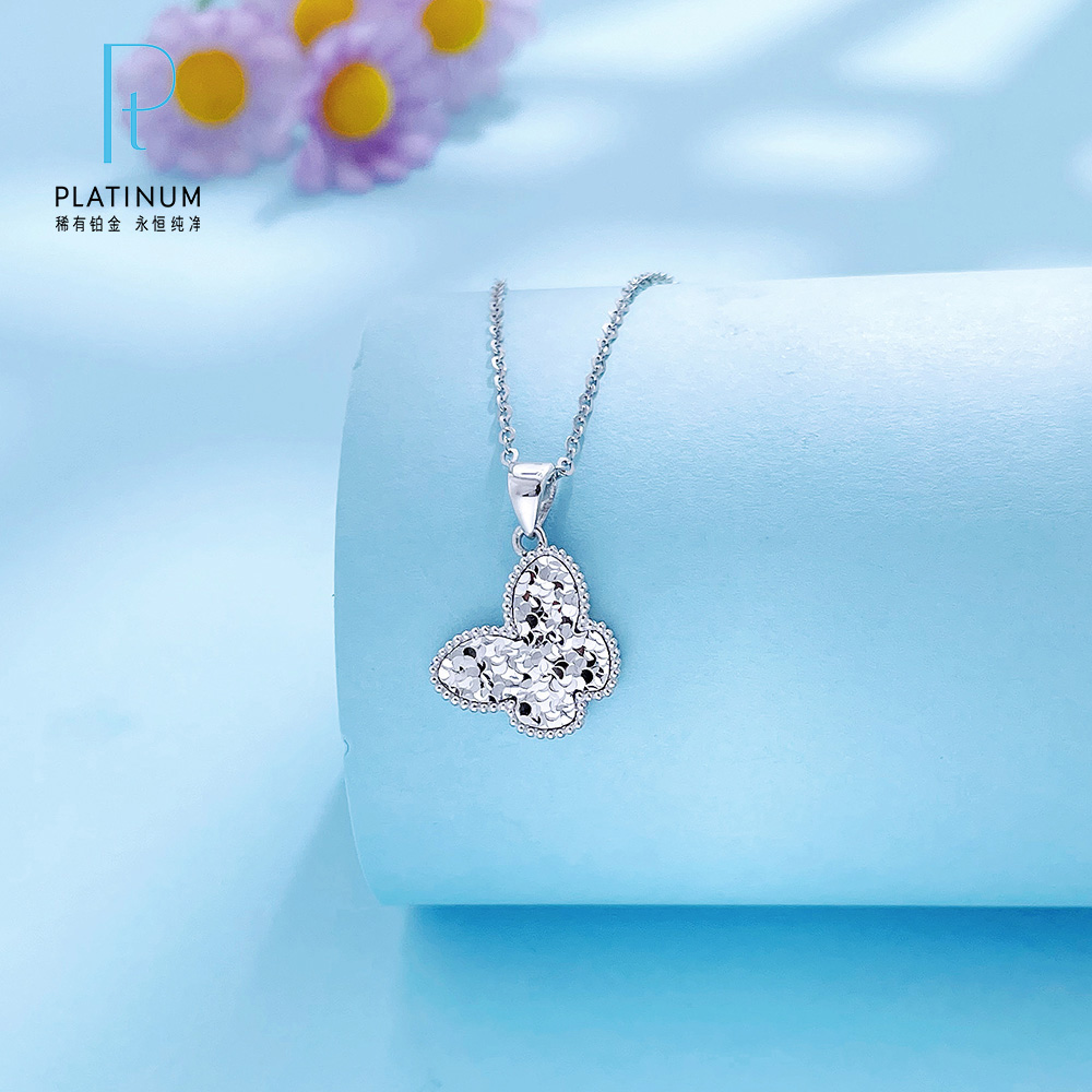 【限时8.8折】【线上铂金馆】PT950 #九紫离火 #碎碎冰 【国际铂金协会】铂金空心碎碎冰福运蝴蝶吊坠(不含链)(BDZ00170)预售产品下单后不退款不退货不换货不补差价)