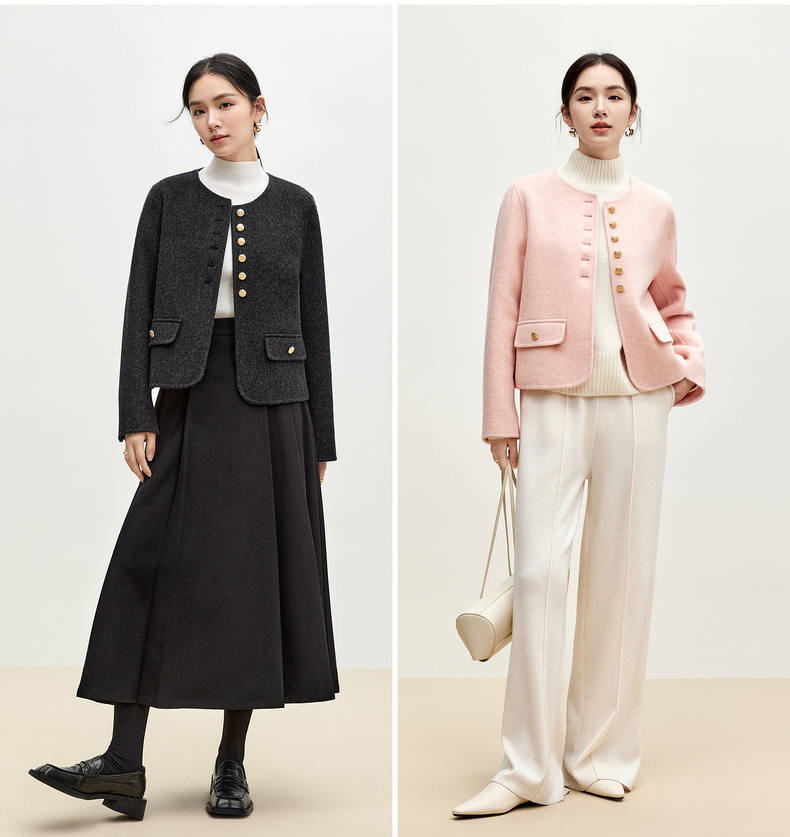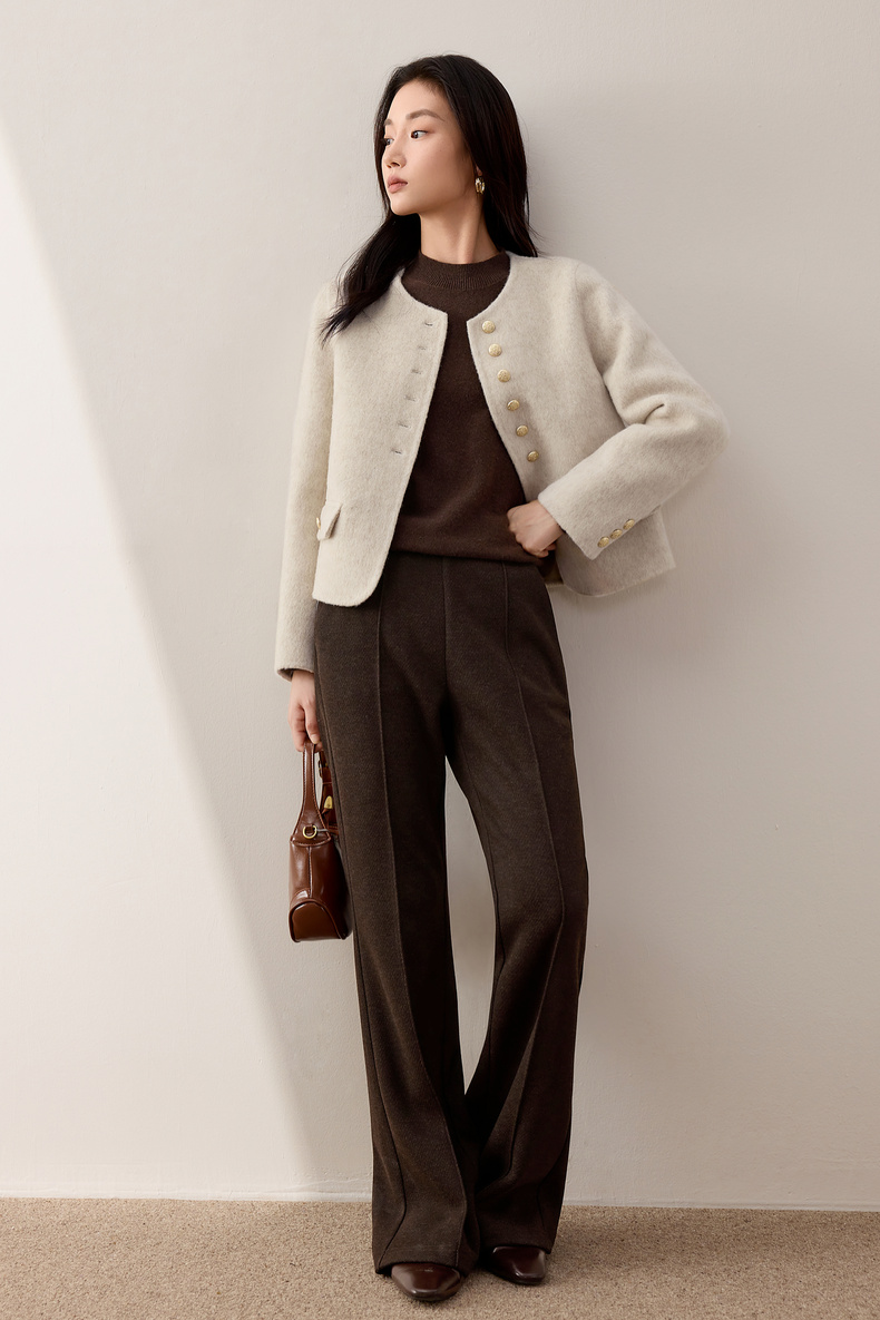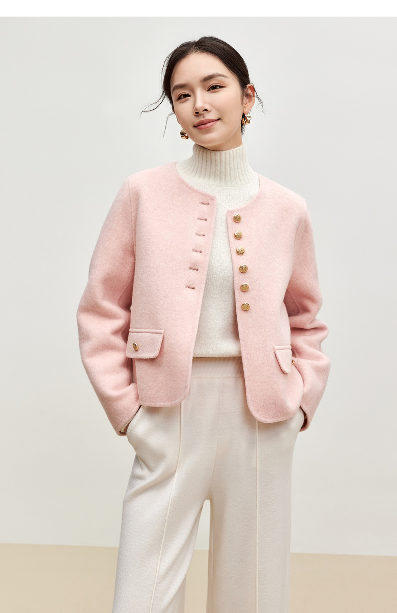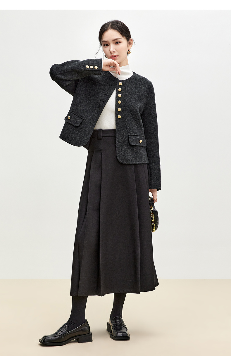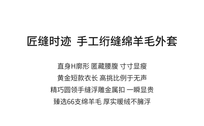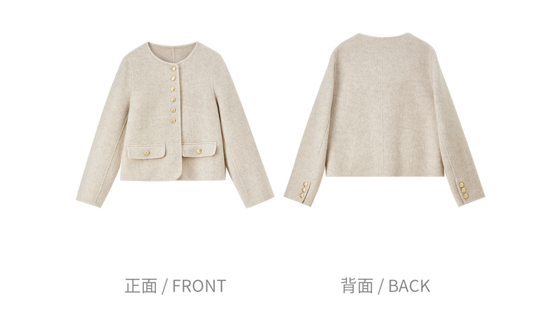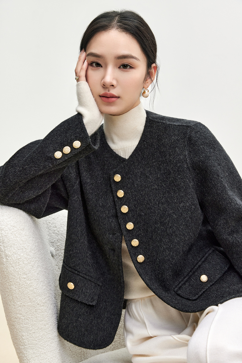 【内购】【含绵羊毛】优雅气质通勤圆领浮雕金属扣长袖短款厚保暖毛呢外套-W44O56591