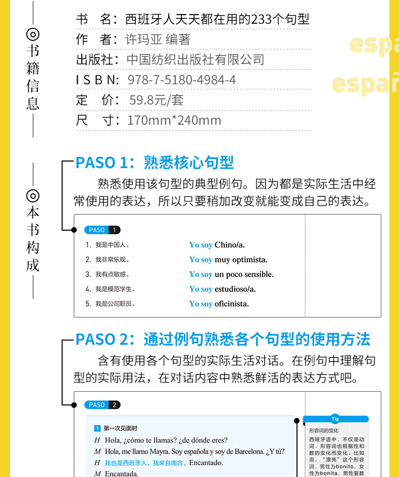 西班牙人天天都在用的233个句型 许玛亚 现代速成西班牙语词汇句子会话口语零基础学西班牙语自学零基础西班牙语常用语法书籍