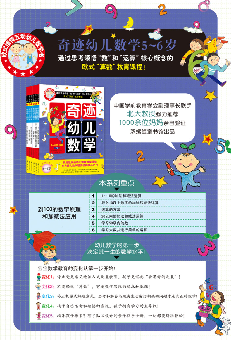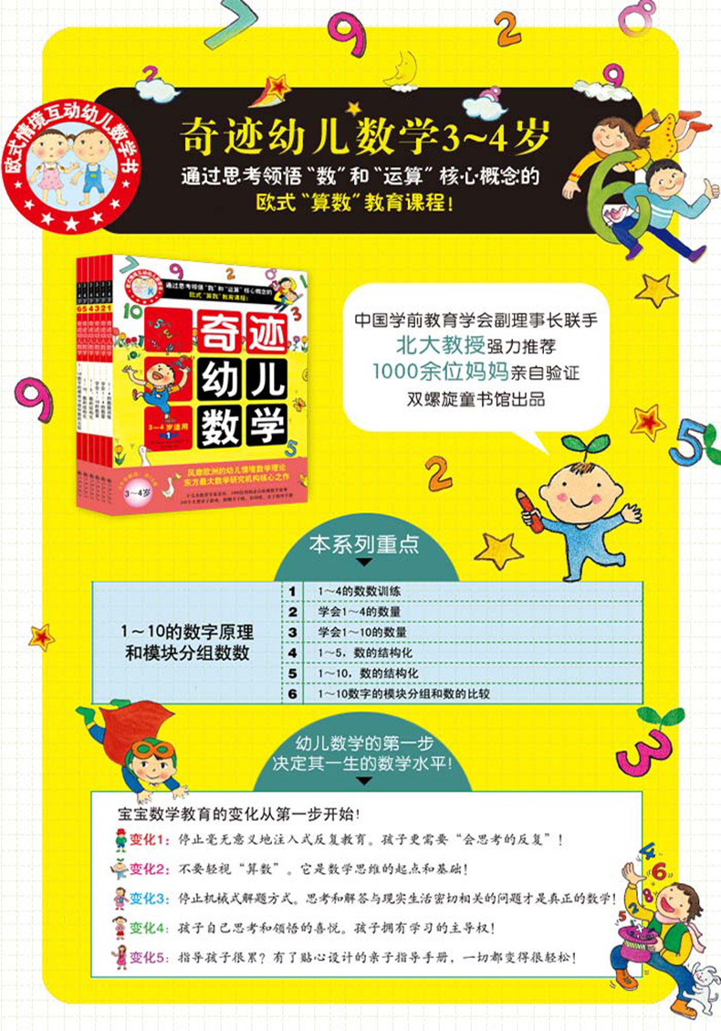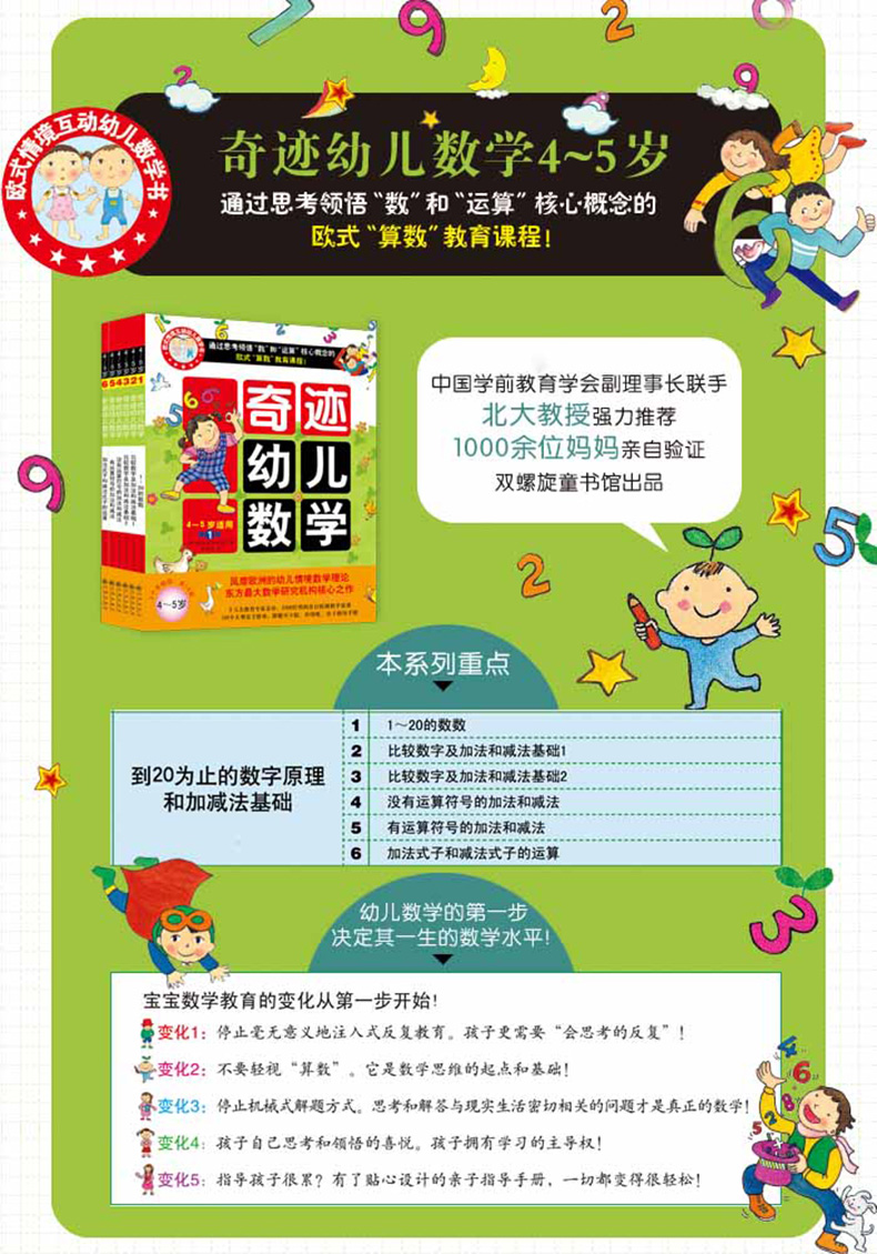 全套18册 奇迹幼儿数学3-4-5-6岁 学前低幼儿童数学启蒙认知幼儿园教材算术入门学数学 亲子互动贴纸涂色思维训练游戏童书籍