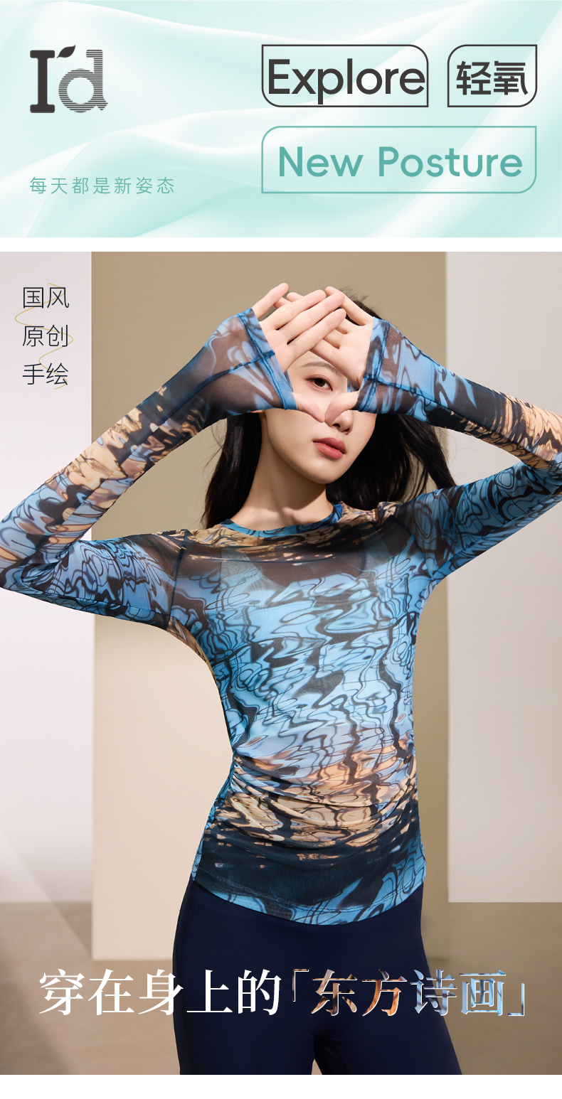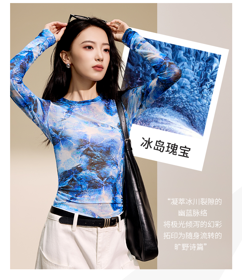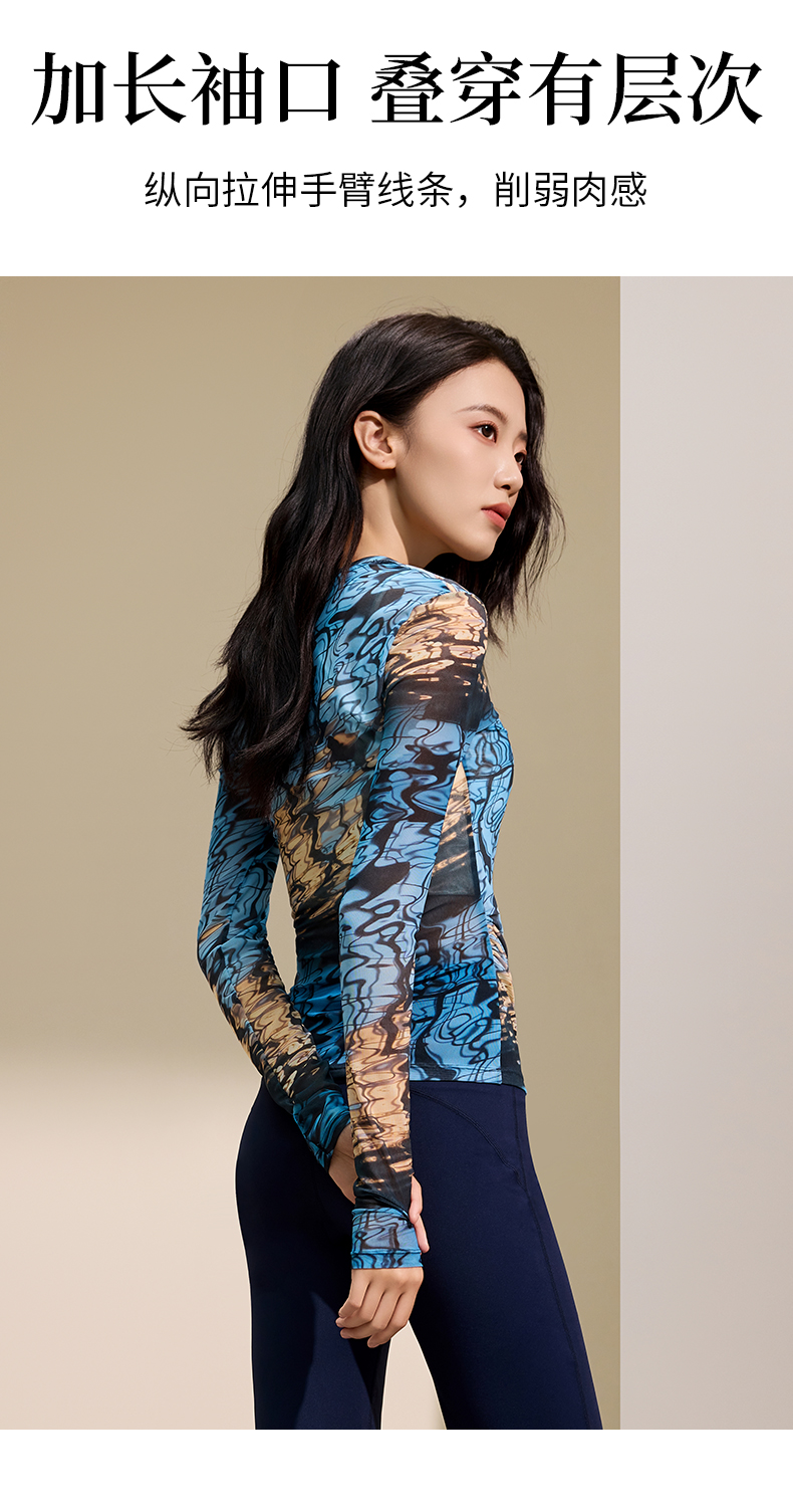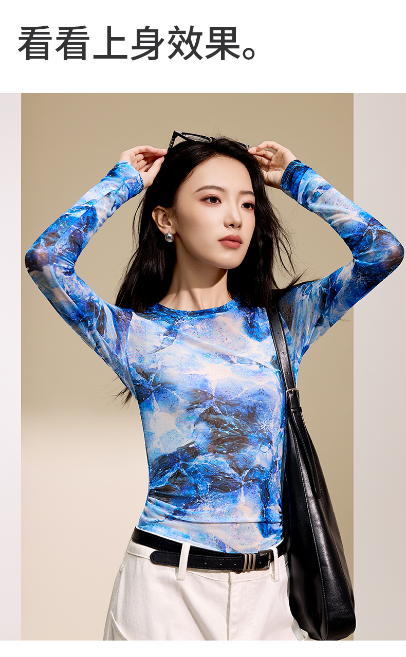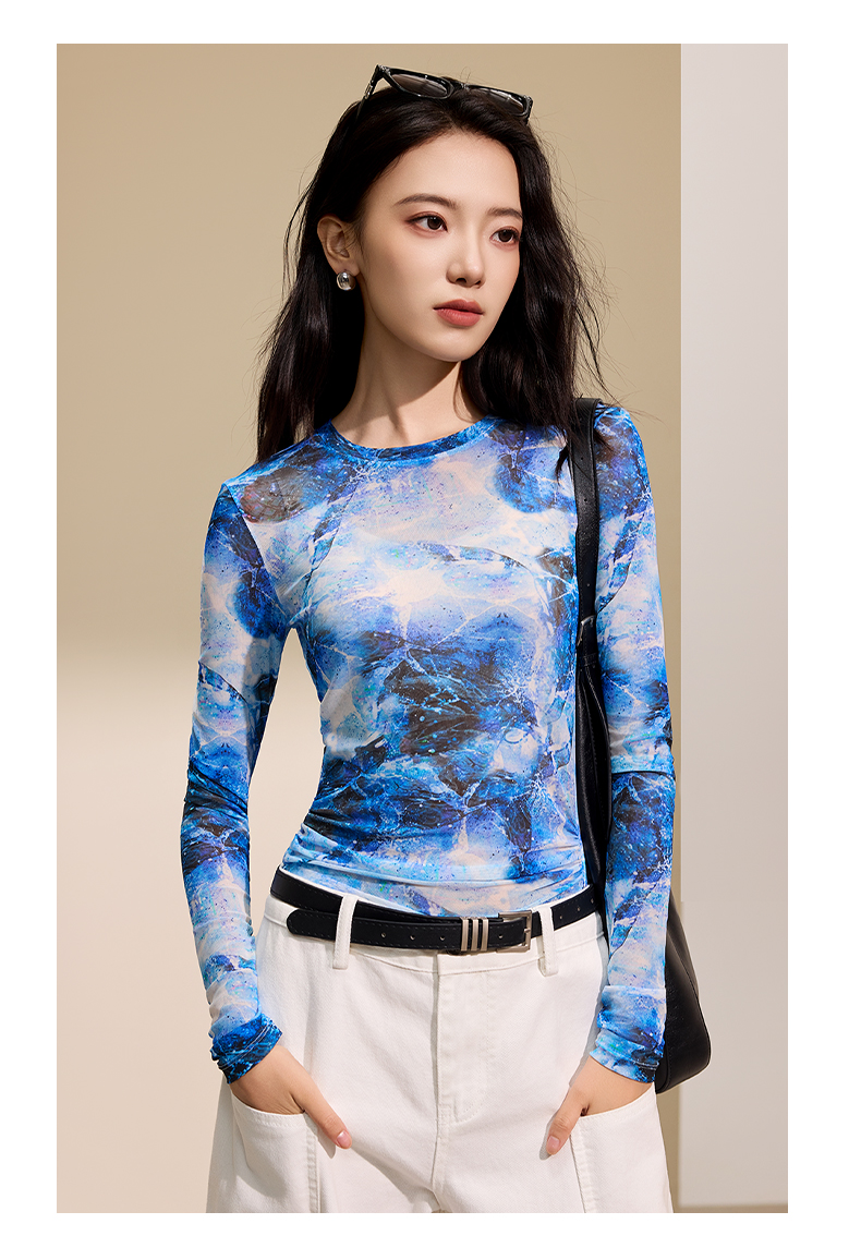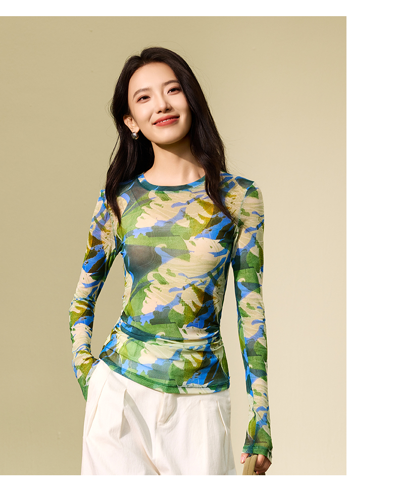 I‘d爱帝原创东方韵网纱长袖衫秋季修身打底上衣