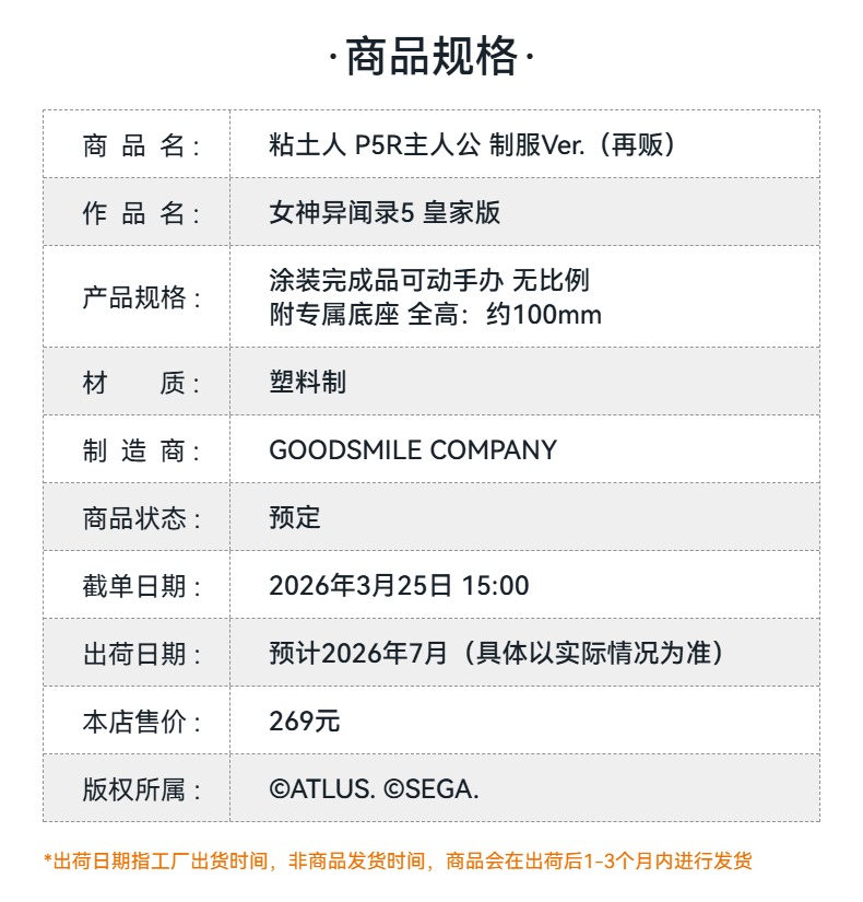 【GSC预售定金】粘土人 P5R主人公 制服Ver. 女神异闻录5 皇家版