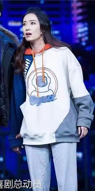 04882943拼接卫衣,明星同款,均码号,100-140斤都可以穿,以灰白拼接主打,颜色靓丽,面料以棉为主,透气性好,穿着舒适,搭配牛仔裤,运动裤。