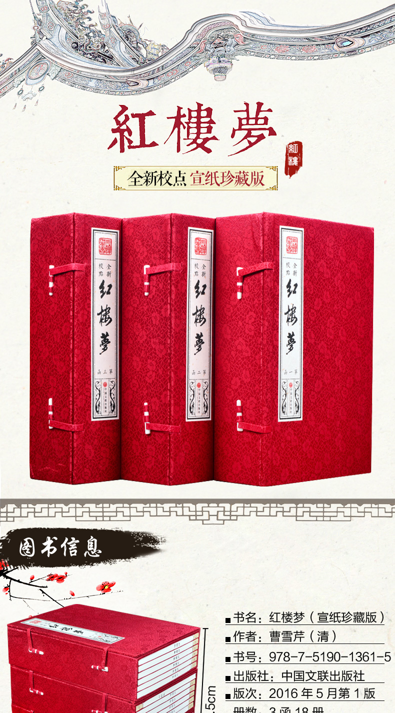 【优惠套装】套装共3函18册 简体竖排 红楼梦原著仿古线装版 足本无删减 全新校点 手工宣纸线装 四大名著之一可搭配水浒传西游记三国演义书
