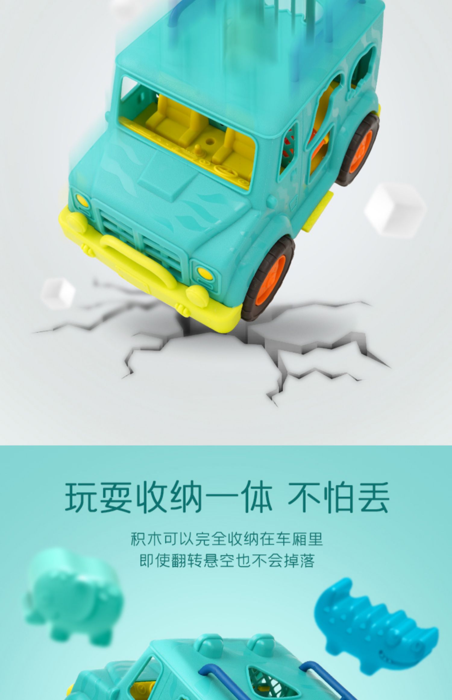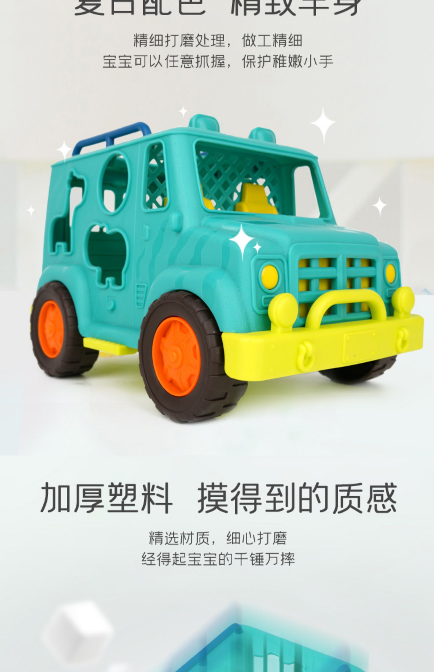 1岁+ | 美国B-toys 比乐 形状分类卡车 宝宝颜色认知形状配对卡车儿童益智早教玩具动物积木