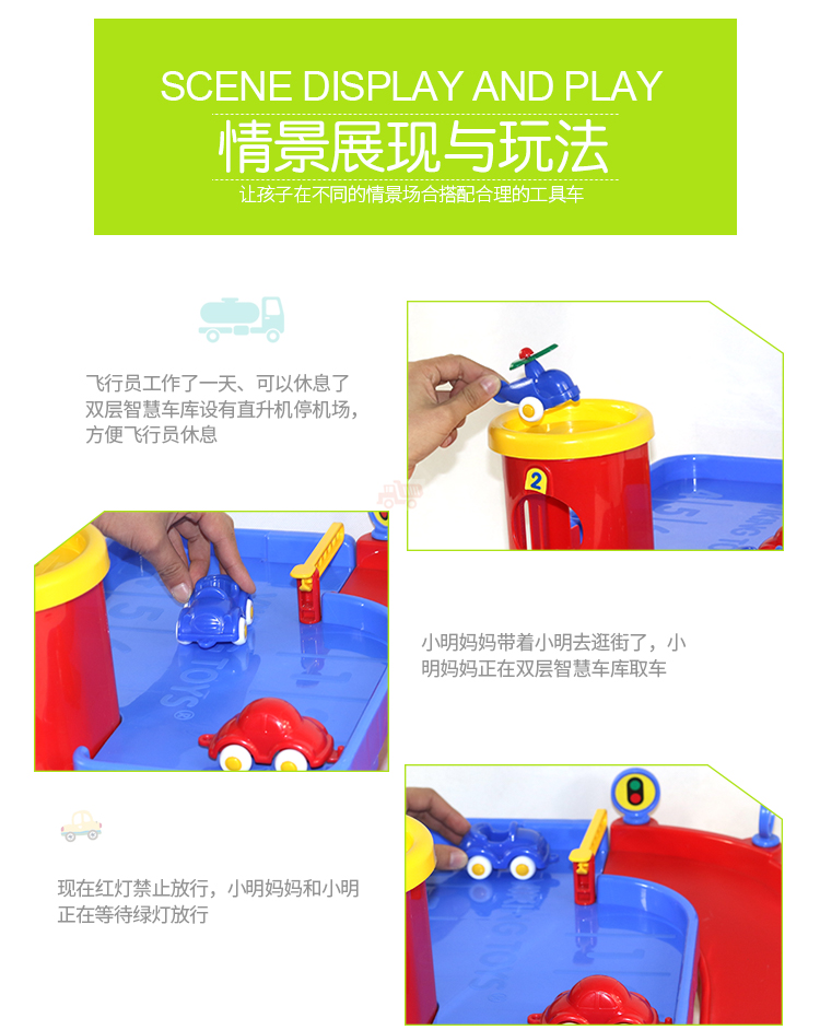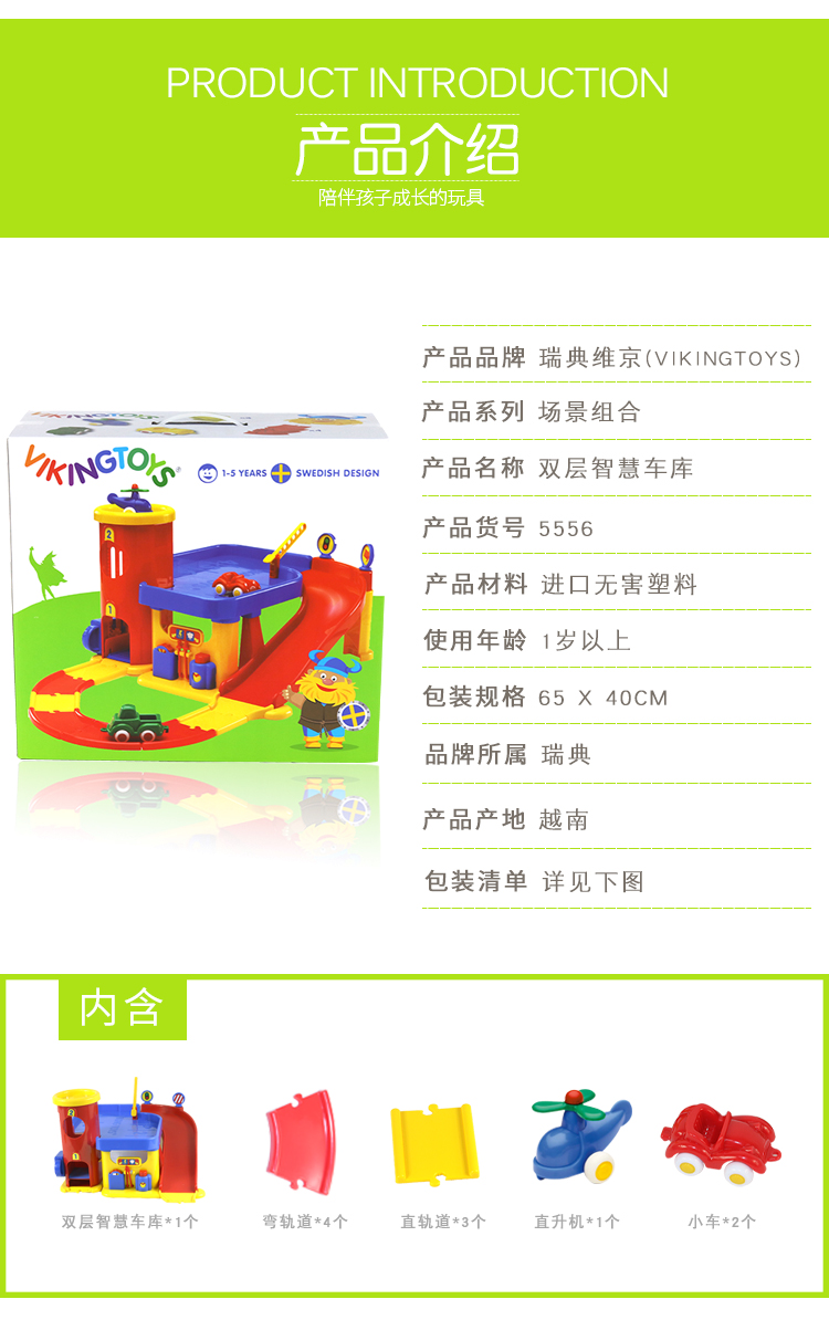 ViKingToys双层智慧车库儿童早教趣味游戏3-6岁套装玩具男孩礼物