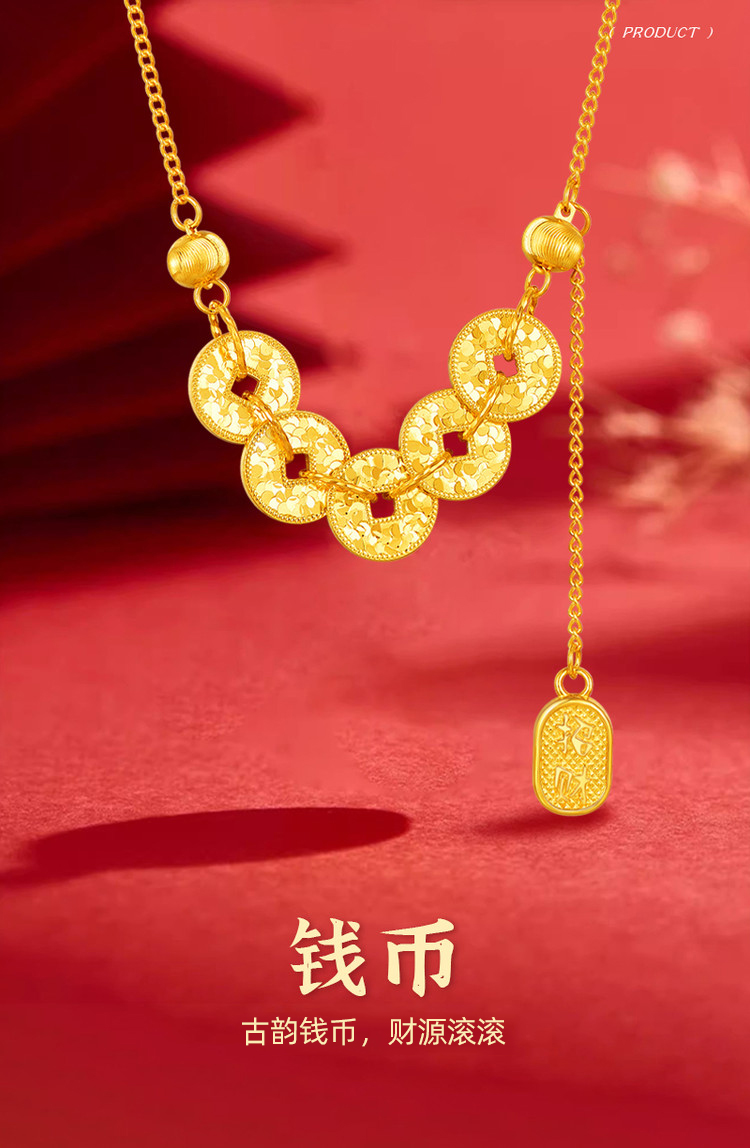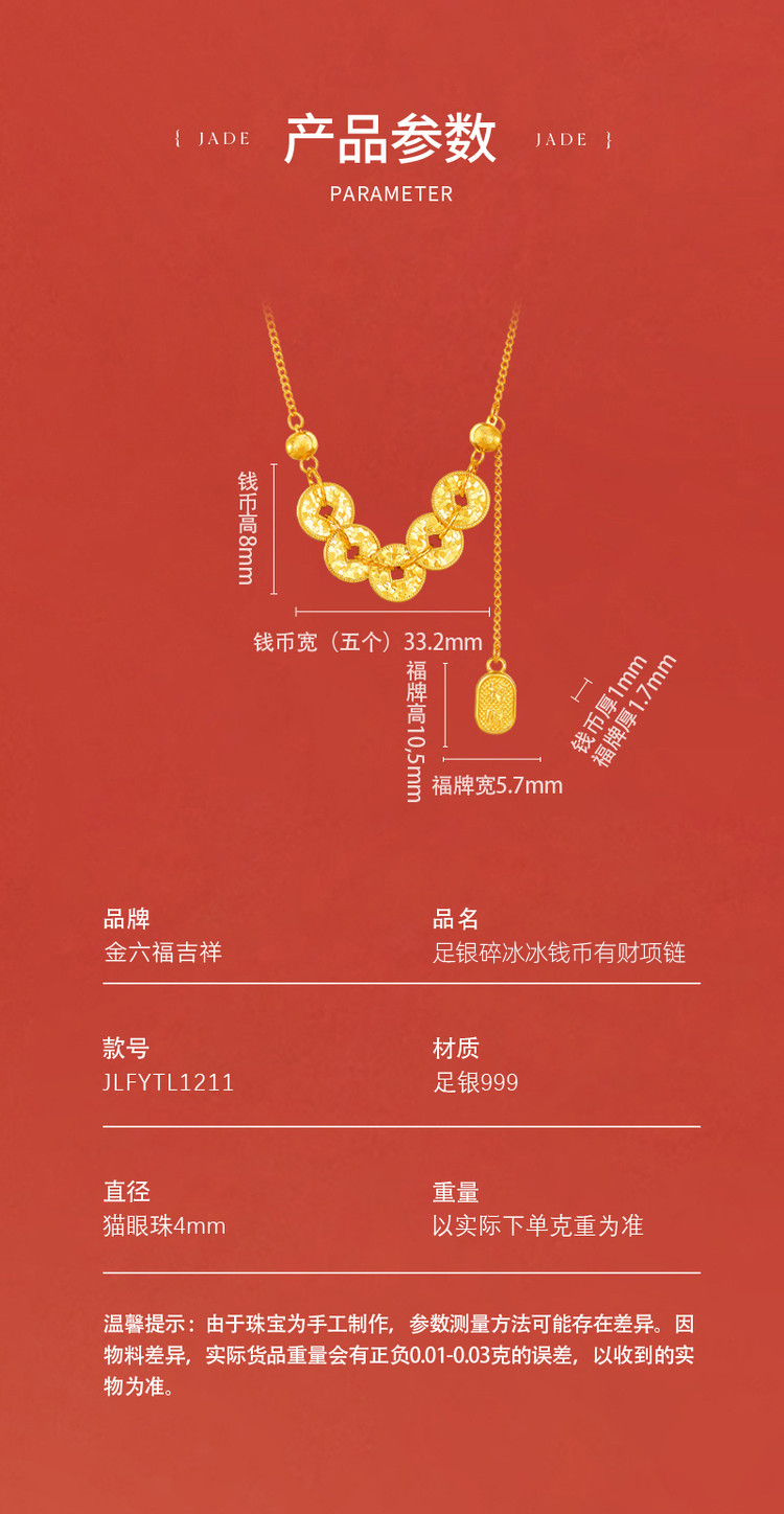 金六福吉祥S925银碎冰冰钱币招财项链★