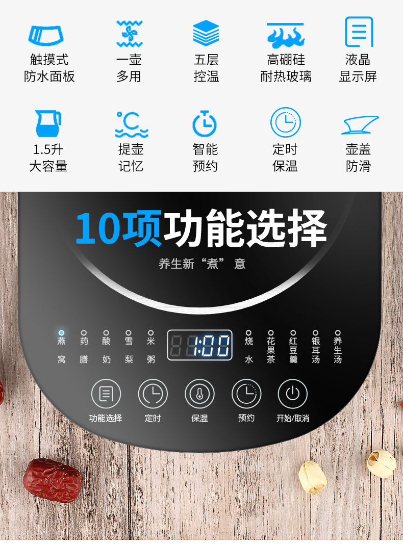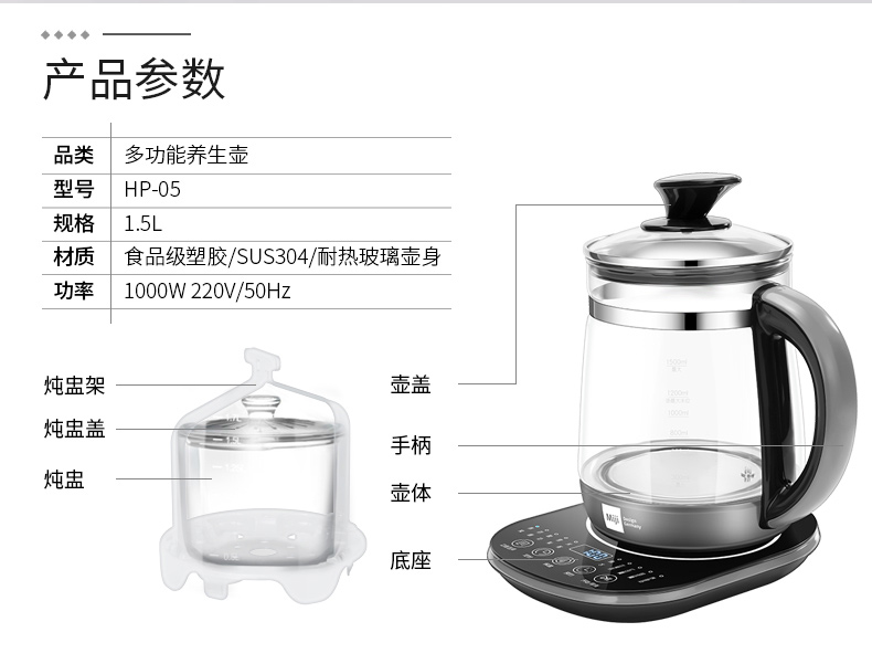 米技(MIJI)烧水壶电热水壶玻璃养生壶家用电水壶煮茶壶