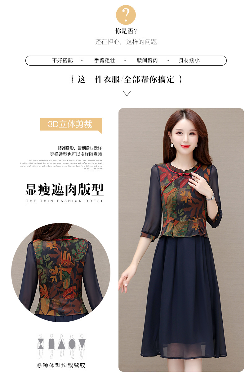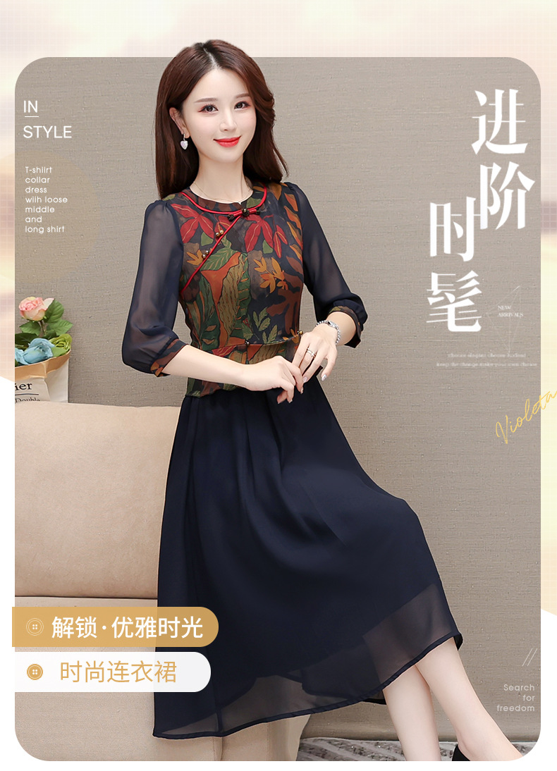 时尚圆领七分袖,气质休闲连衣裙QYM-K508-L