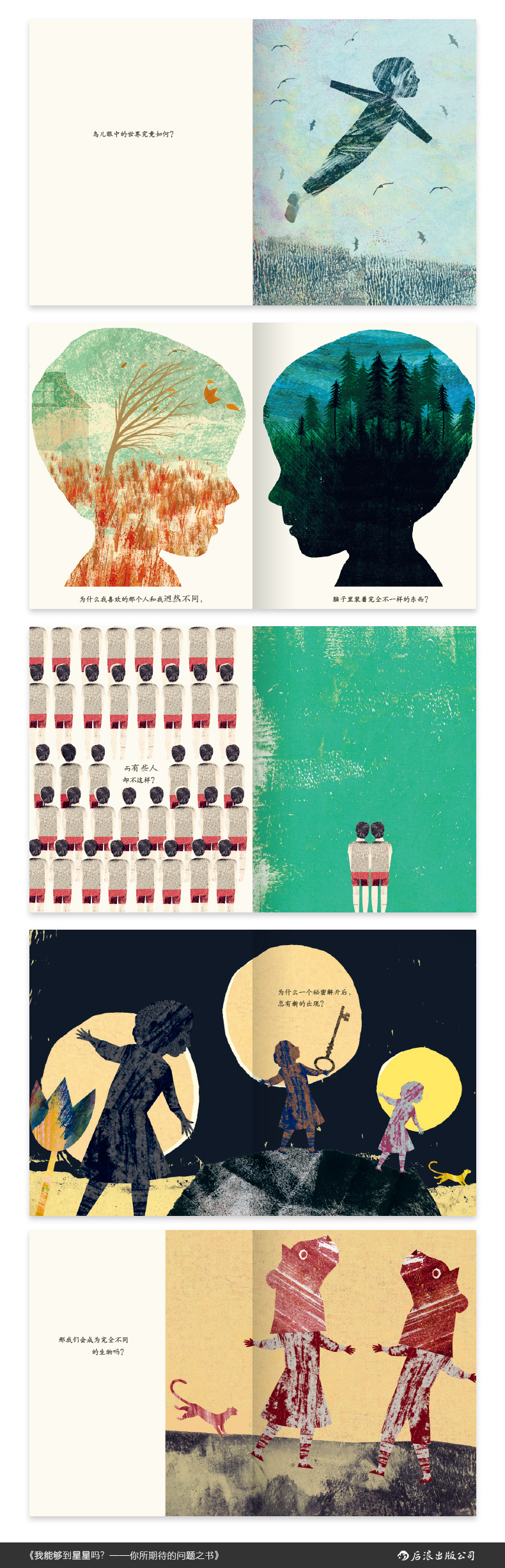 布丽塔·泰肯特鲁普(Britta Teckentrup)是插画家,同时也是you秀的作家。所以她能用图画来呈现文字所未能触达的关键信息,在这本书里她的插画与文字本身一起构成了一个个完整的追问。当孩子对人生和世界产生疑惑时,让这本富有诗意的书,帮他们开启哲学探索之旅吧!