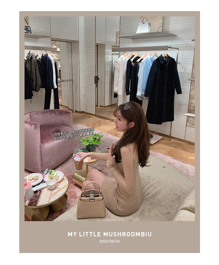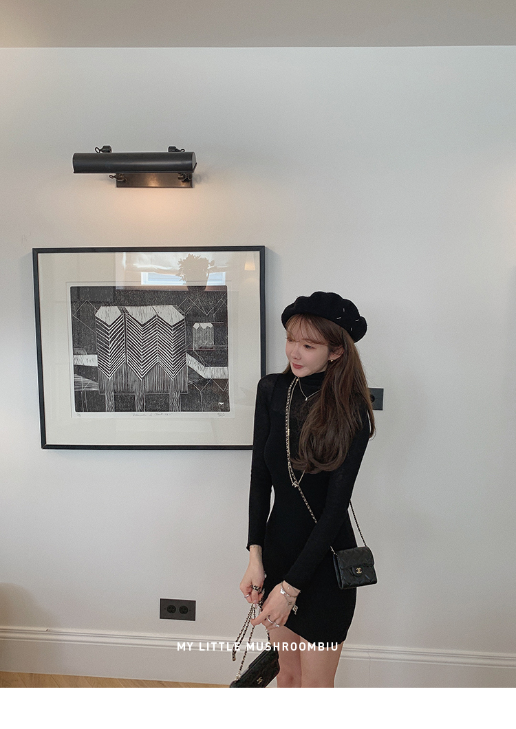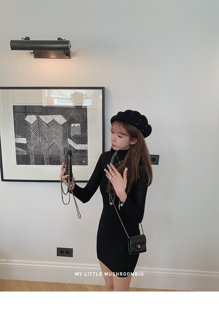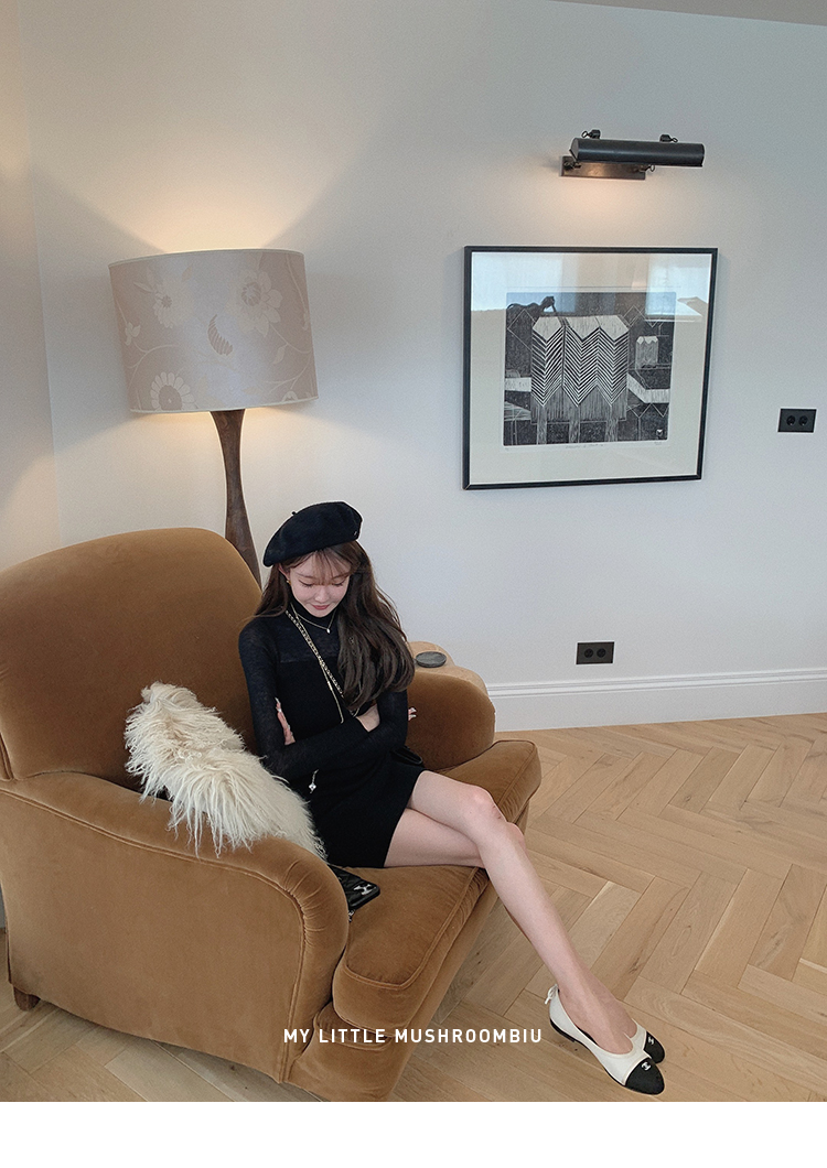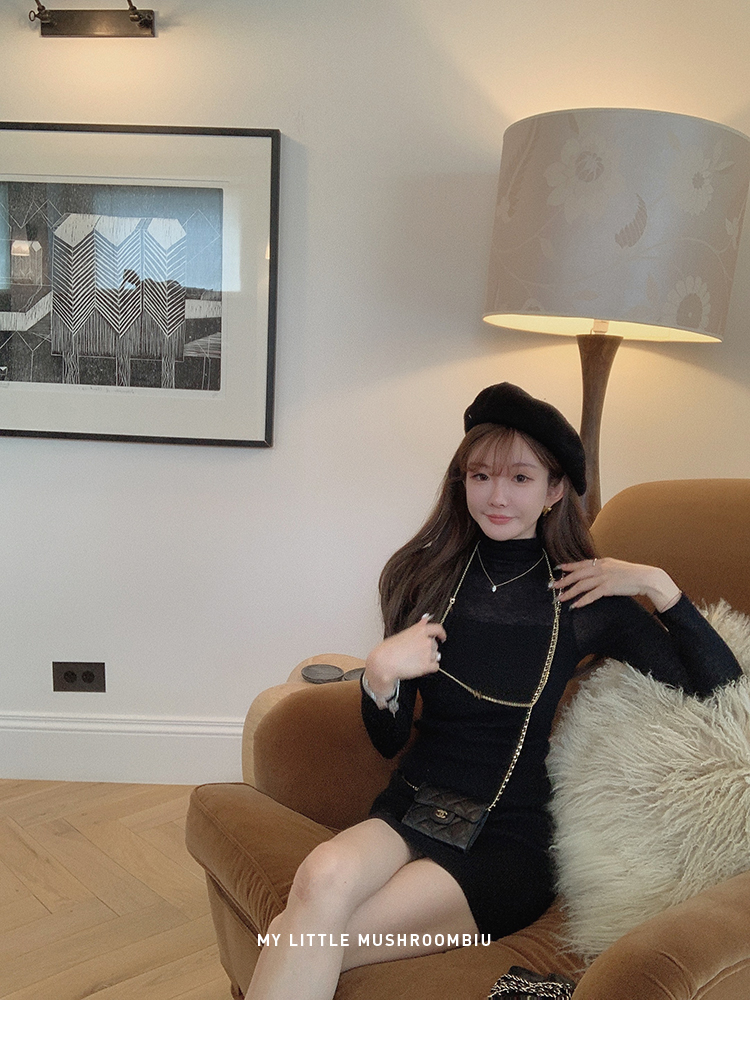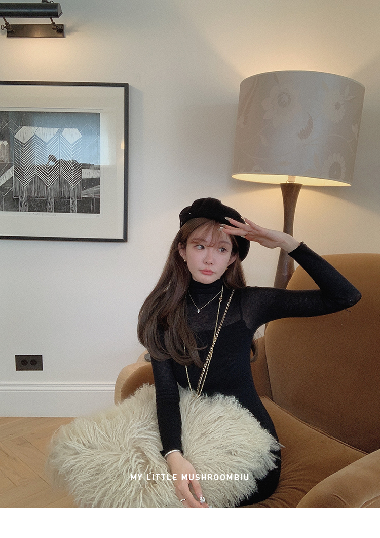 金蘑菇菇 Clair de lune 我爱半透 /氛围感修身针织打底连衣裙