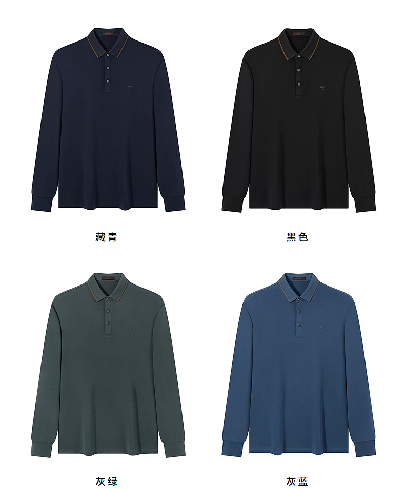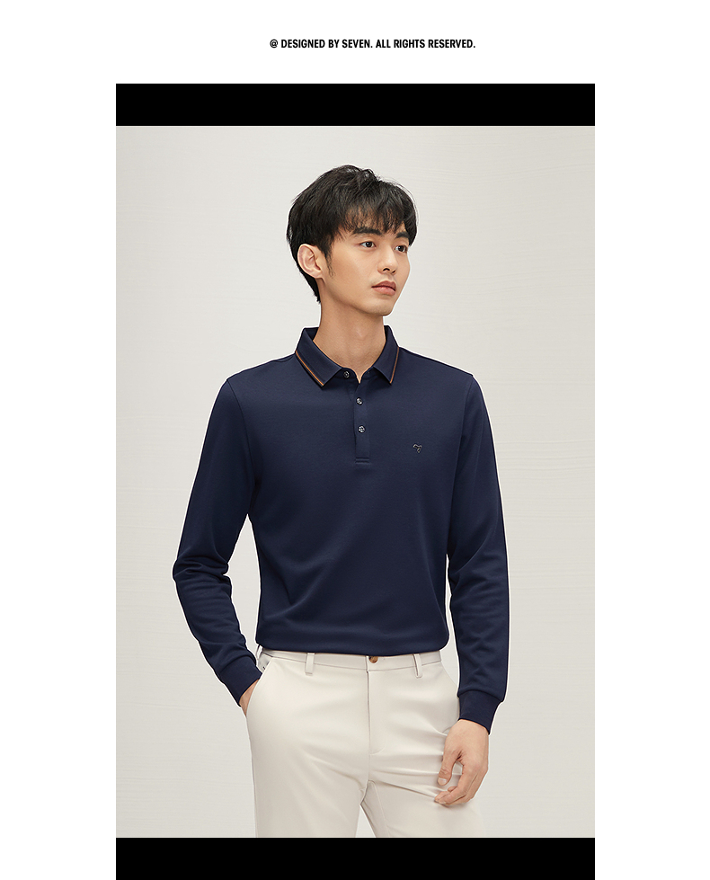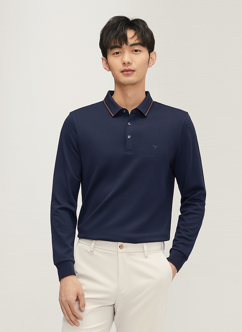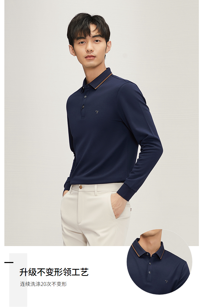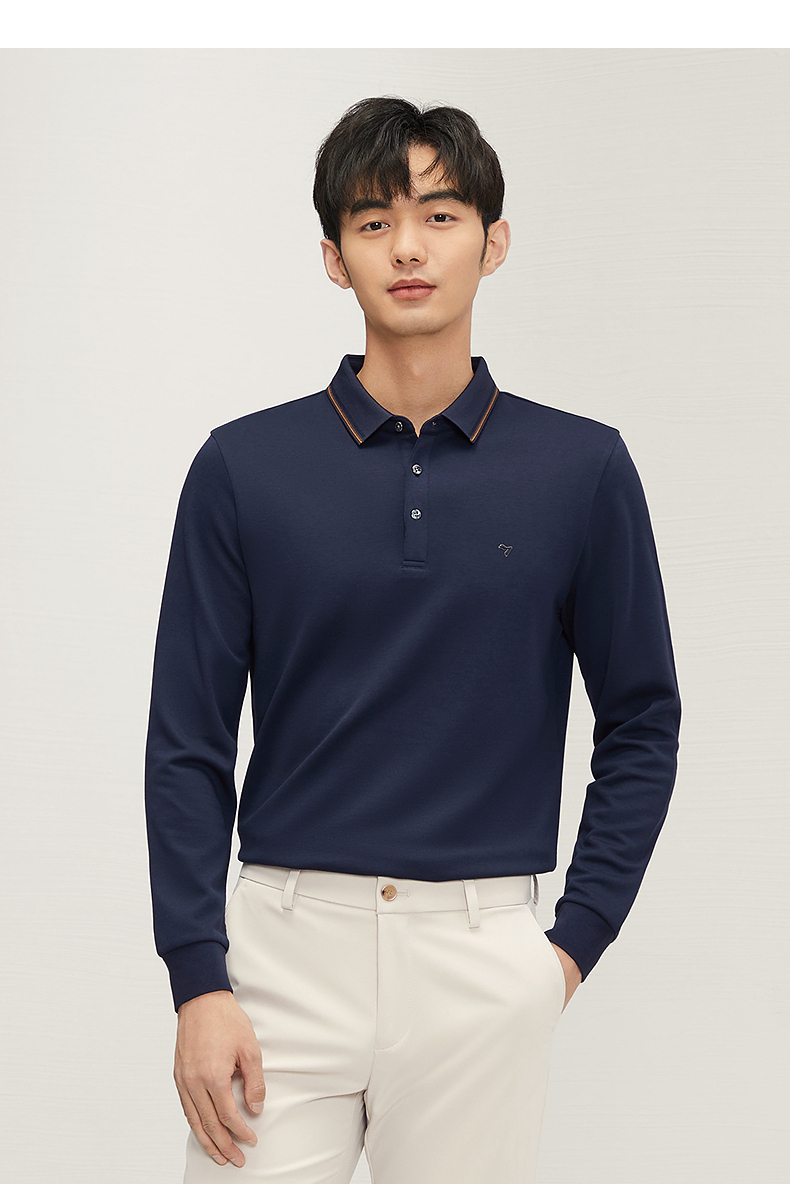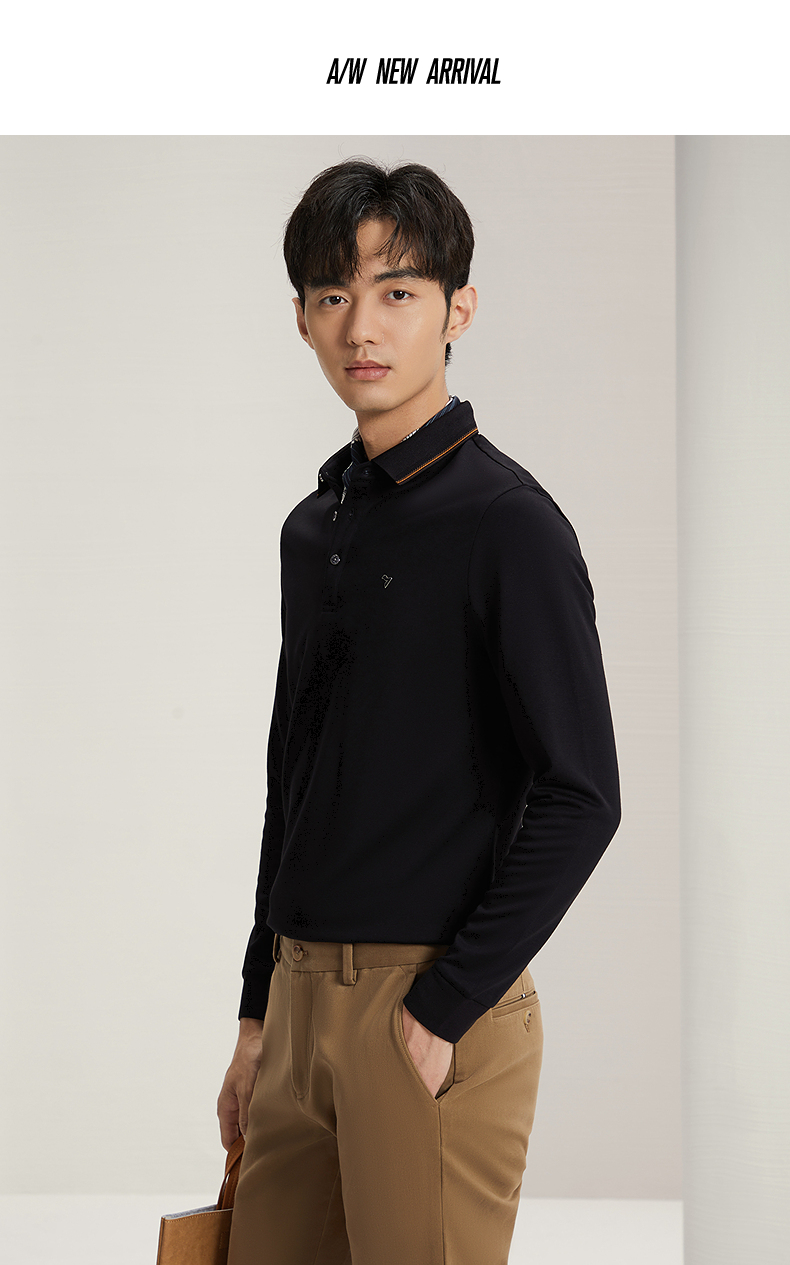 【5A抗菌2A防螨】柒牌长袖Polo衫男秋季新款含莫代尔磨毛翻领上衣 127T70300