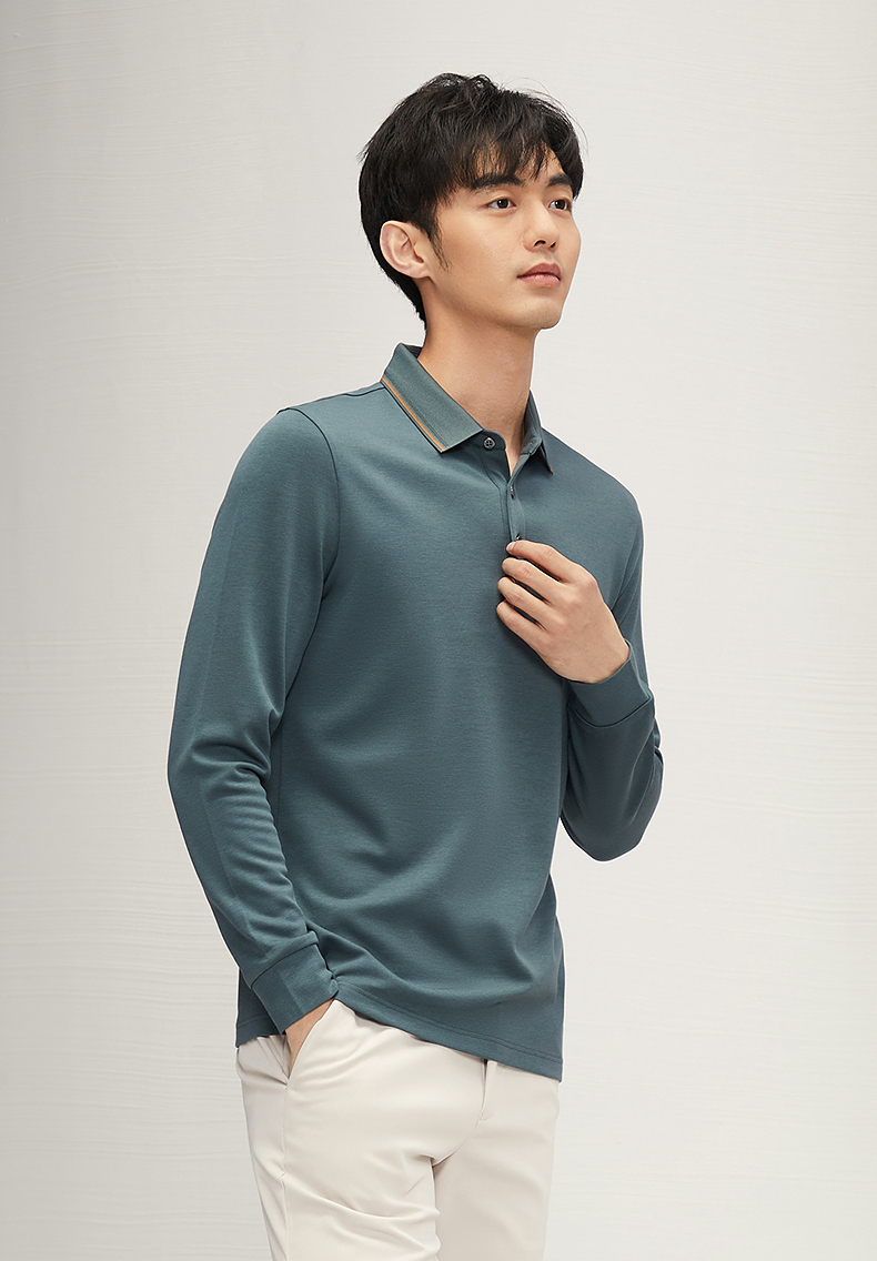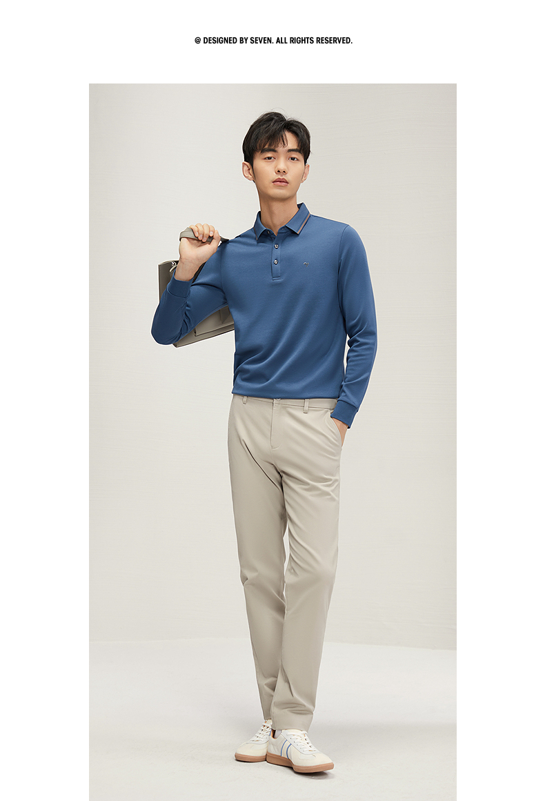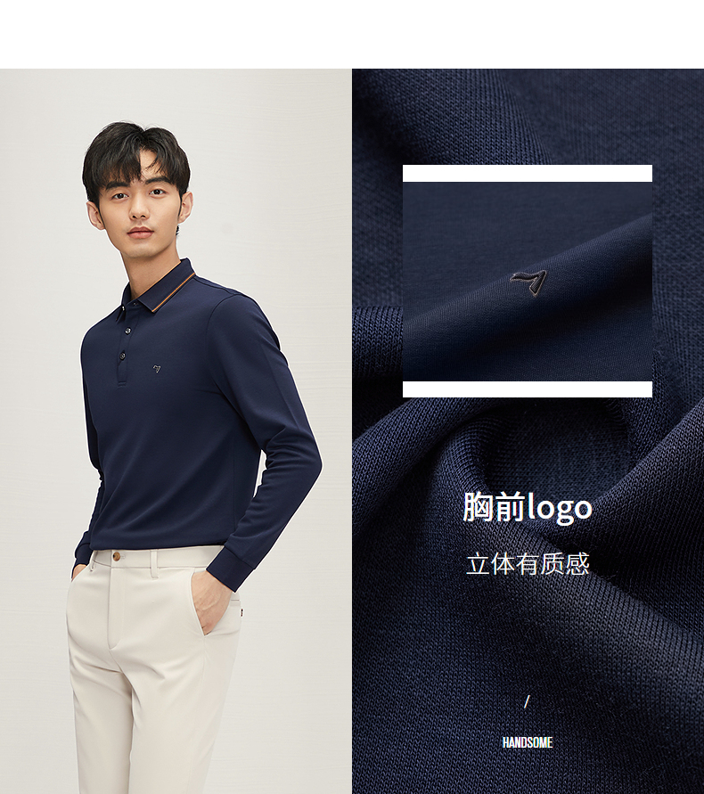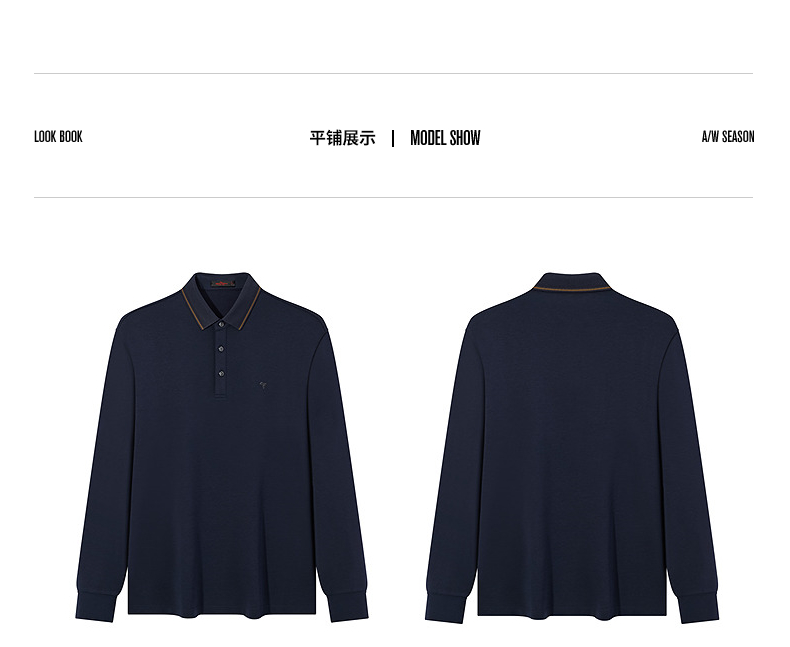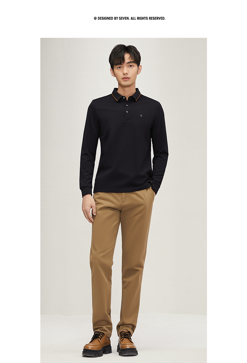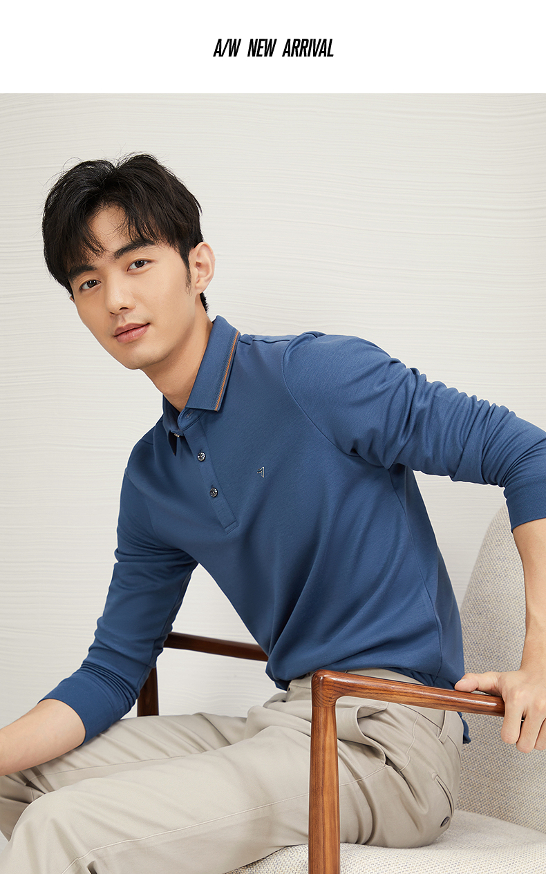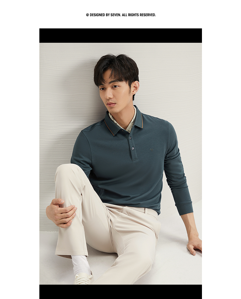 【5A抗菌2A防螨】柒牌长袖Polo衫男秋季新款含莫代尔磨毛翻领上衣 127T70300