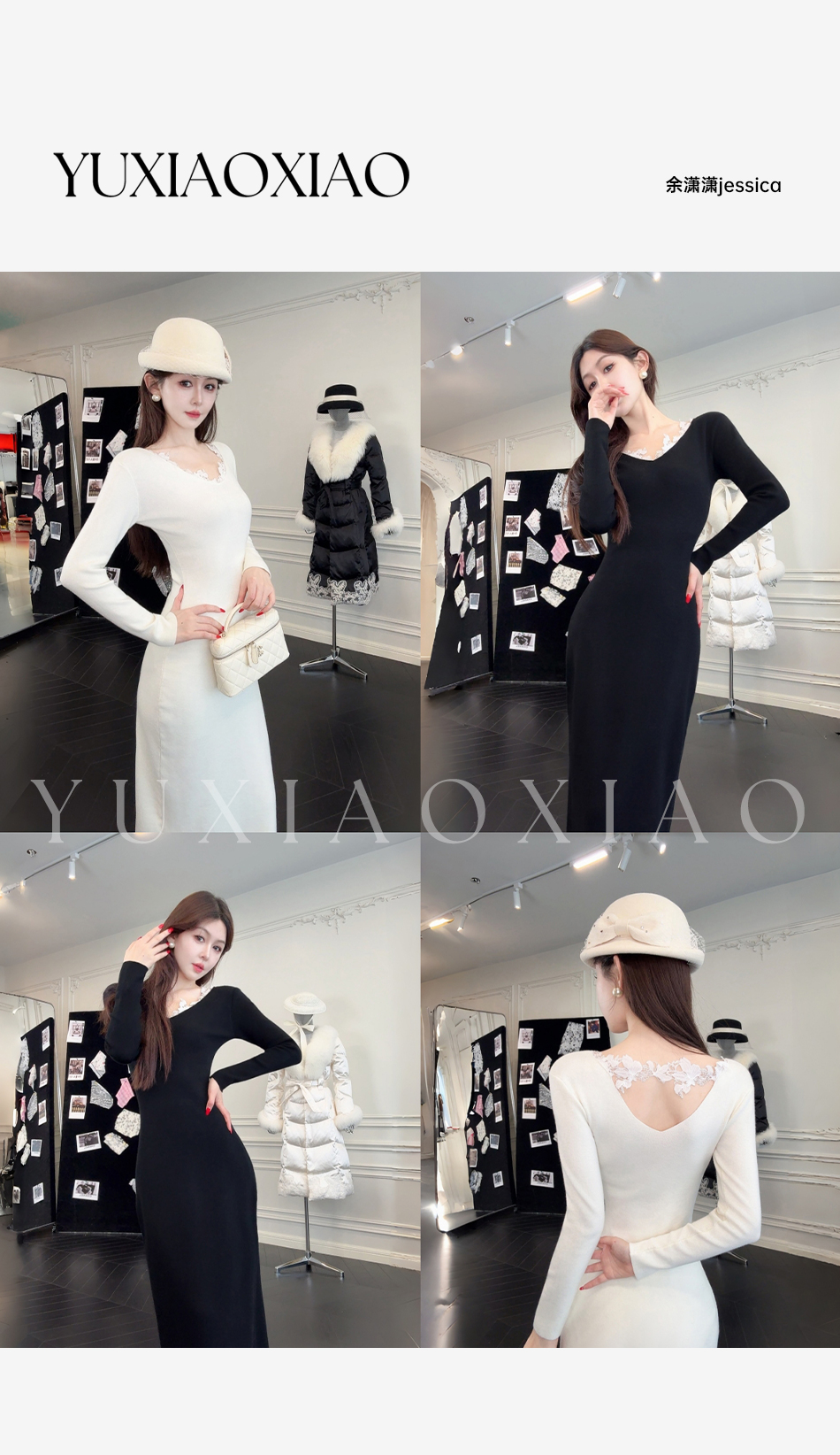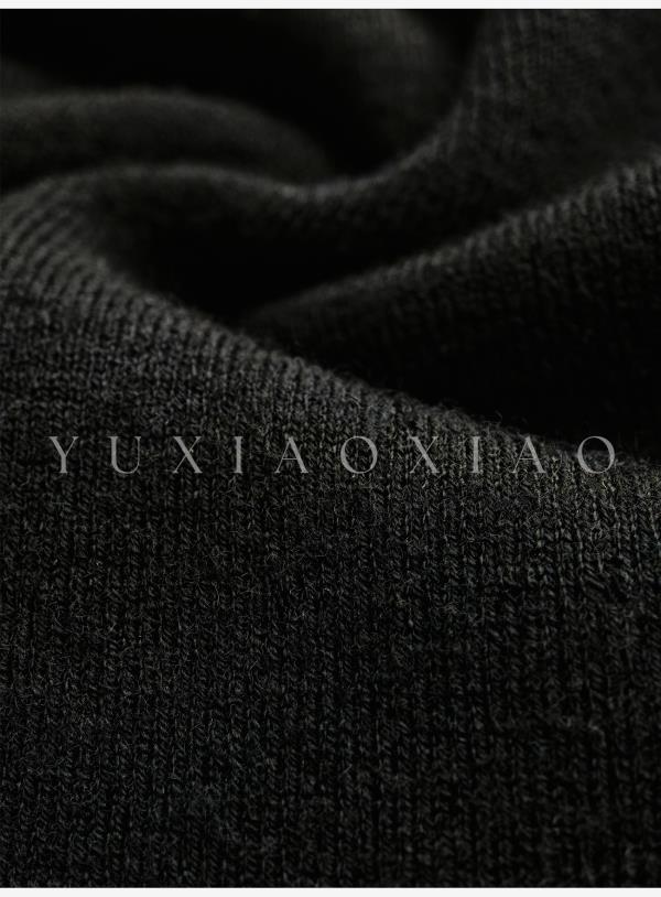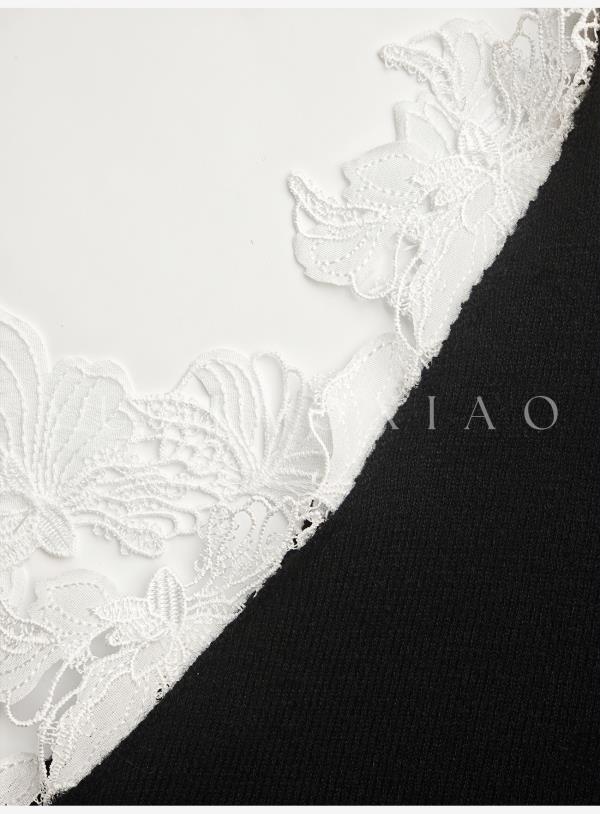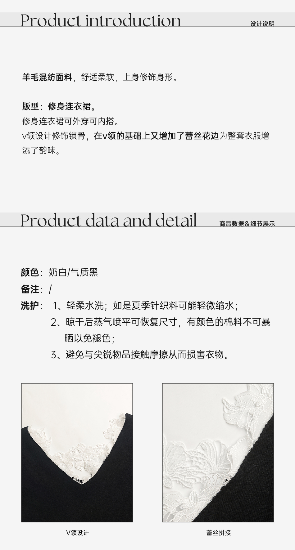 余潇潇【纯欲曲线】绵羊毛混纺前后V领拼接蕾丝设计修身长款连衣裙