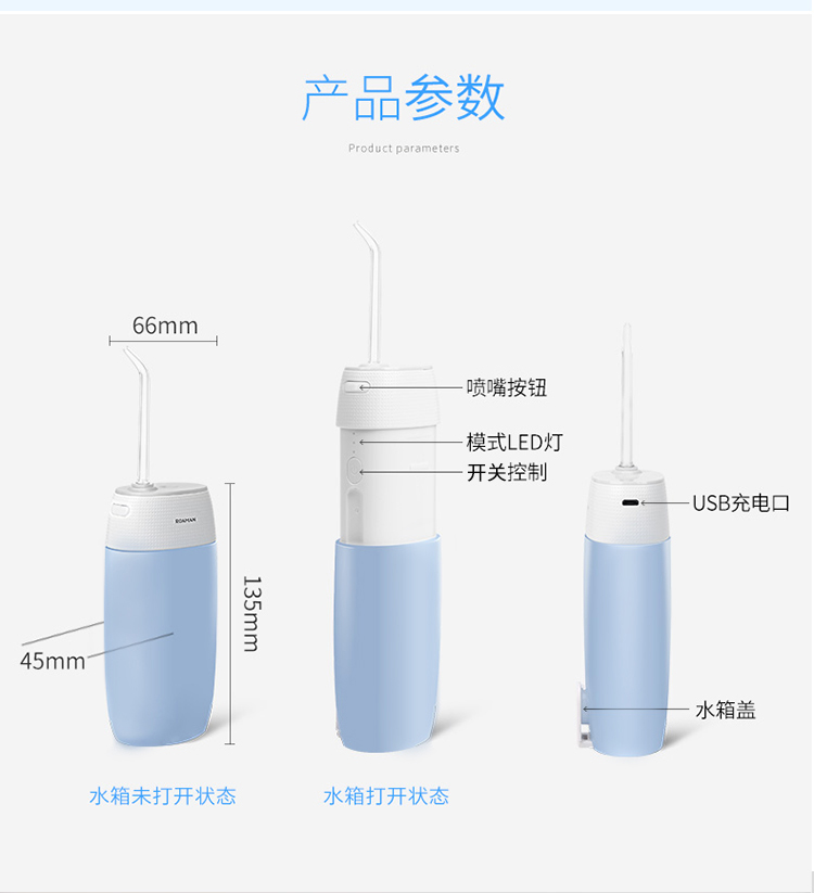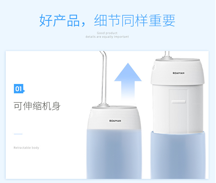 【一般贸易】中国 罗曼(ROAMAN) 冲牙器/洗牙器/水牙线 非电动牙刷 便携充电式 MINI1粉色 蓝色