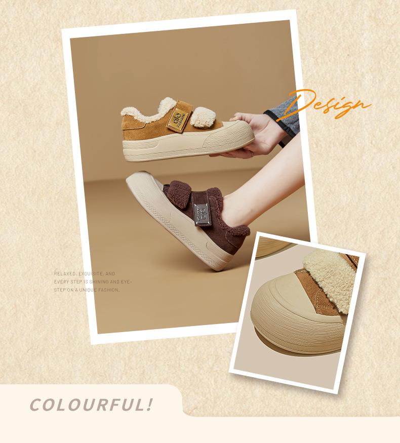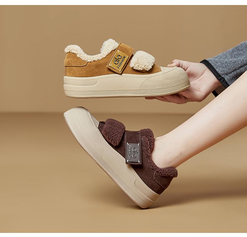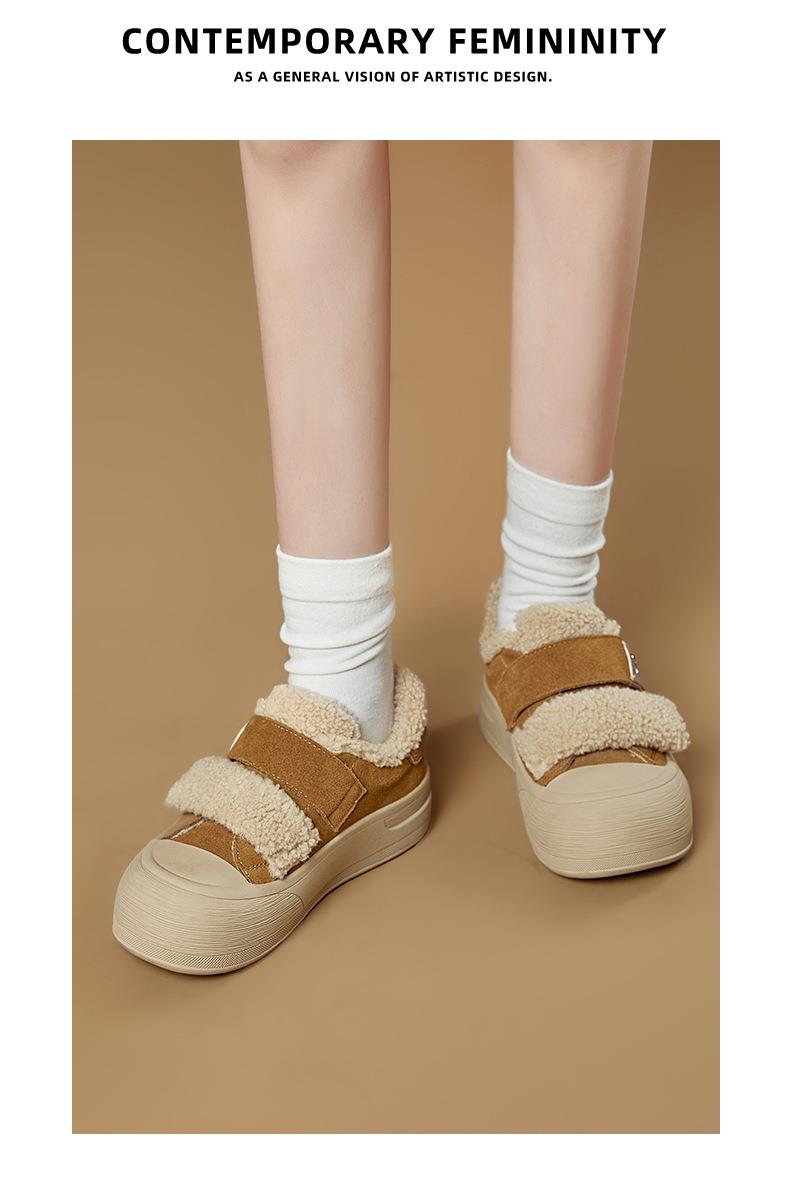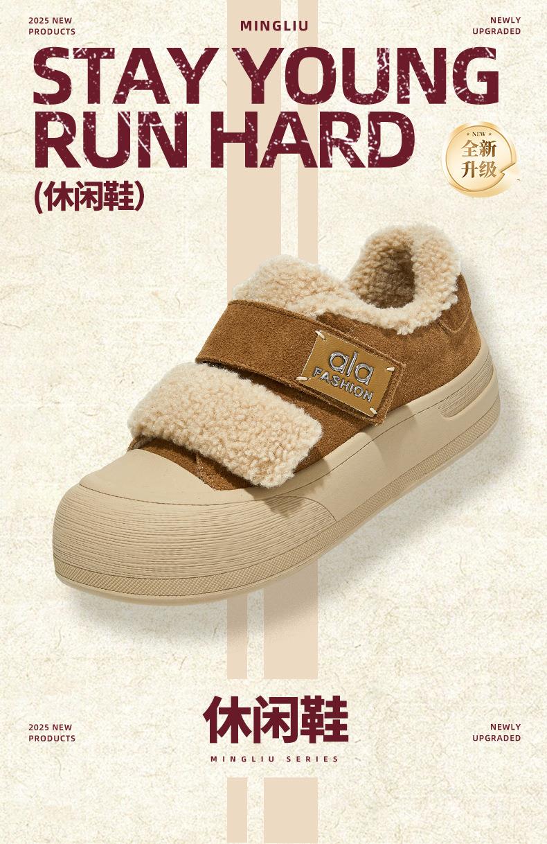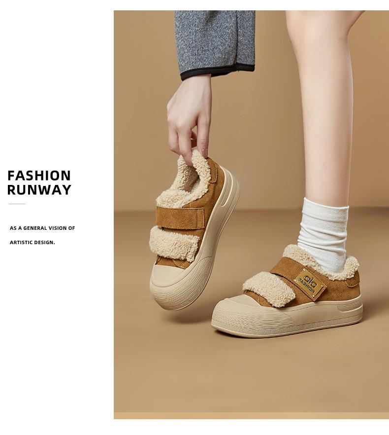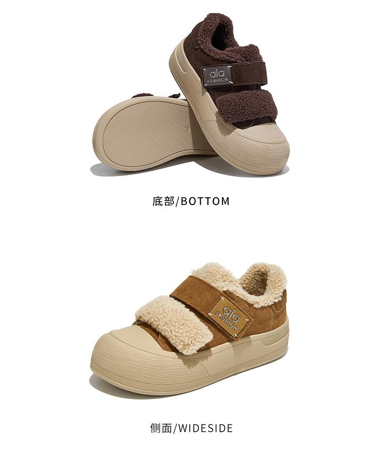 真皮毛毛加绒板鞋女2025冬季新款厚底棉鞋保暖百搭魔术贴小白鞋女