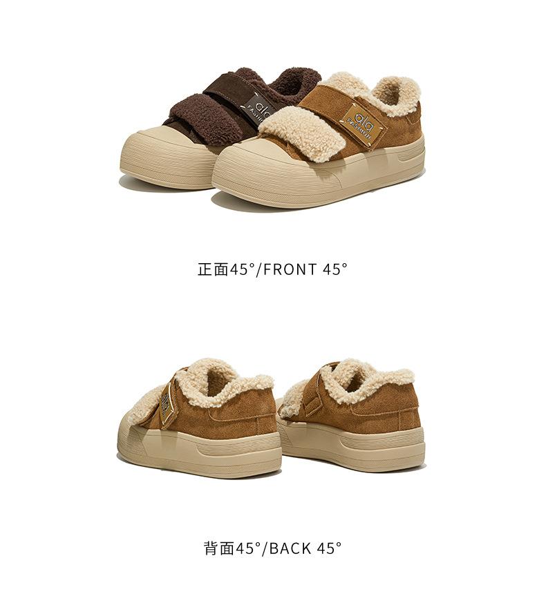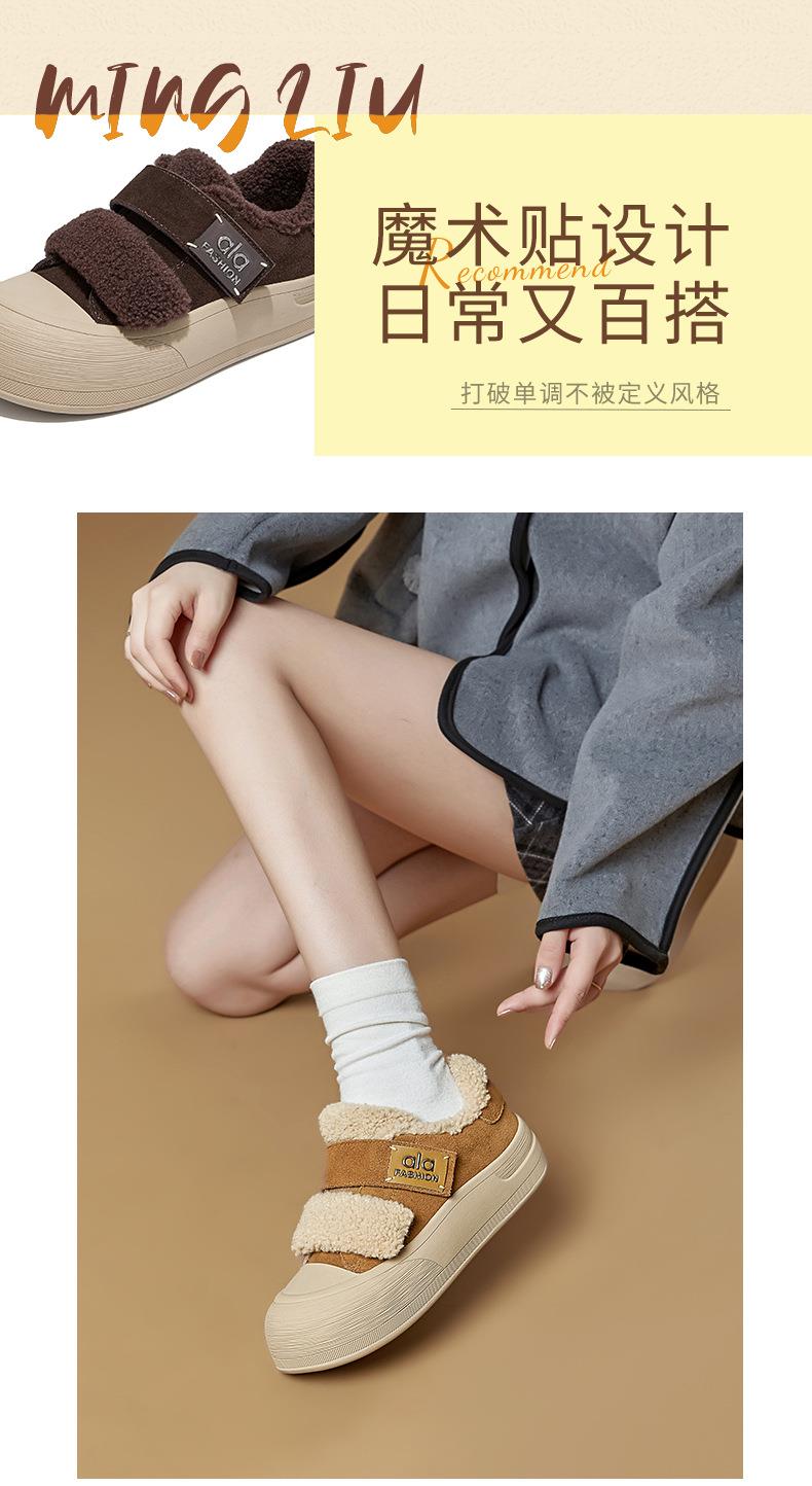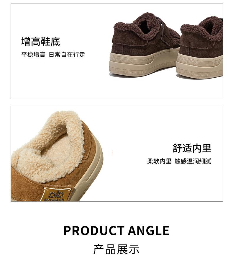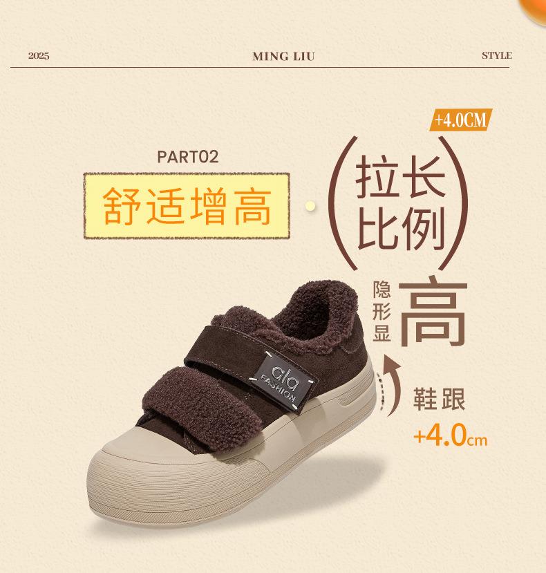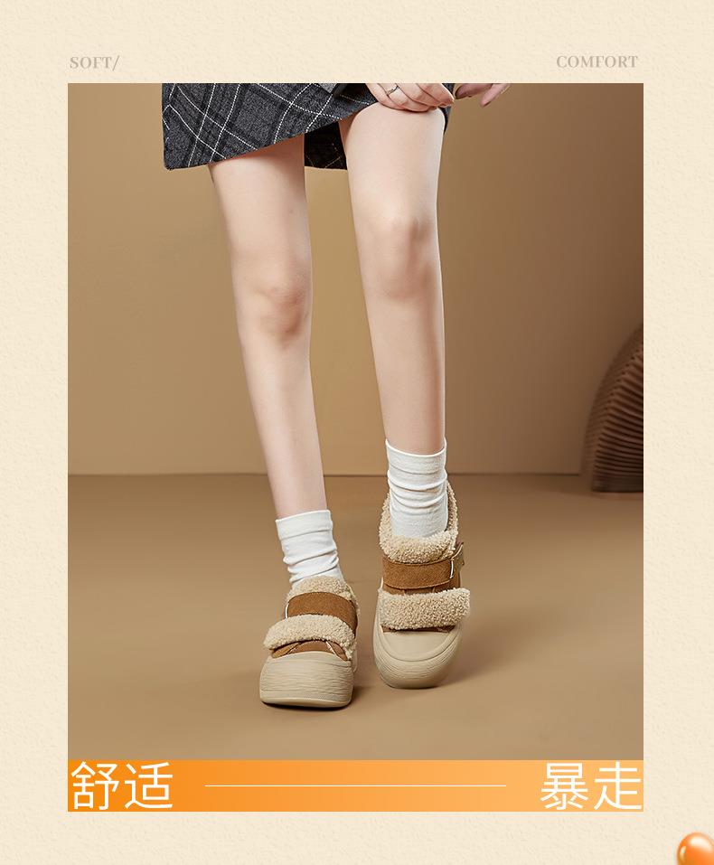 真皮毛毛加绒板鞋女2025冬季新款厚底棉鞋保暖百搭魔术贴小白鞋女