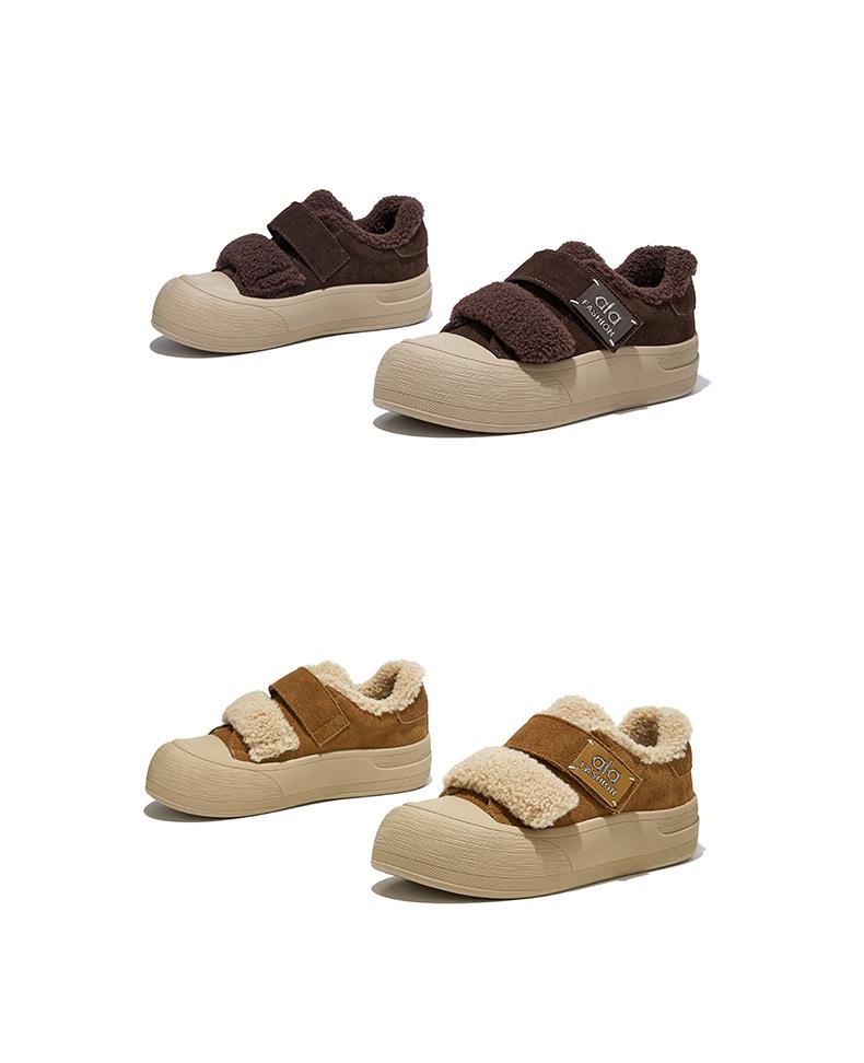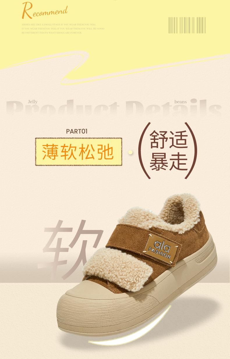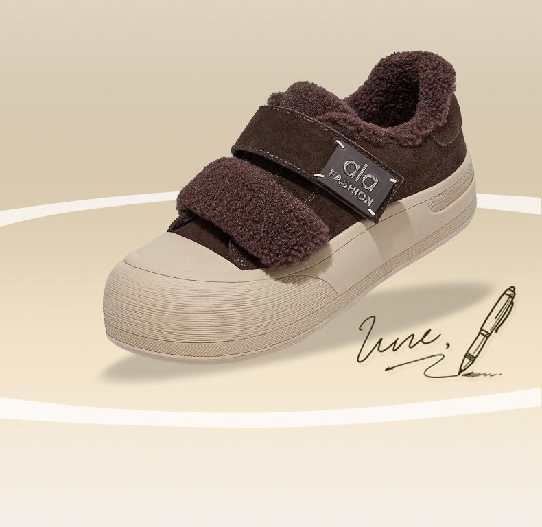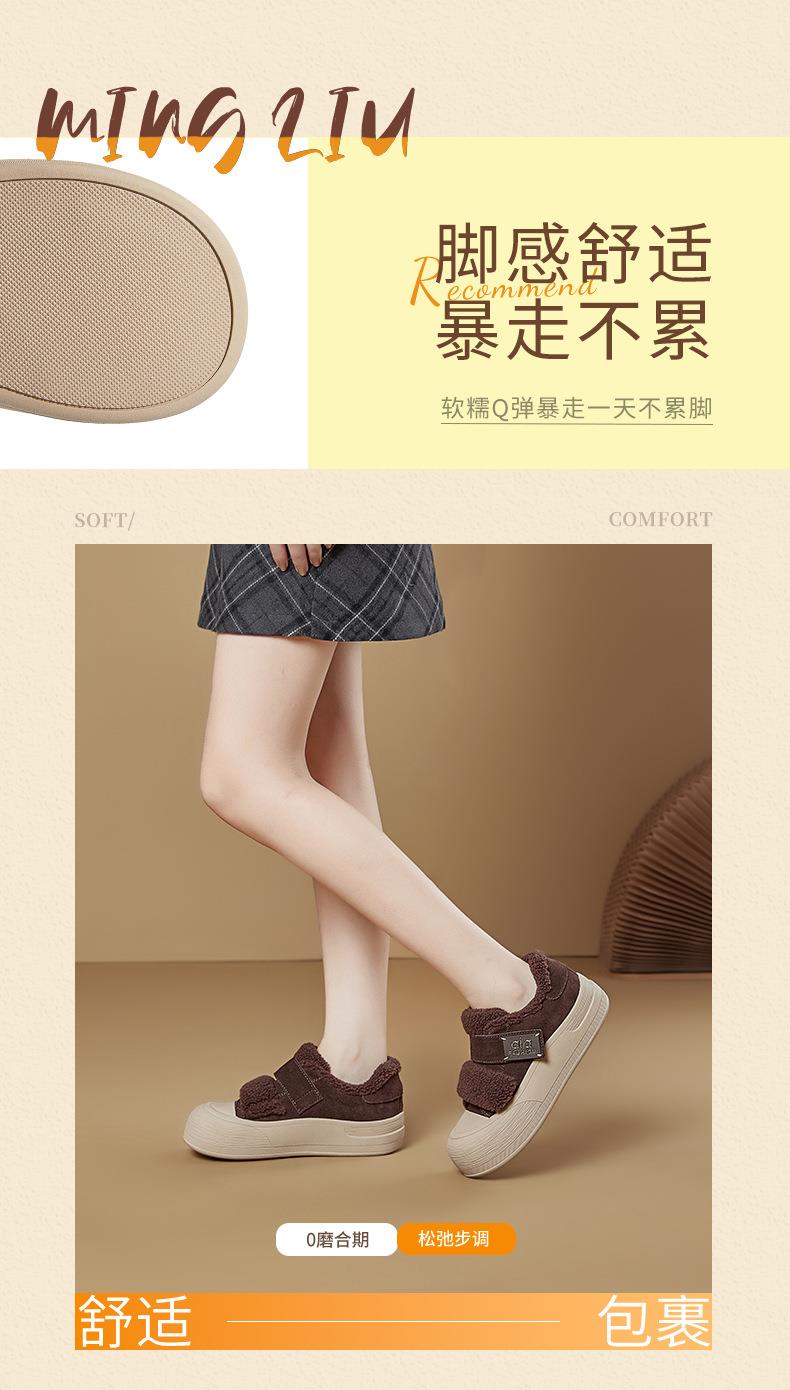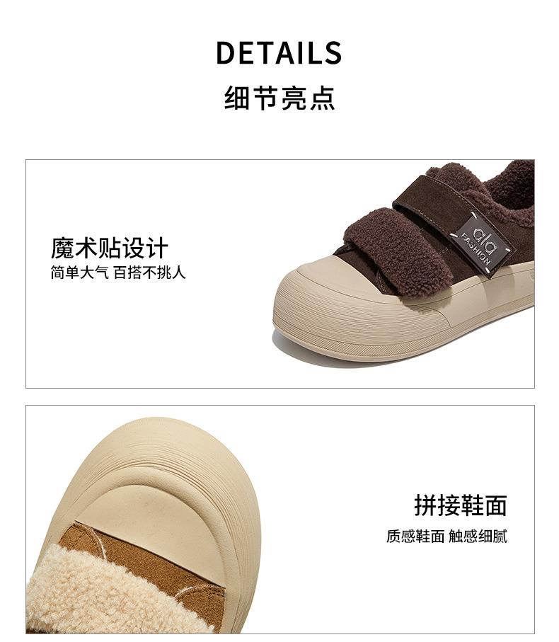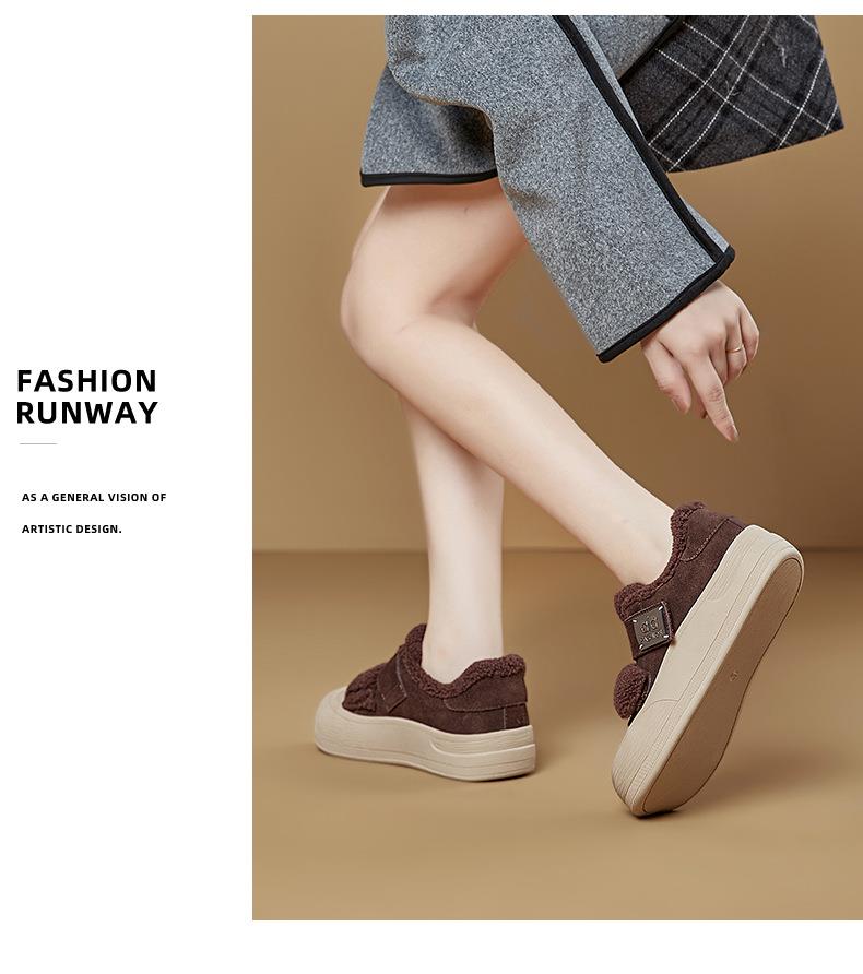 真皮毛毛加绒板鞋女2025冬季新款厚底棉鞋保暖百搭魔术贴小白鞋女
