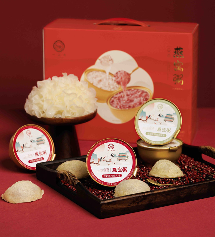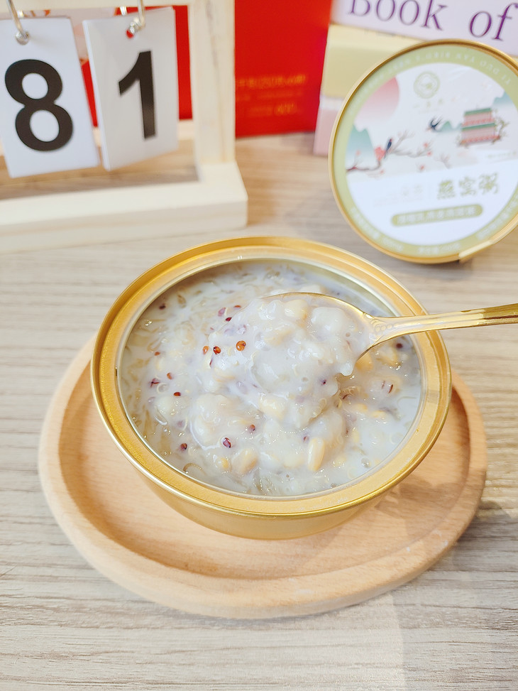 精选印尼顶级白燕盏,碗碗足料满满诚意 肉眼实打实能看见!!固形物含量不低于50% 印尼进口燕窝,丝丝分明,每箱添加燕窝600mg 谷物炖煮,清甜润滑奶香浓,开盖即食