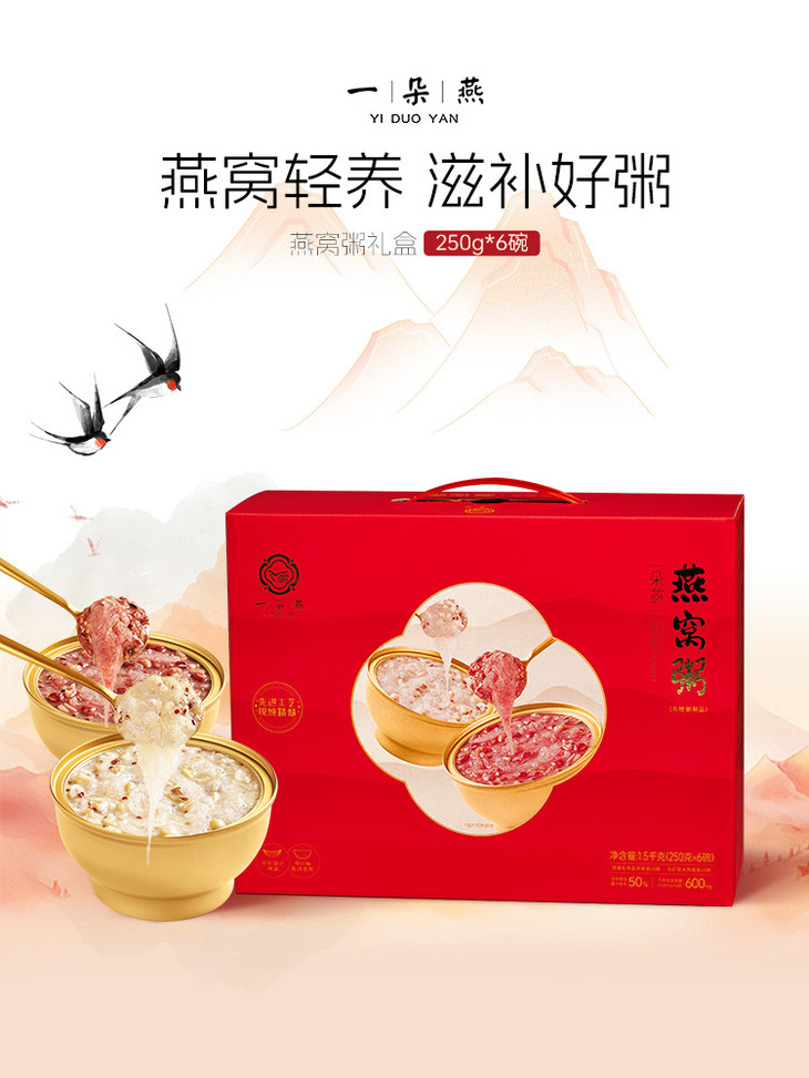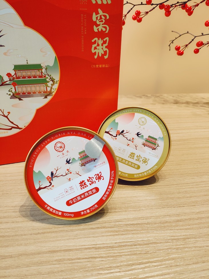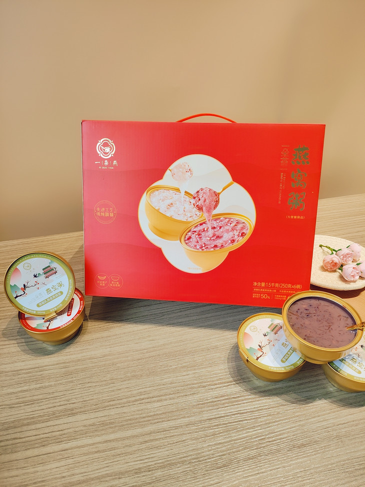 粥界天花板,放足600mg水发燕窝!! 「一朵燕·燕窝粥」配料表干干净净,就是燕窝+五谷杂粮,一顿早餐的价格吃上燕窝! 燕窝滋阴养颜、搭配着优质的杂粮做成燕窝粥,健脾养胃、低脂健康、优质碳水、满满的膳食纤维、饱腹之余不长肉肉……好处真的太多了! 燕窝原料全部来自优质的、可溯源的印尼热带雨林雨季燕窝,有燕窝进口报关单等凭证可查 0香精、0增稠剂、不含防腐剂,保质期12个月,生产时间都是近一个月内 收到的每碗燕窝粥都是铝碗独立包装,方便携带,开盖即食 一碗足足250克(半斤重),热量和一根玉米差不多,一碗饱腹3-4小时