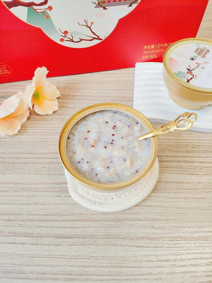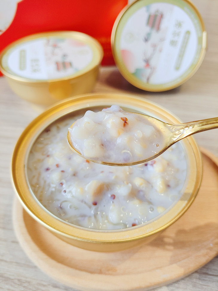 清爽不甜腻,香糯Q弹,非常适合代餐 而且配料也很简单,都是营养价值很高的 红藜麦、白藜麦,还有银耳、燕窝等 所以吃起来就回非常Q弹,添加厚椰乳 所以打开就会闻到椰子的清香