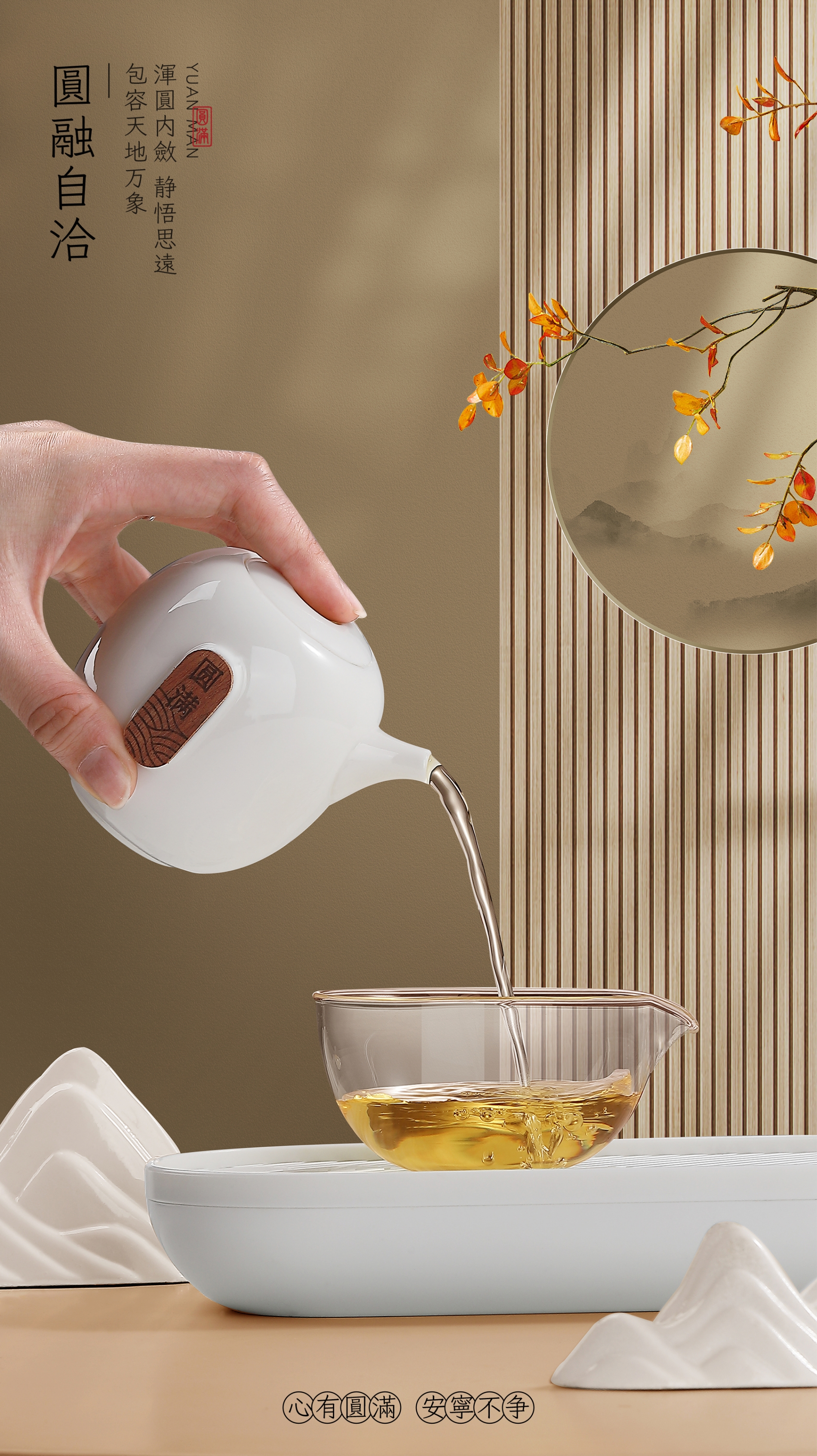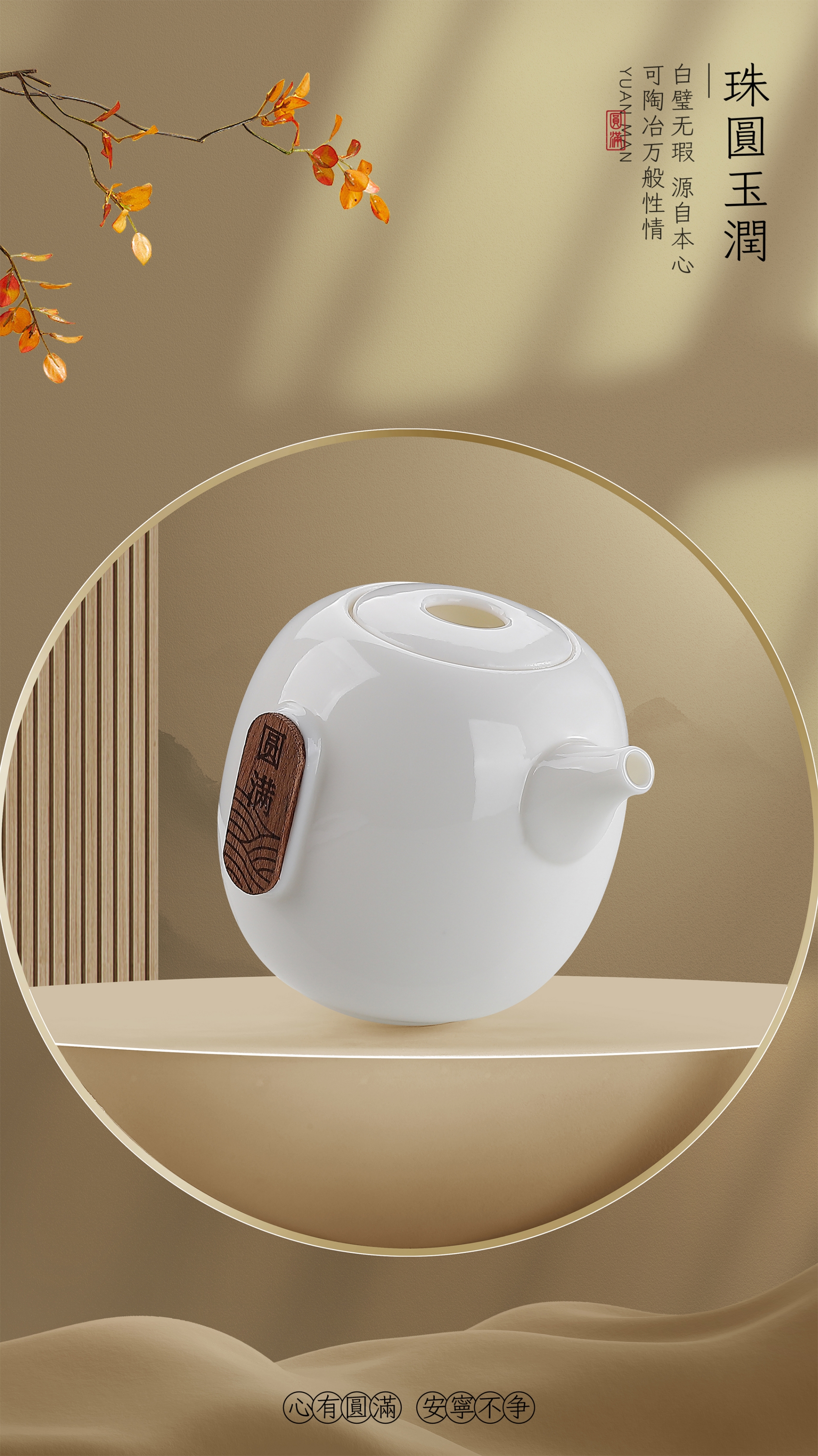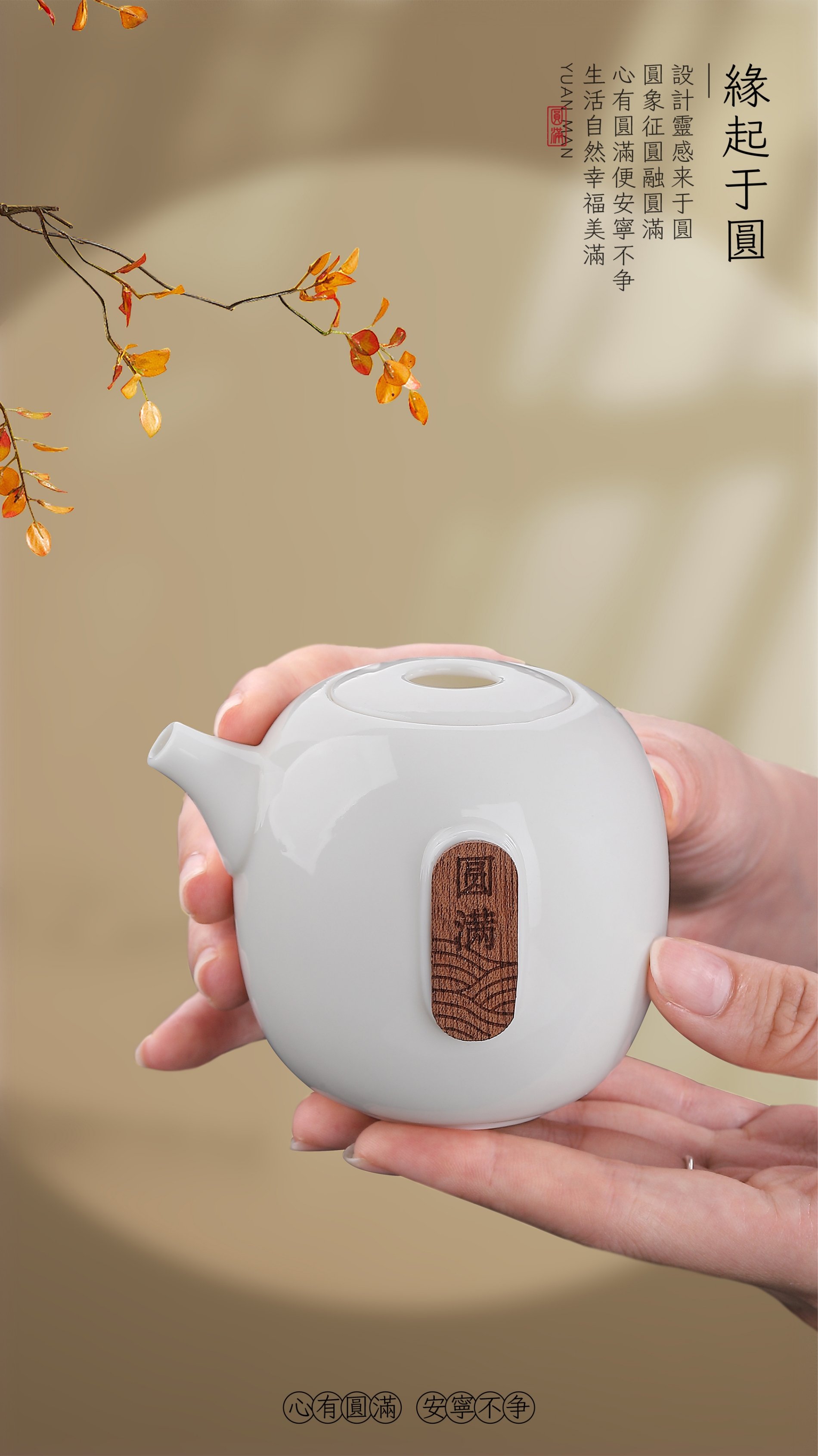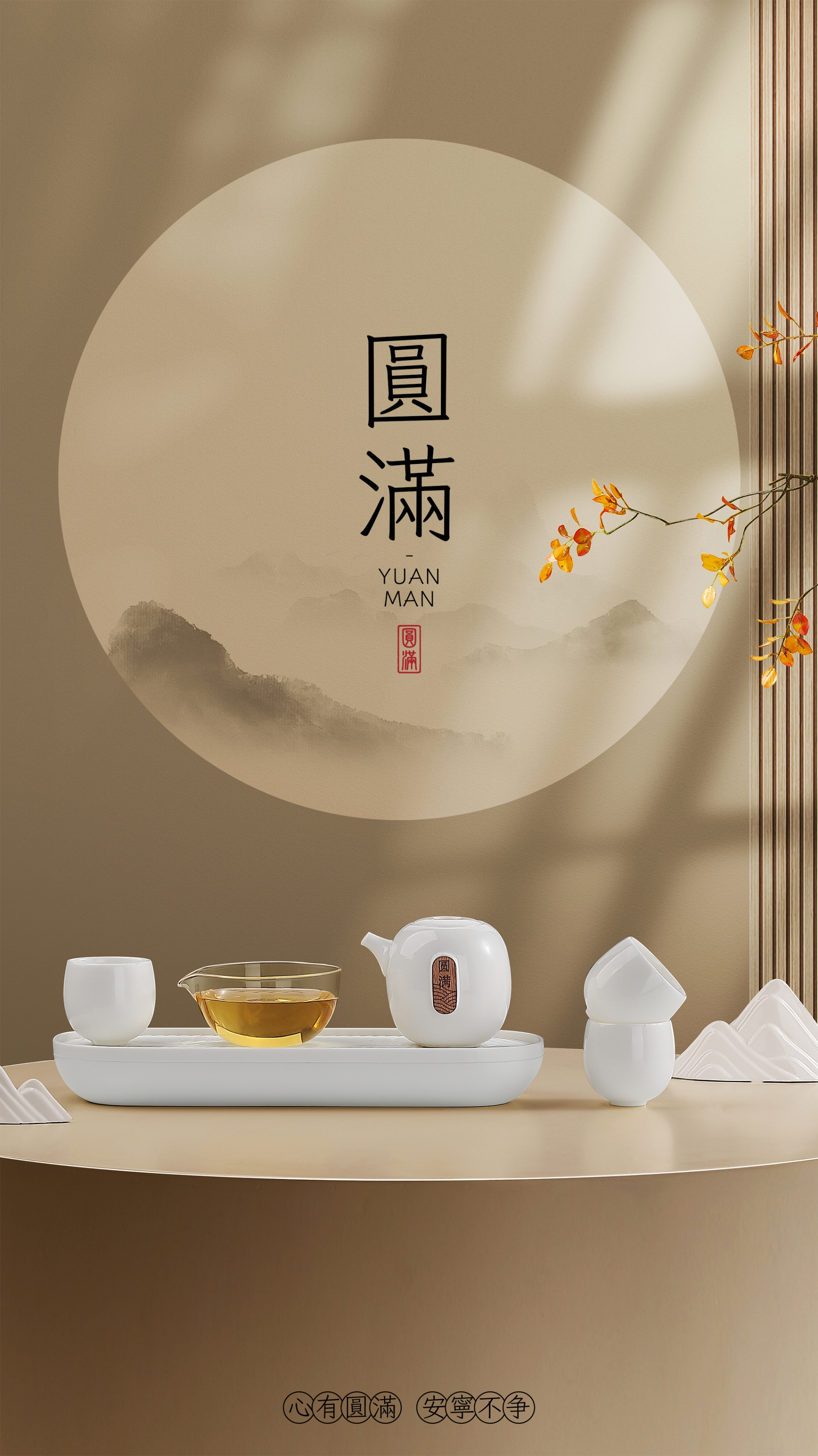 缘起于圆,设计灵感来于圆,圆象征圆融、圆满,心有圆满便安宁天下不争,生活自然幸福美满。