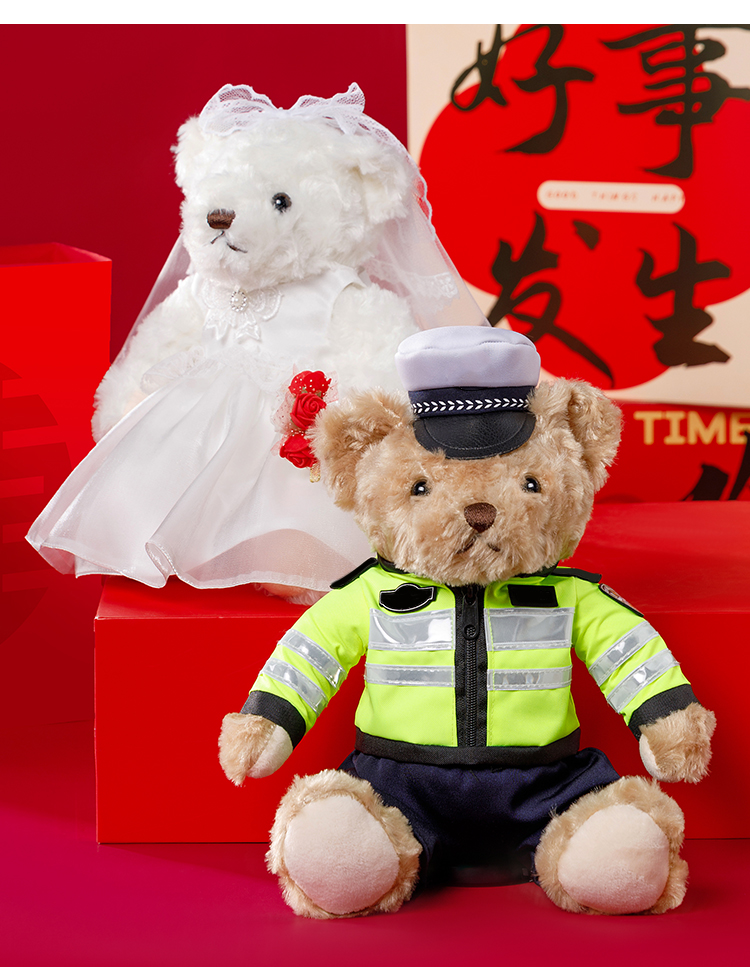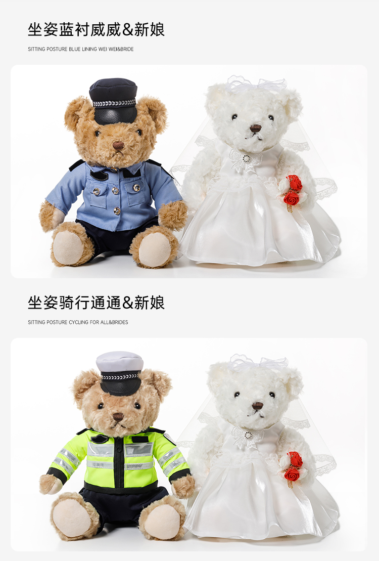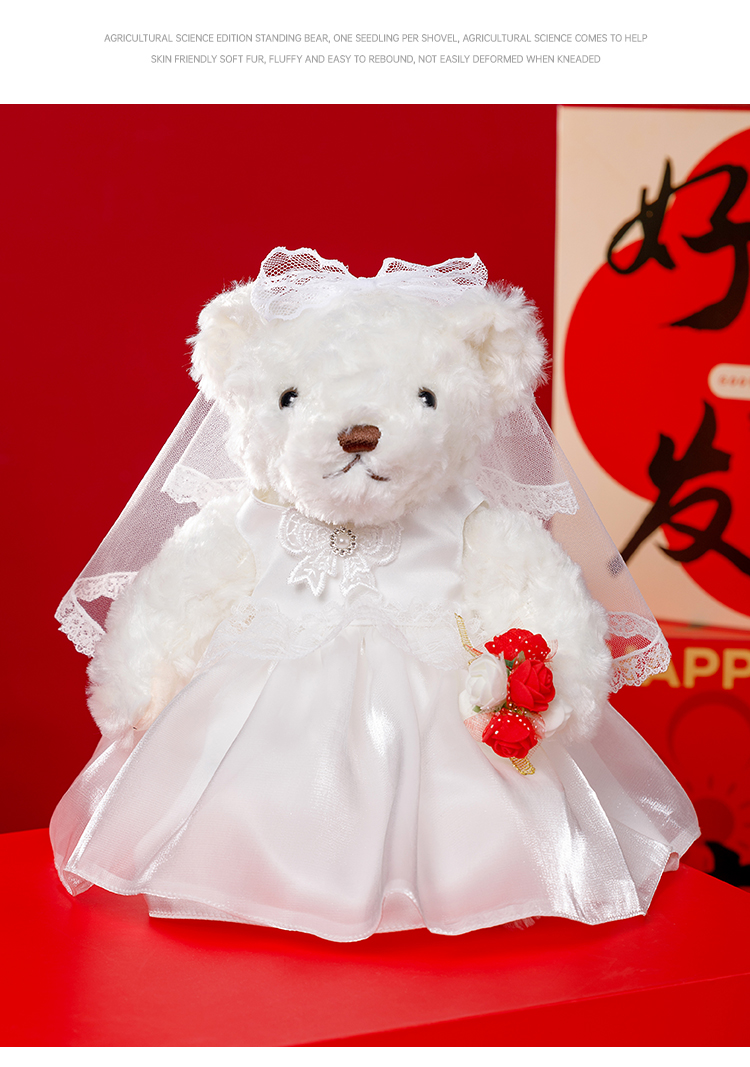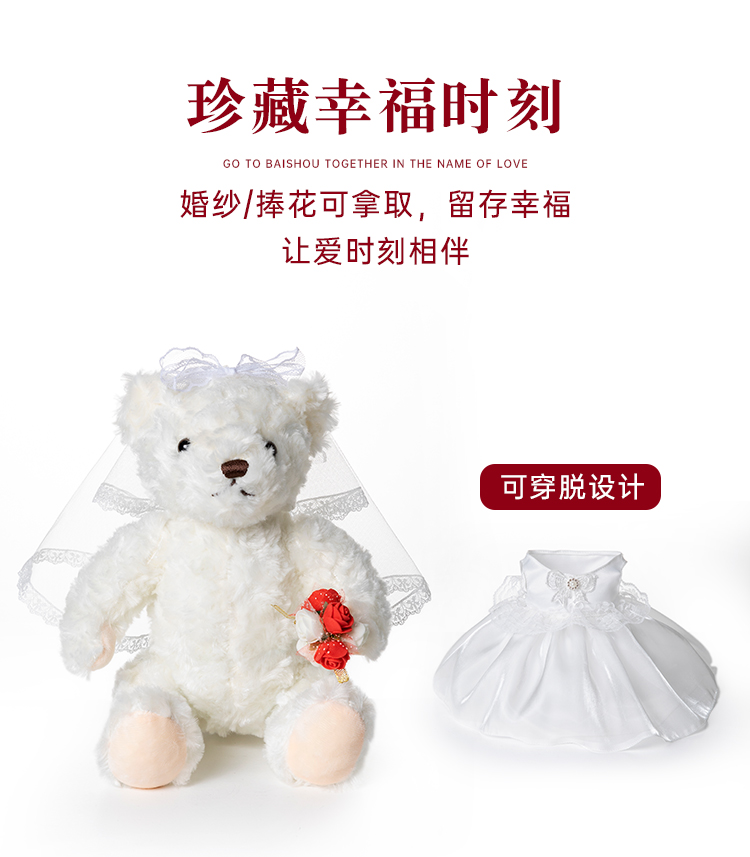 【实付满199送钥匙扣】【坐姿新婚小熊】婚纱毛绒小熊公仔订婚/结婚送礼情人节专属礼物创意玩偶婚庆用品