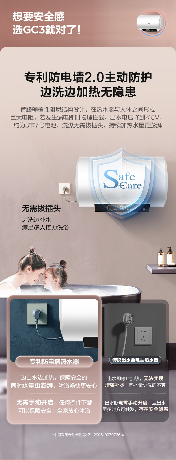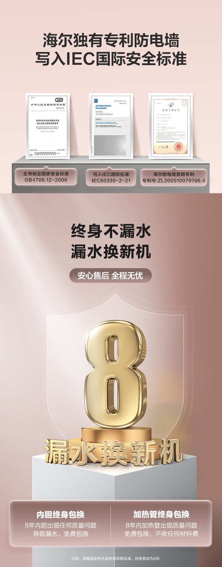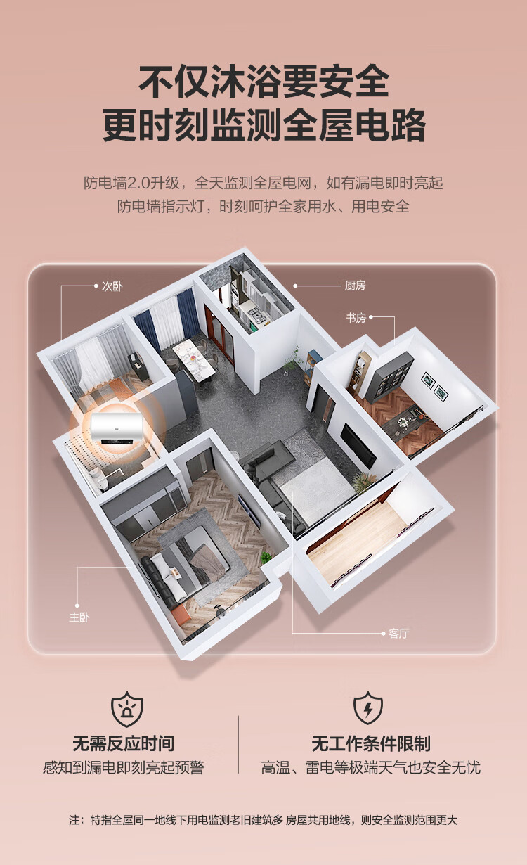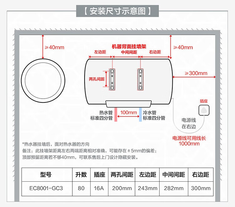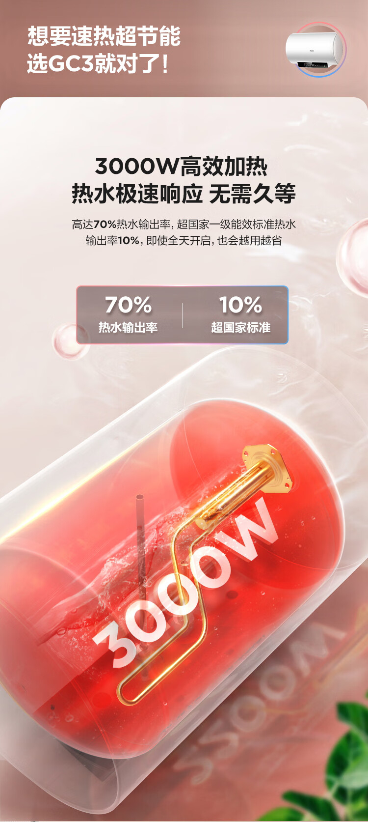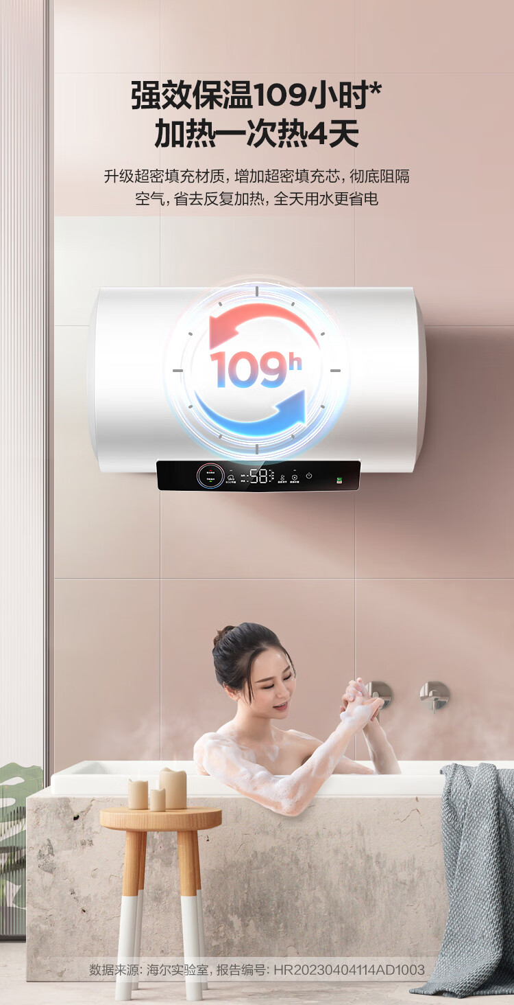 海尔(Haier)80升 电热水器 家用储水式 3000W大功率 高效加热 一级能效 长效保温 EC8001-GC3 *