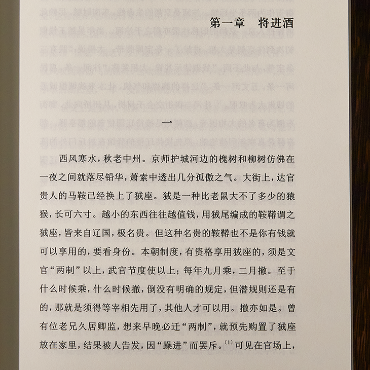 《庆历四年秋》开头逐渐寒凉的天气里,达官贵人们用上了以狨尾编成的鞍鞯,京师大街小巷里响起了叫卖香印的锣声,士人精神湮没之前的辉煌由此掀开;