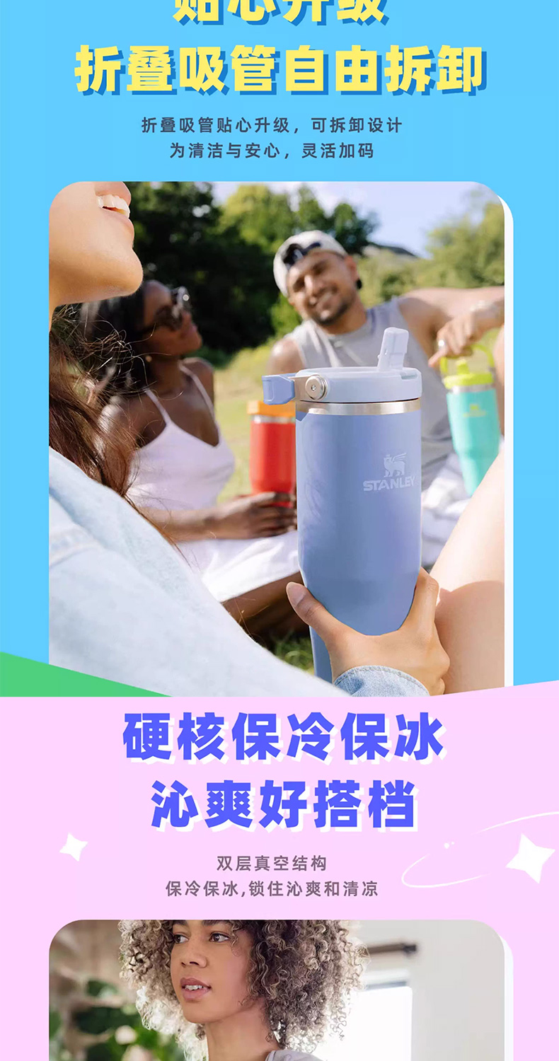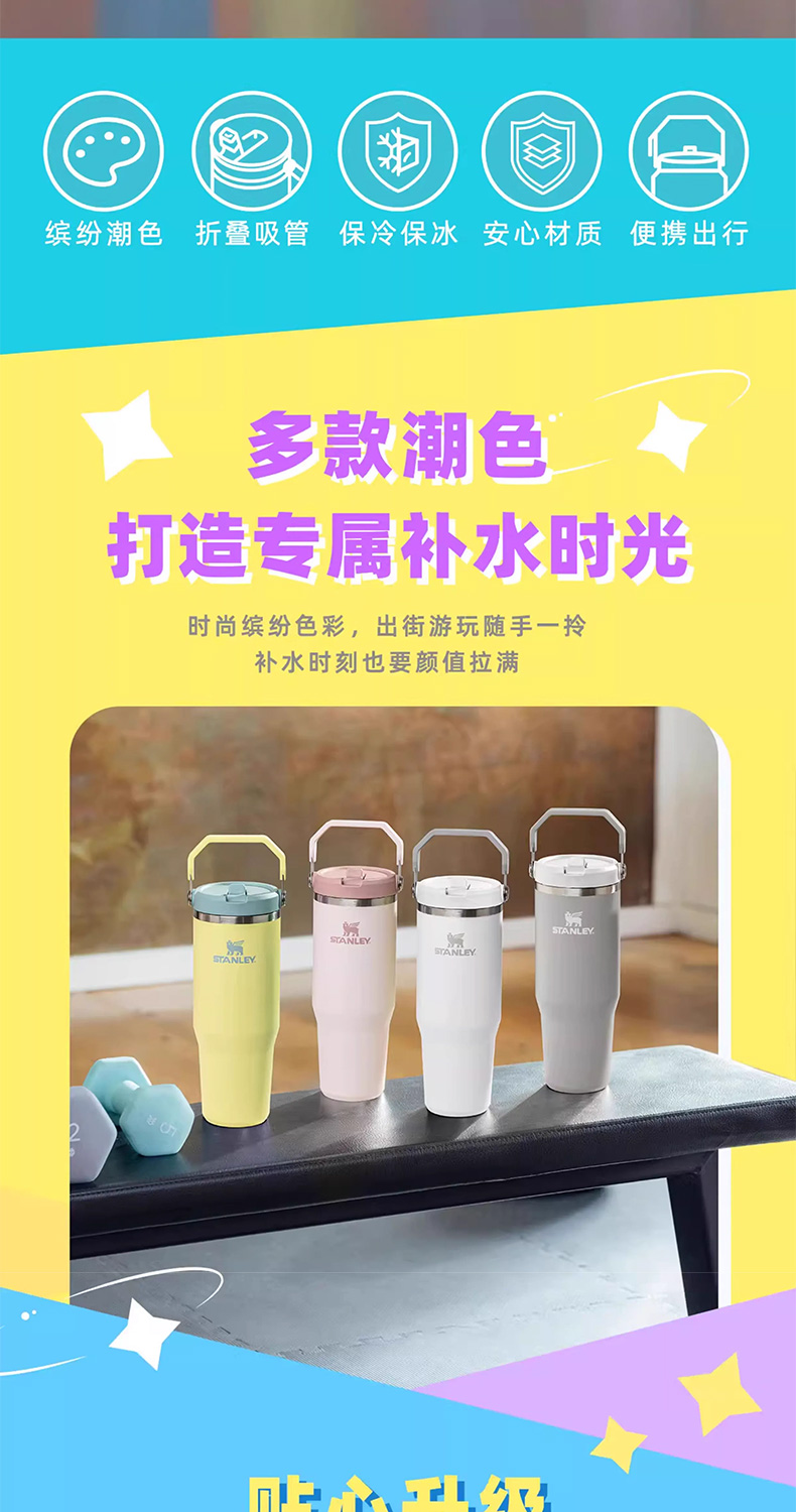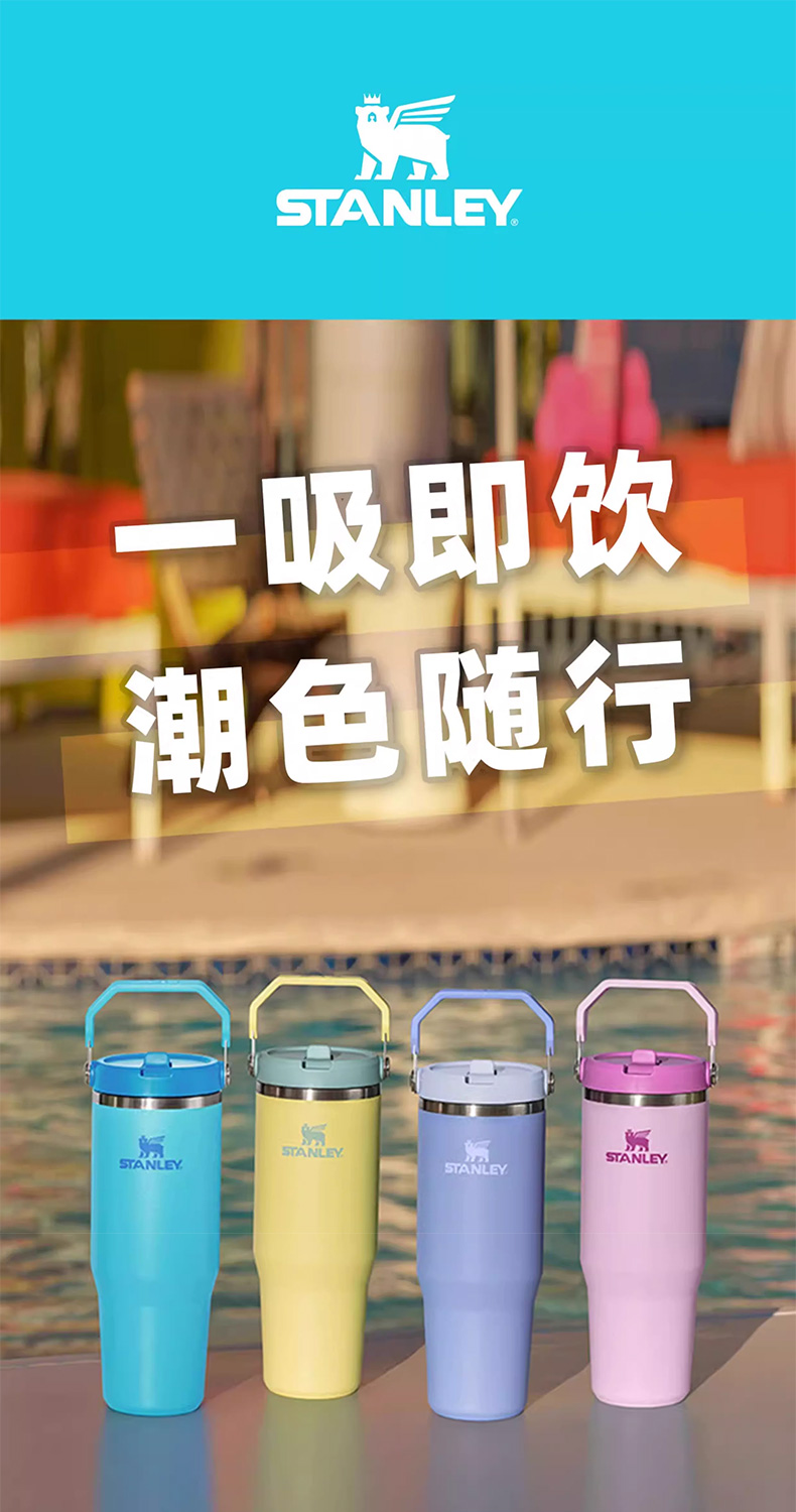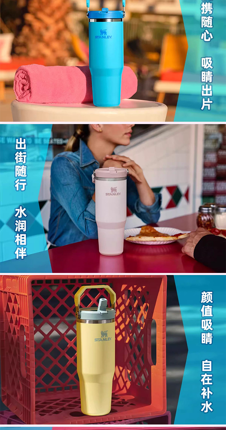Stanley 经典系列折叠吸管杯 水杯保冷高颜值男女不锈钢保温杯子