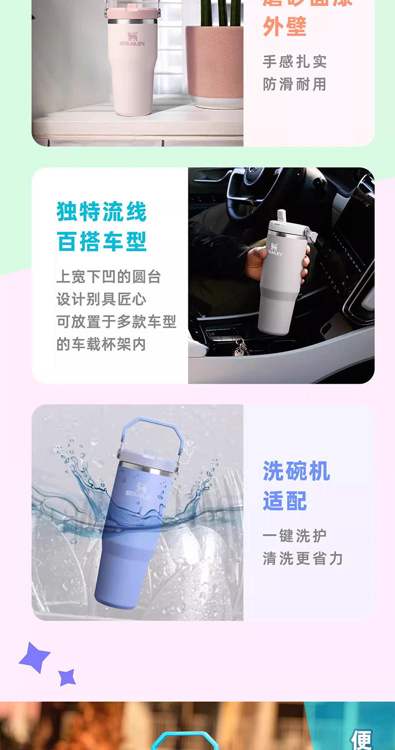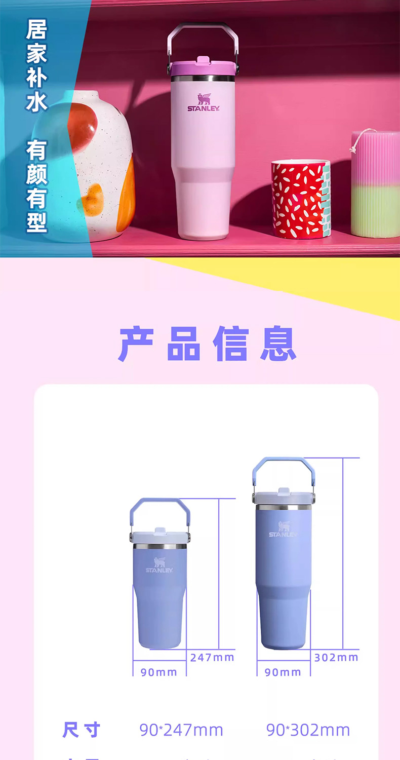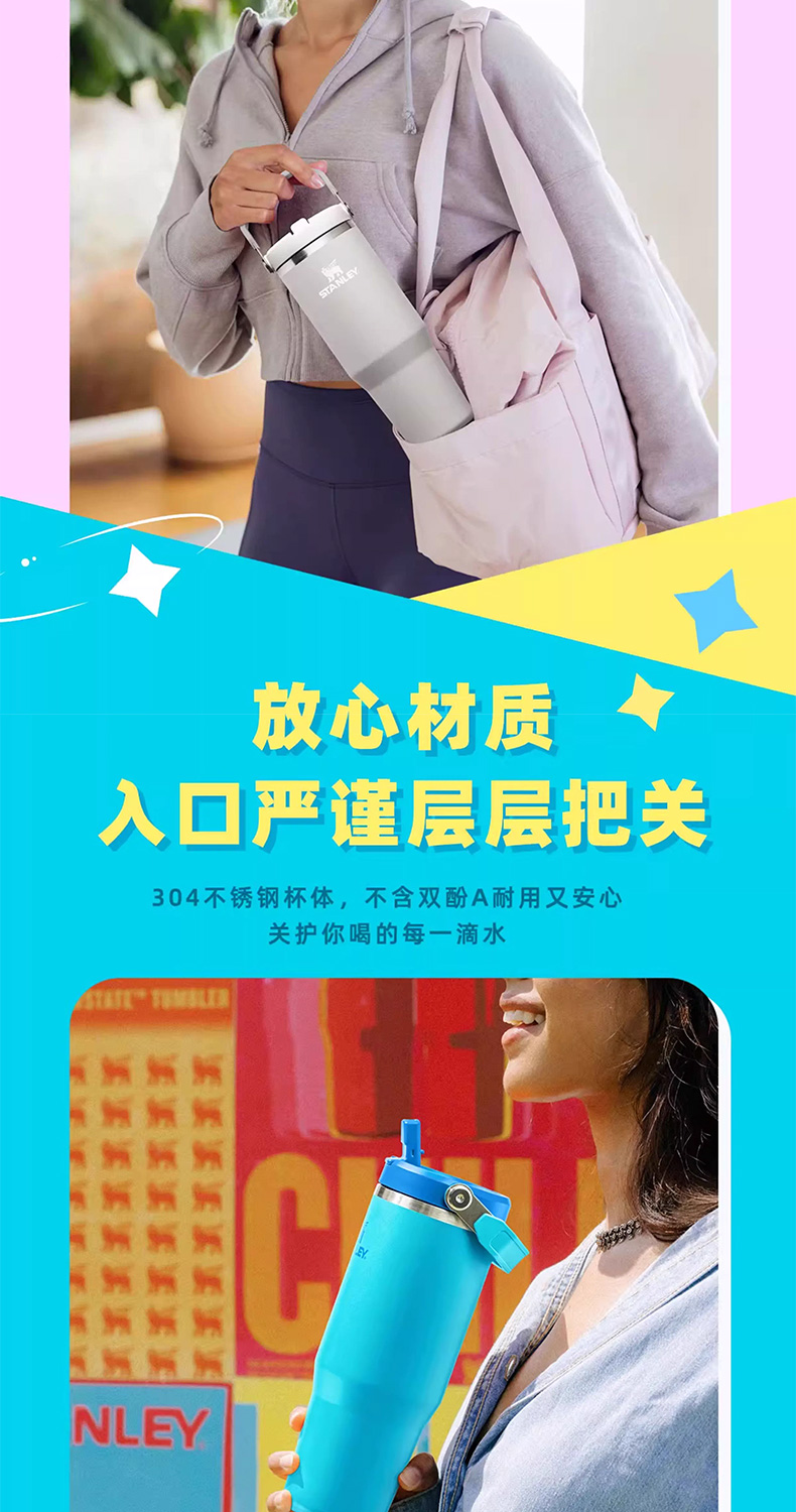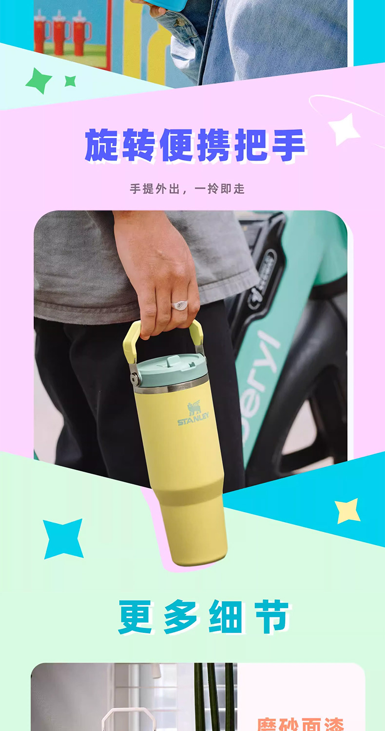 Stanley 经典系列折叠吸管杯 水杯保冷高颜值男女不锈钢保温杯子