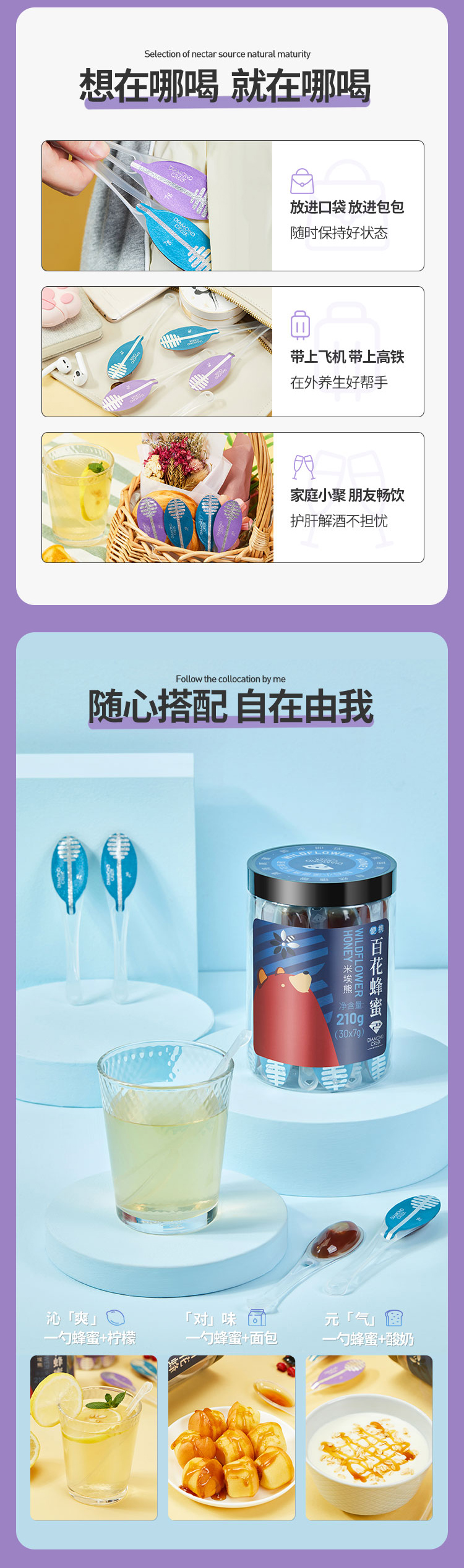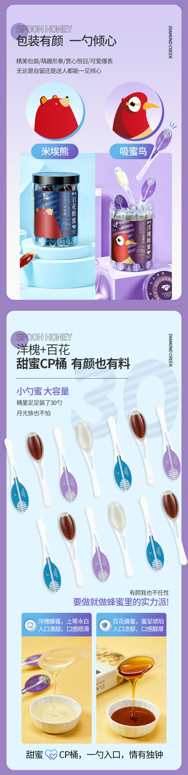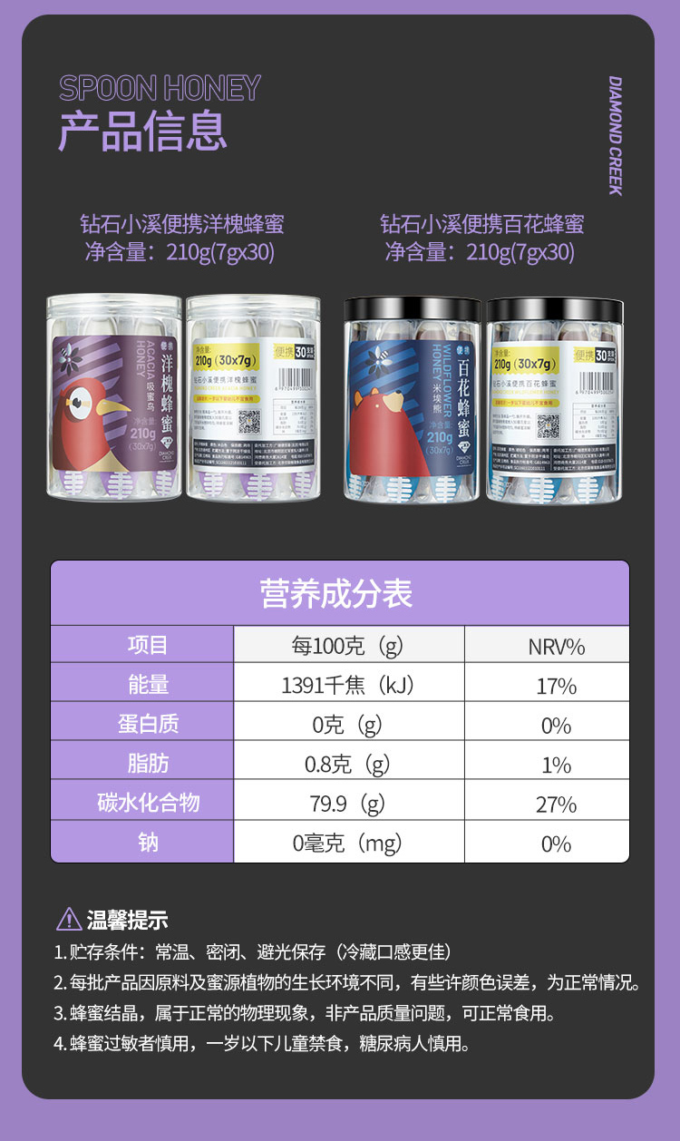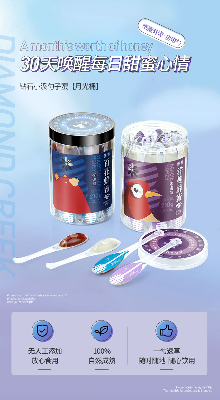 钻石小溪 便携勺子蜂蜜 (百花蜜 +洋槐蜜)组合装 420g/盒 【包邮直发】