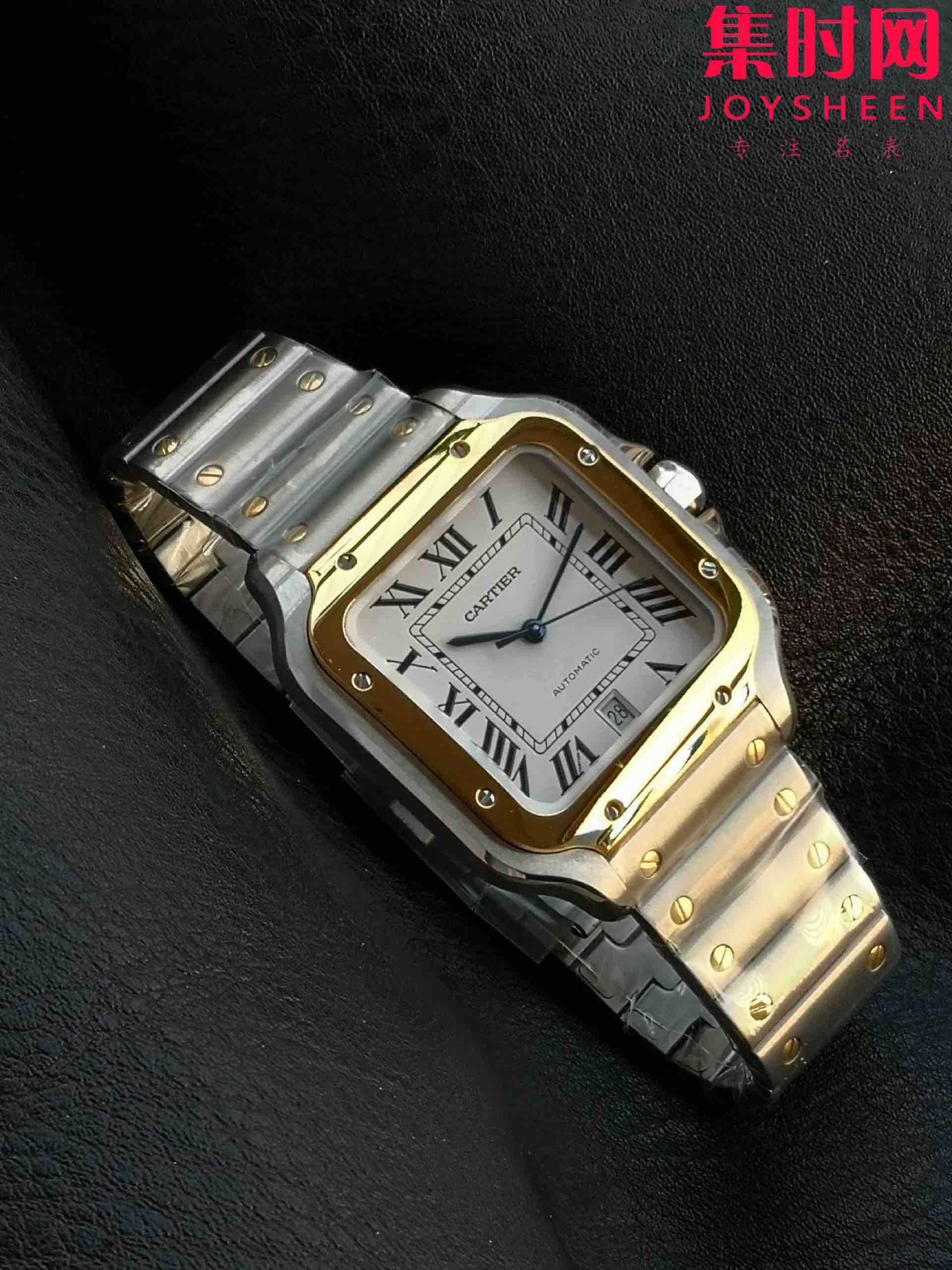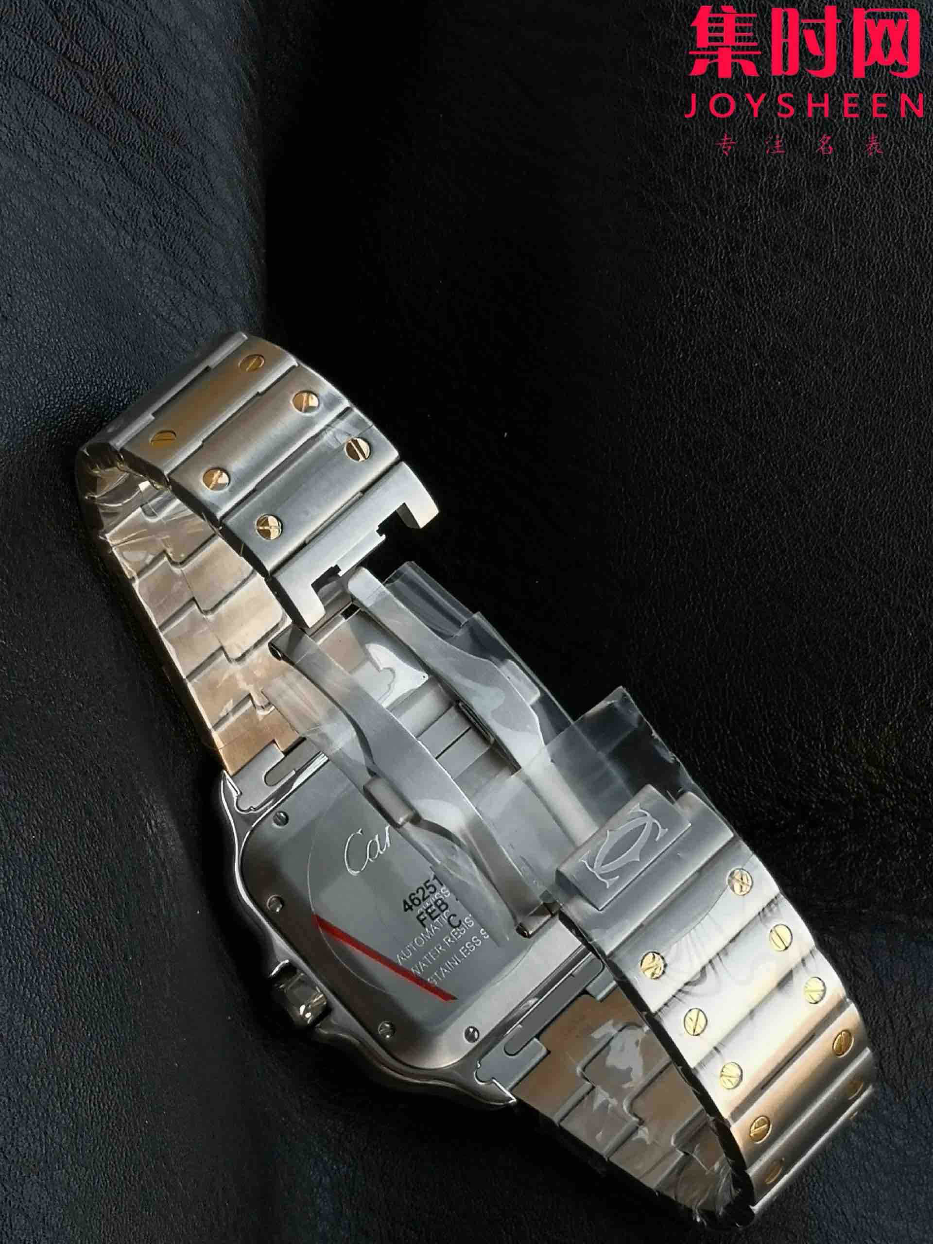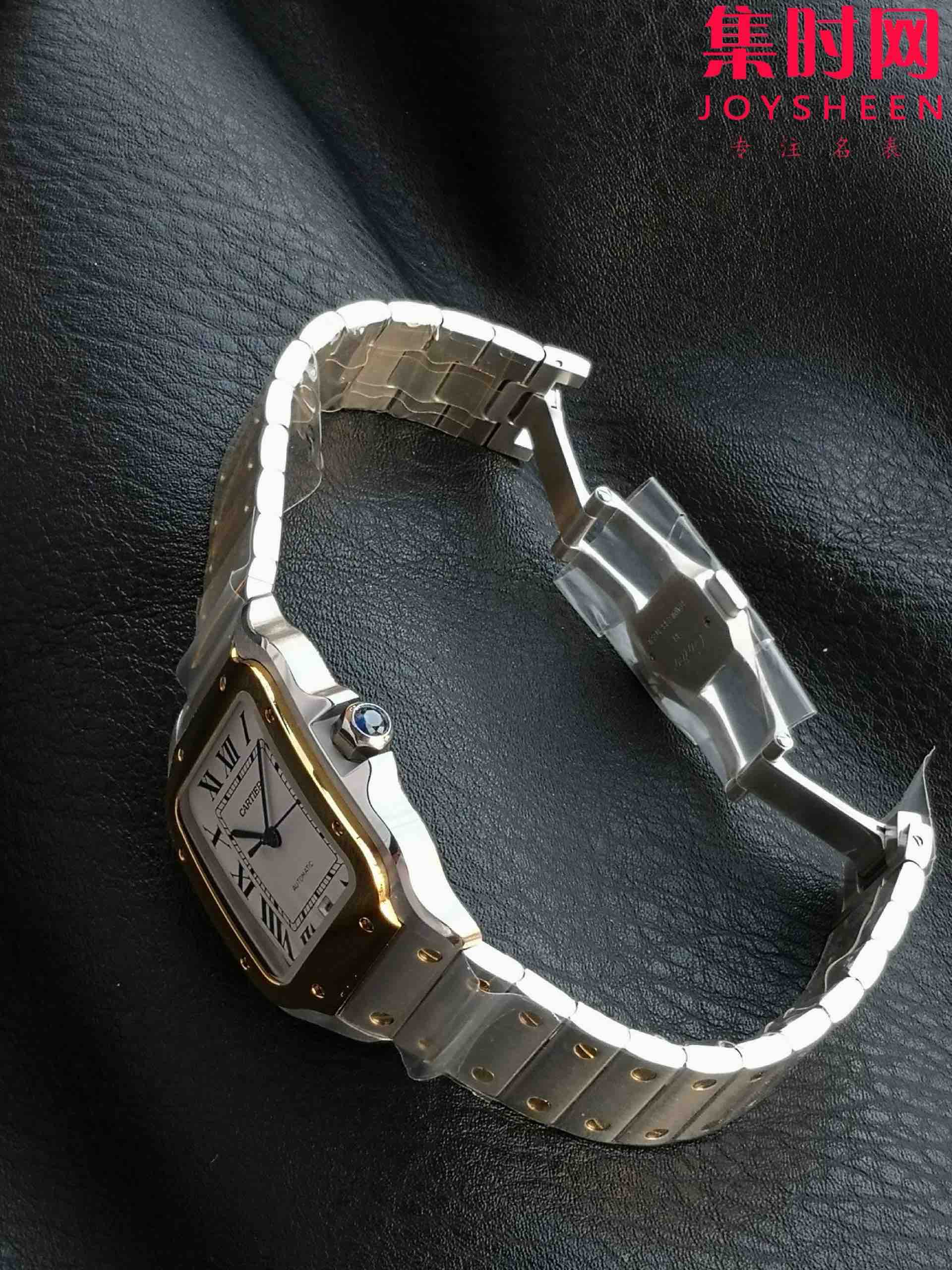 GF卡地亚山度士系列W2SA0009 山度士大号 间金山度士 男士腕表 表径39.8mm 316L精钢表壳表链(折叠扣),配备"DmartLink"表链调节装置。蓝宝石水晶玻璃,镀银珠光表盘,剑形精钢指针,搭载进口9015全自动机械机芯,精准零返修!表径39.8mm
