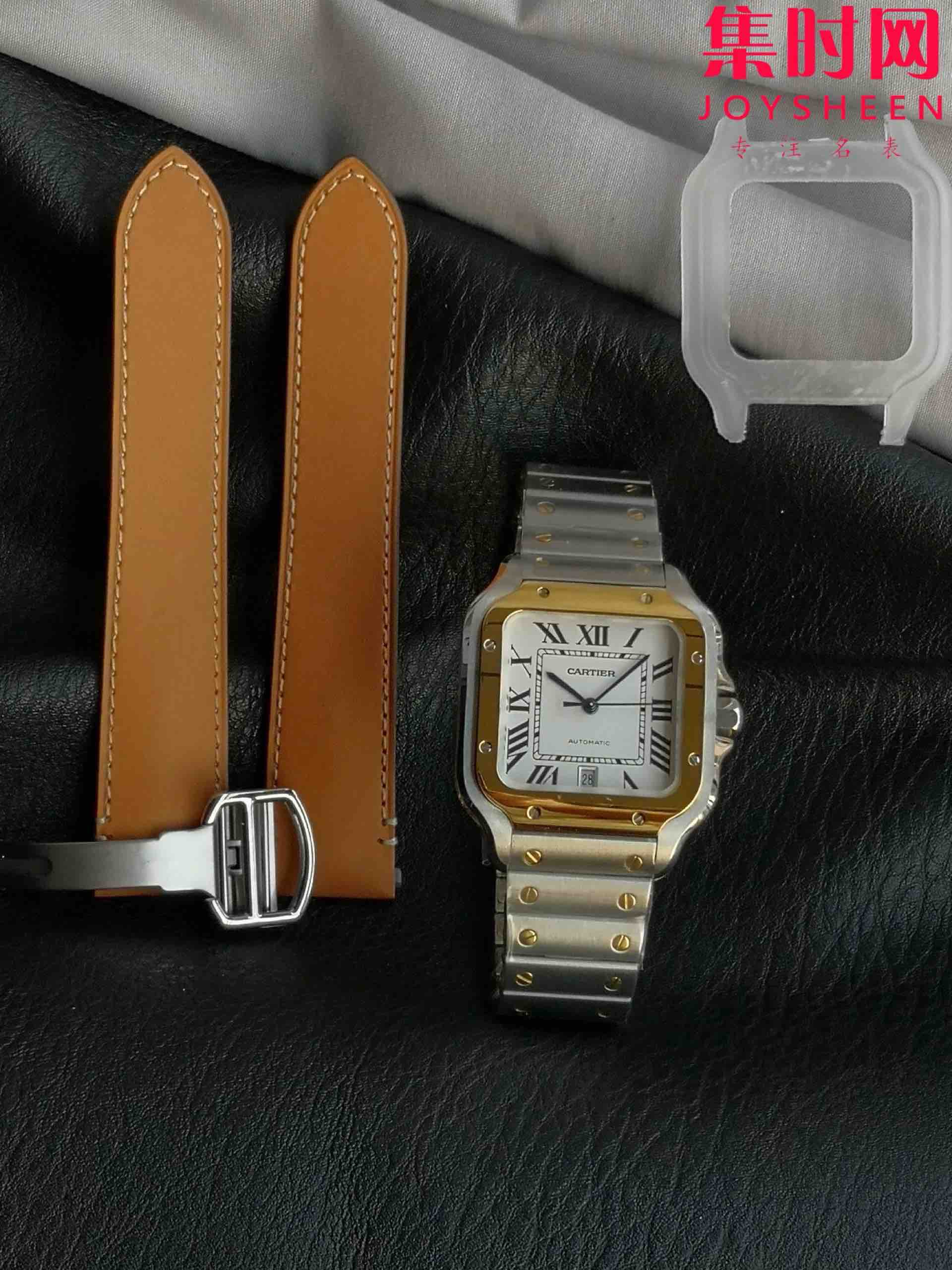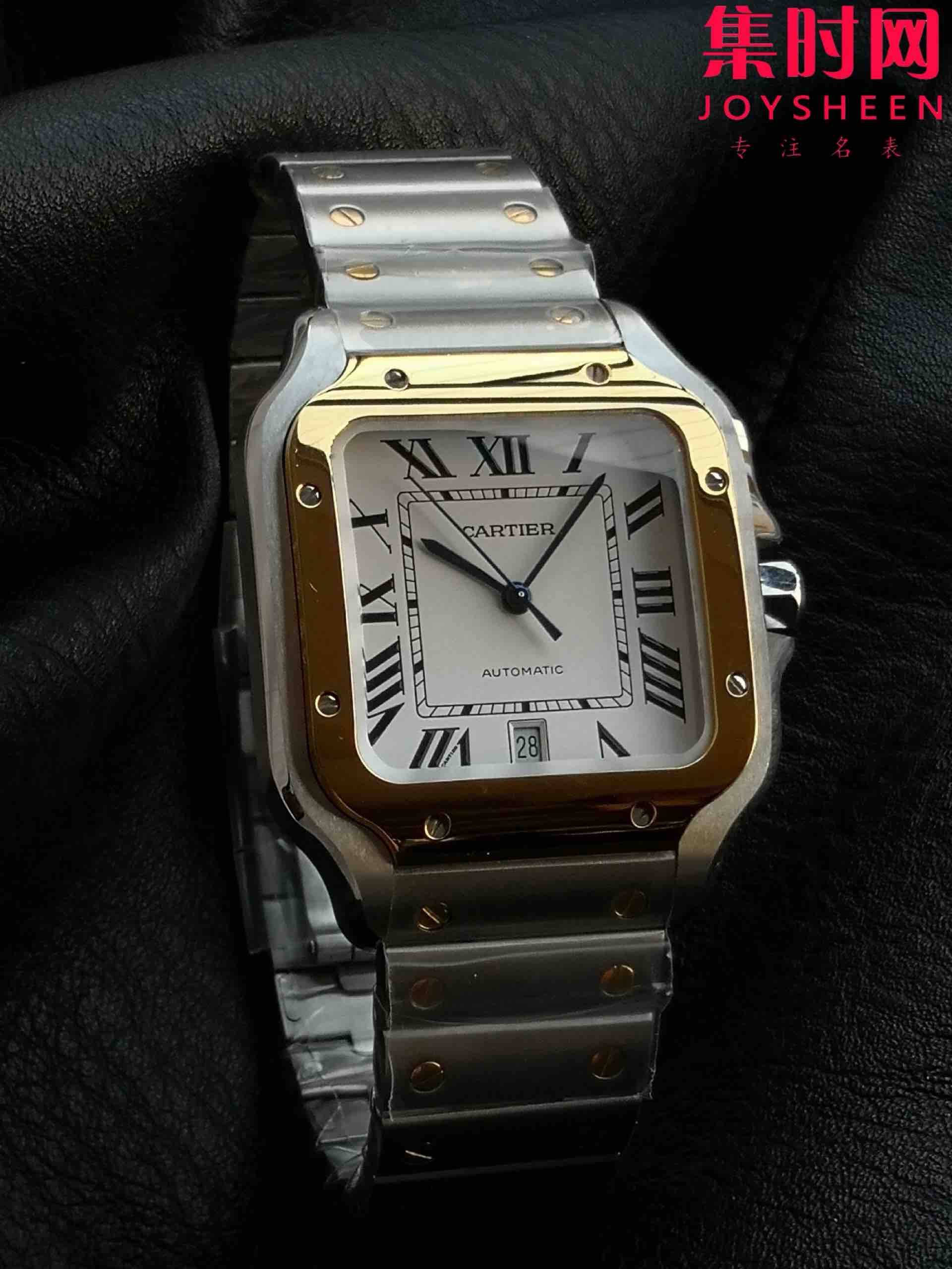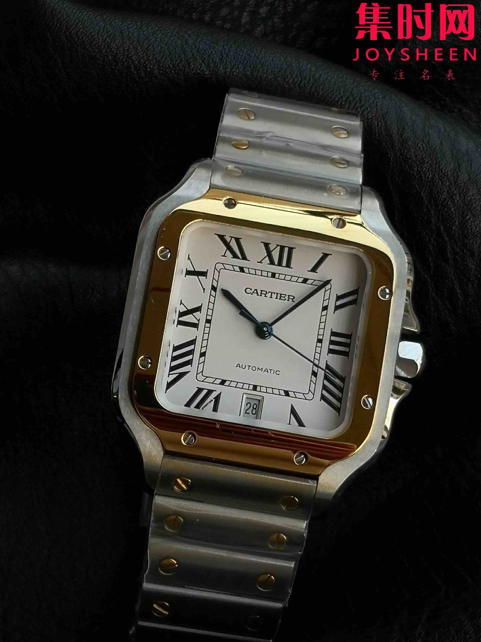 GF卡地亚山度士系列W2SA0009 山度士大号 间金山度士 男士腕表 表径39.8mm 316L精钢表壳表链(折叠扣),配备"DmartLink"表链调节装置。蓝宝石水晶玻璃,镀银珠光表盘,剑形精钢指针,搭载进口9015全自动机械机芯,精准零返修!表径39.8mm