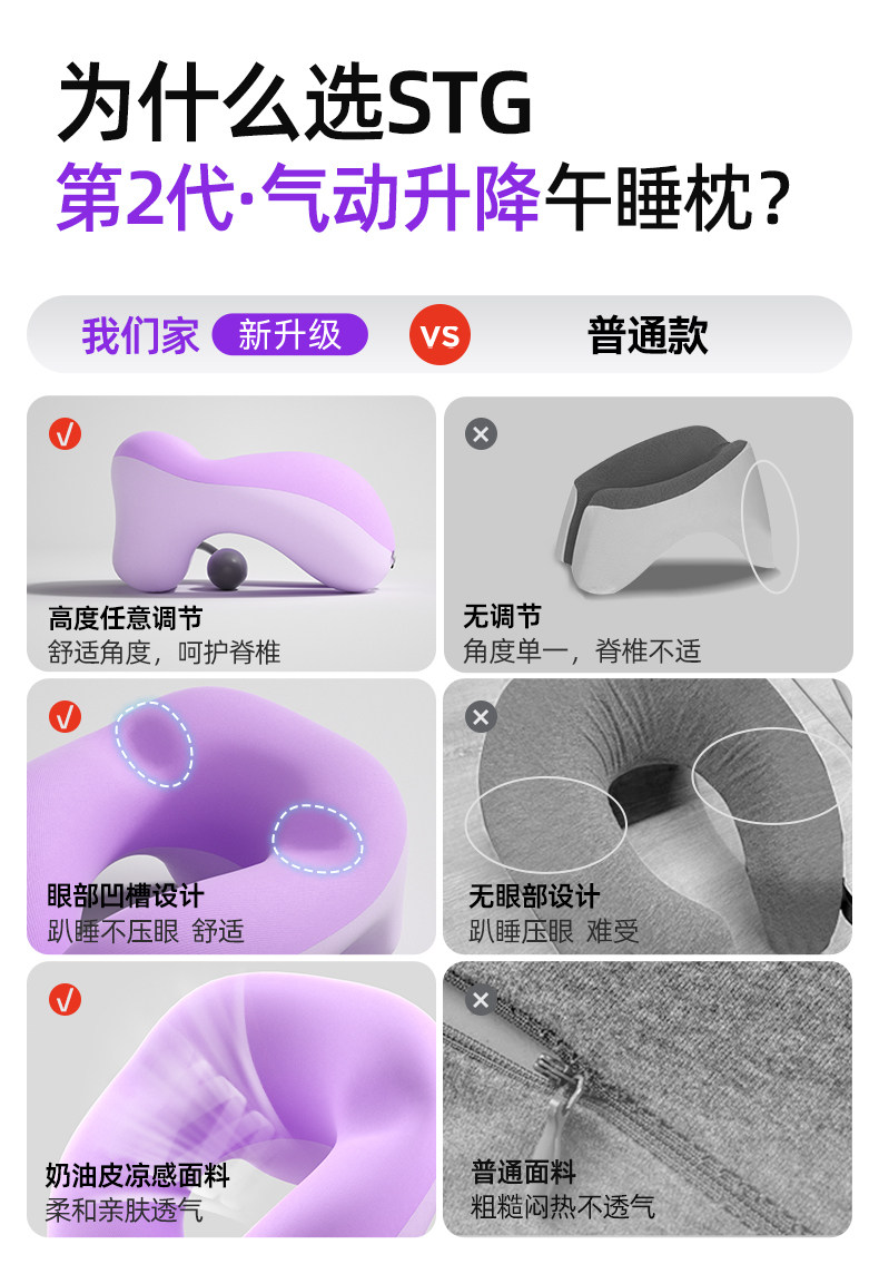 新品!【第二代气动升降 送收纳盒】猫太子STG气动午睡枕趴睡枕午休枕头趴枕桌上睡觉抱枕儿童成人通用枕