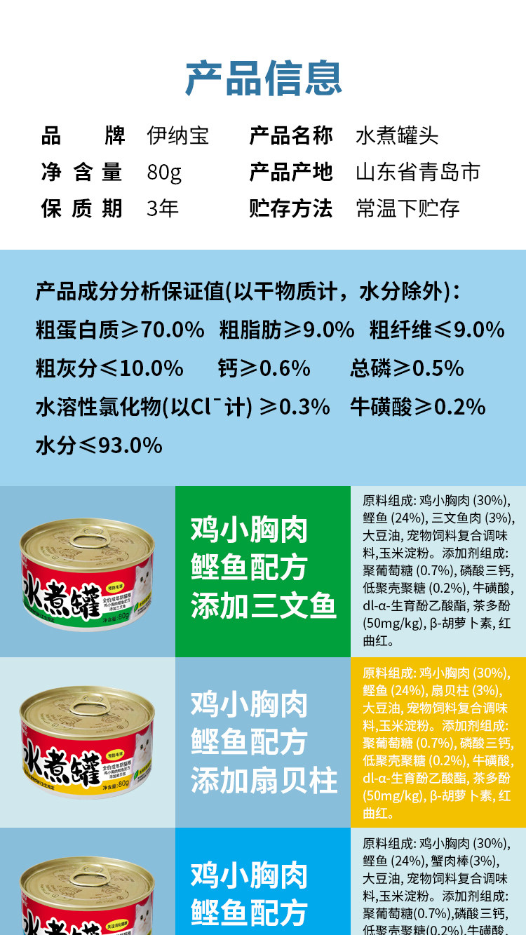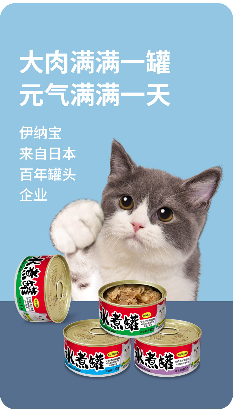 伊纳宝猫罐头水煮主食罐非幼猫高肉湿粮拌粮辅食猫条补水猫咪零食