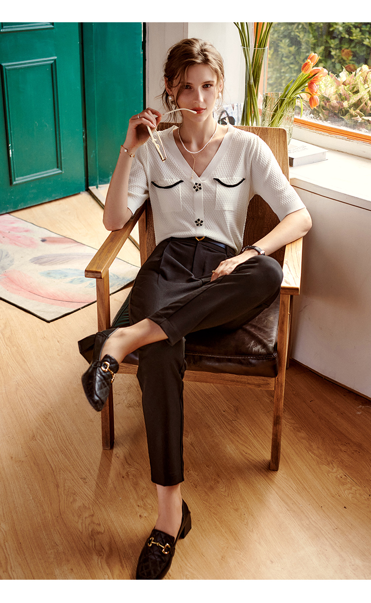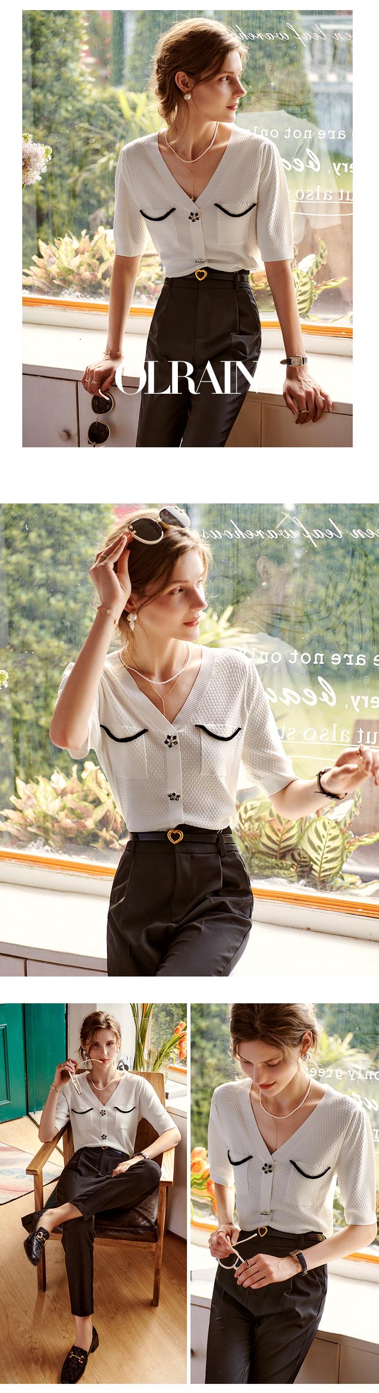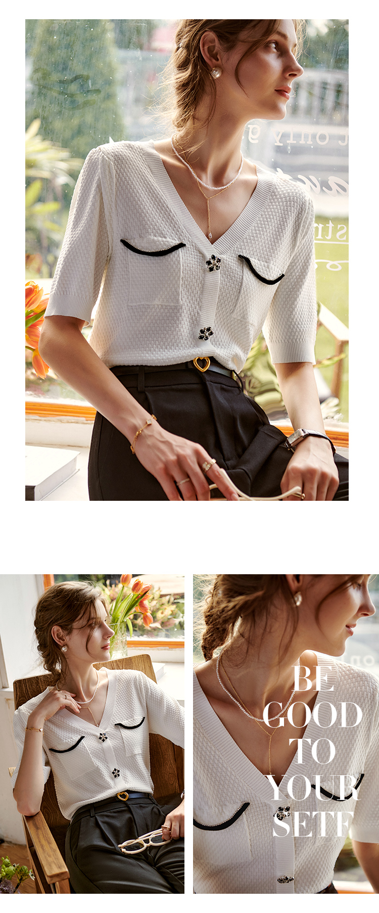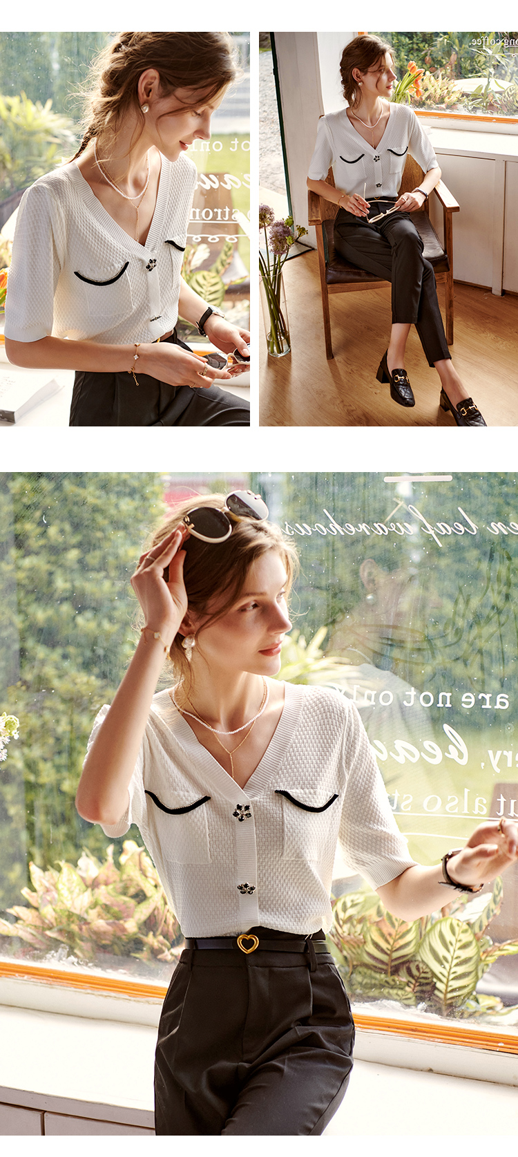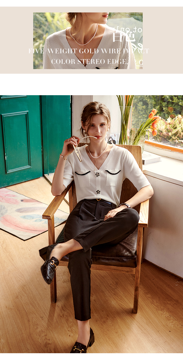 欧芮儿短袖针织衫女2021新款宽松气质小香风休闲撞色小衫上衣