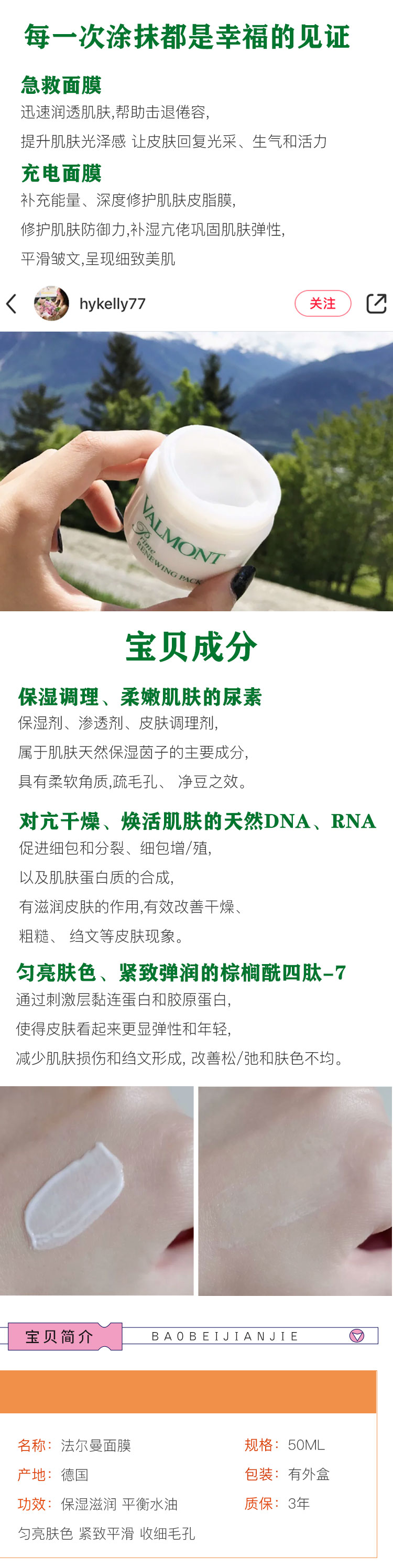 VALMONT法尔曼升效更新焕肤面膜 幸福面膜50ml保湿提亮肤修护包邮JPY带授权招加盟代理