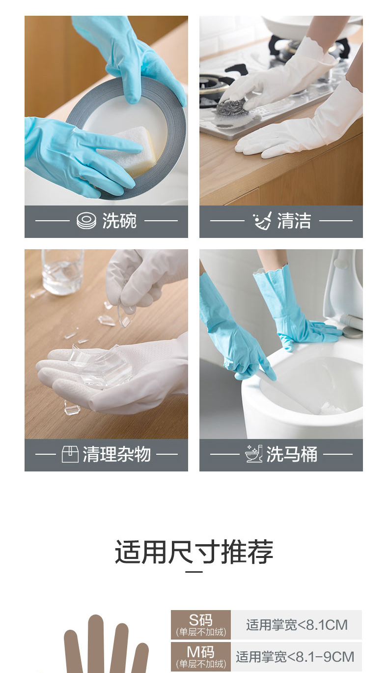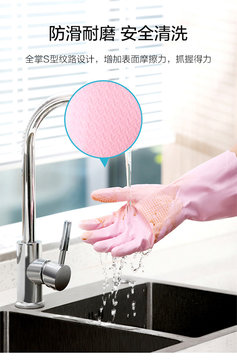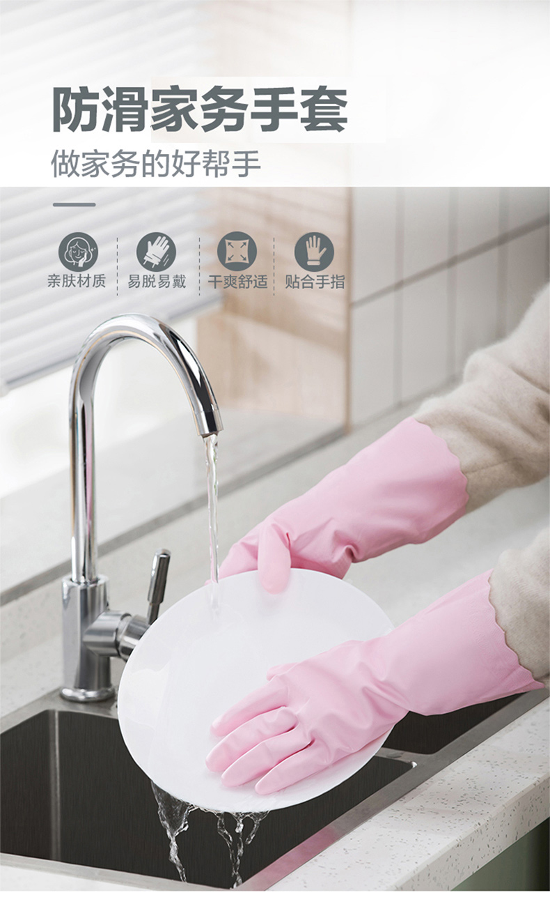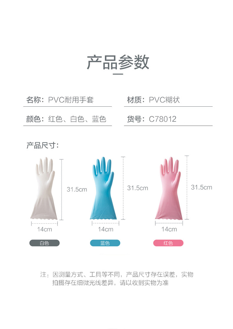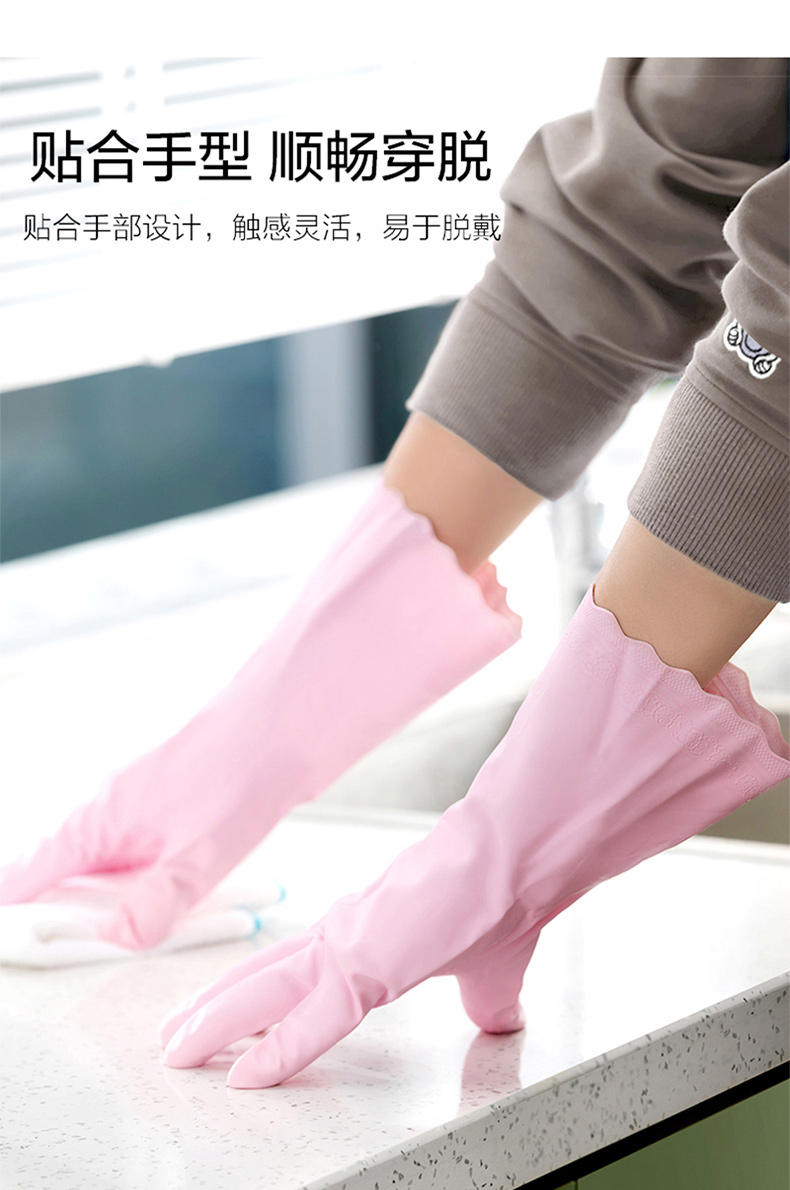 茶花 洗碗手套3双PVC加厚耐用家务清洁厨房防水洗衣服橡胶手套C78012*3