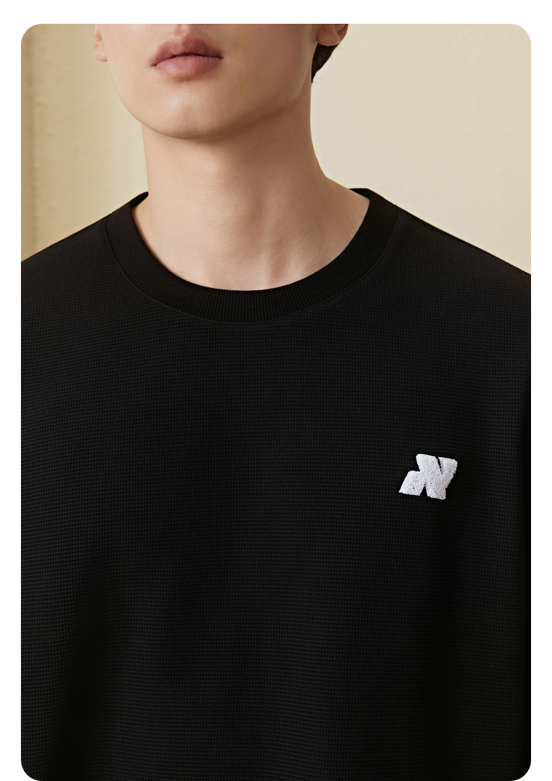 GXG男装 圆领卫衣华夫格肌理长袖内搭上衣 2025秋季热卖