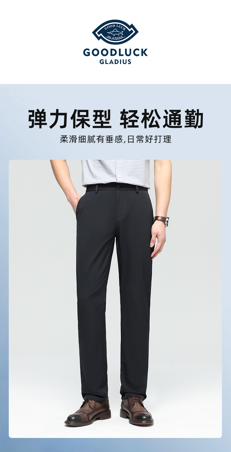 【高弹】德鲨鲨鱼休闲裤男青年2026春夏新款商务直筒弹力长裤子男