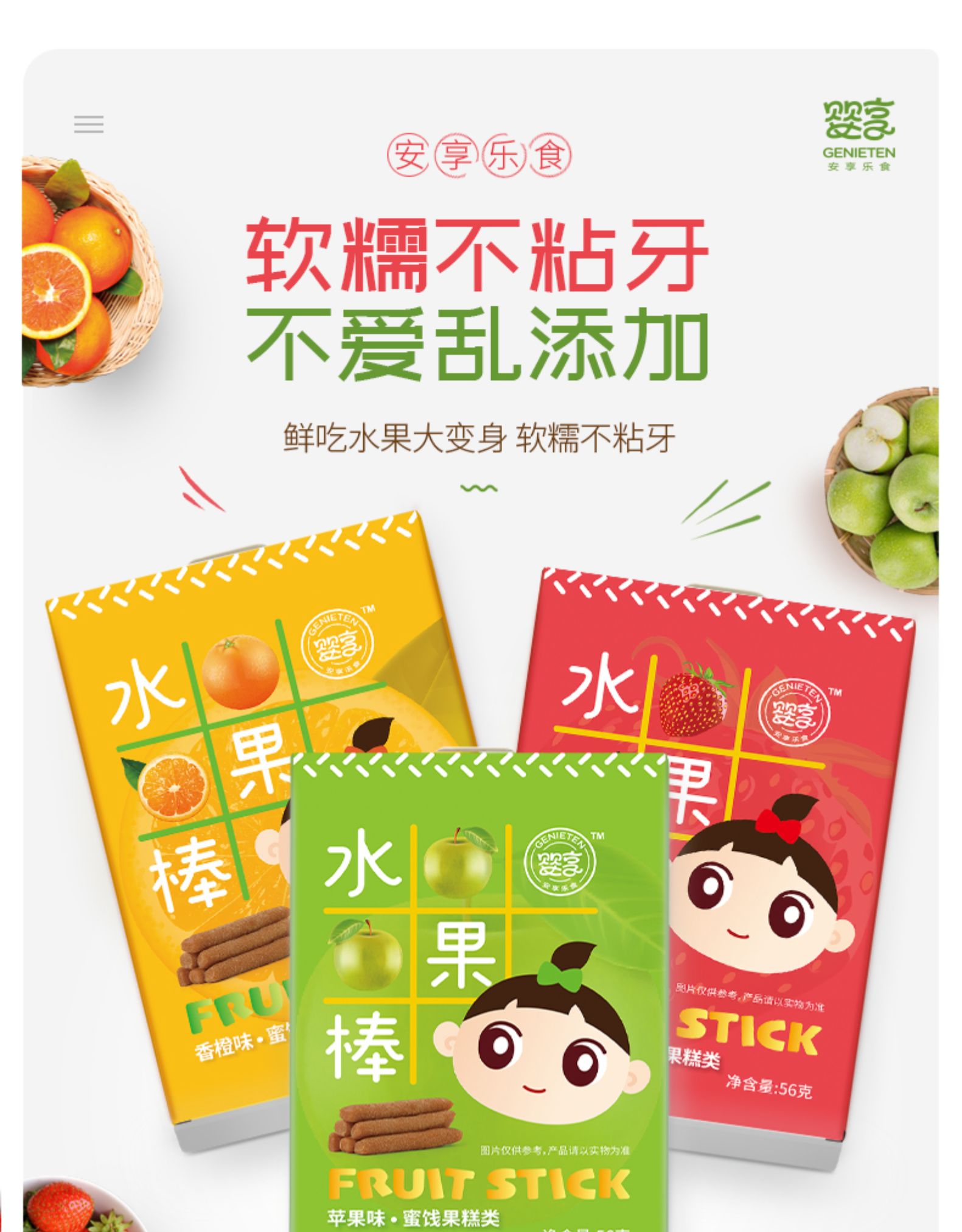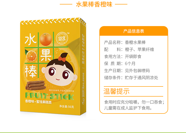 婴享儿童水果棒水果条 无添加零食独立包装56克
