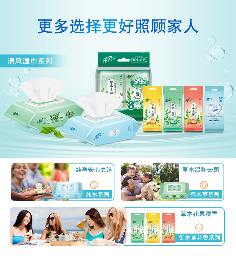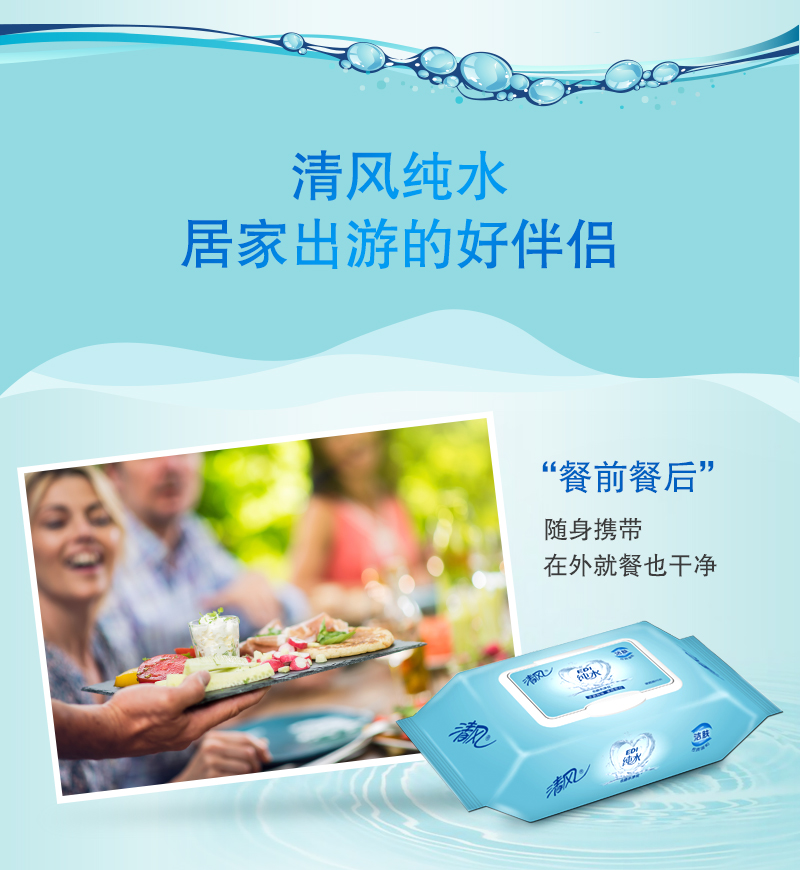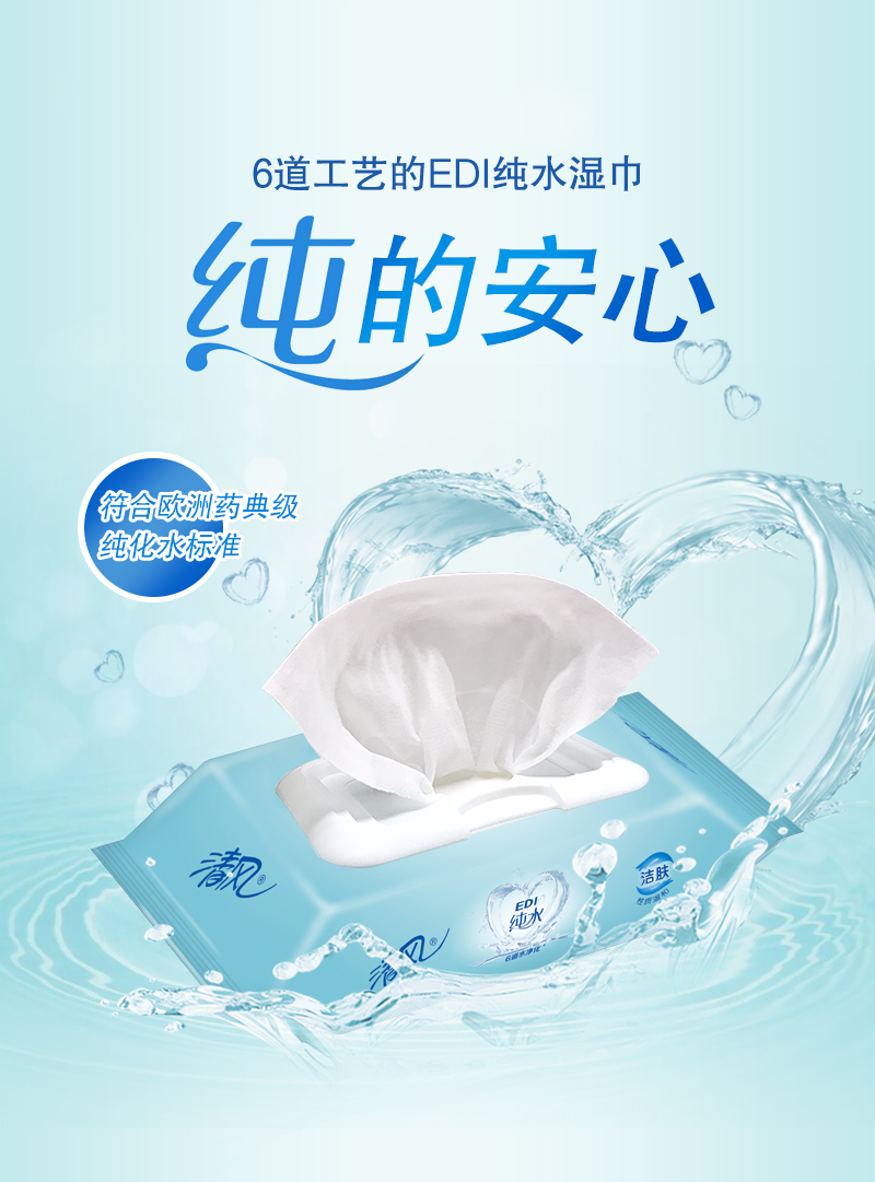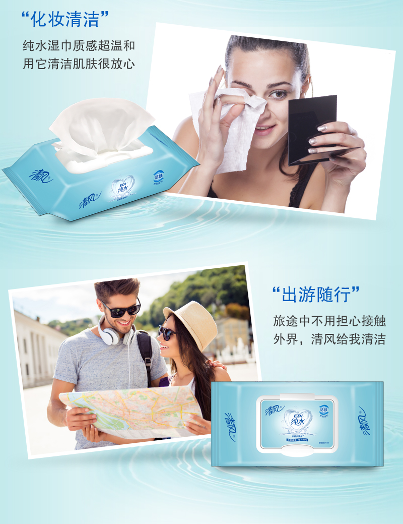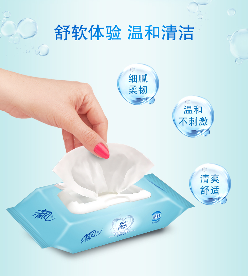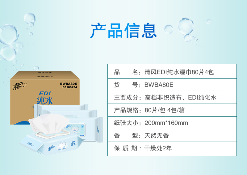 清风 (APP) 湿巾 洁肤柔湿巾 EDI纯水系列 80片*4包 (整箱销售)