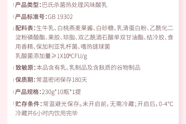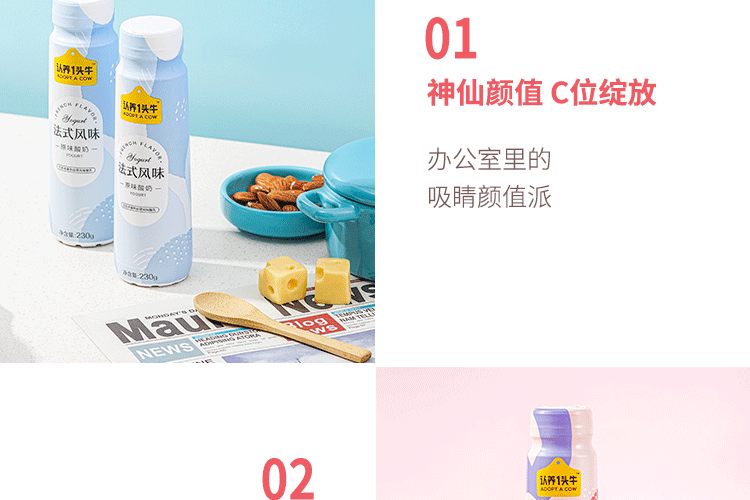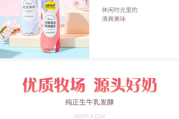 认养一头牛法式风味高端酸奶原味+白桃燕麦味230g*10瓶共2提