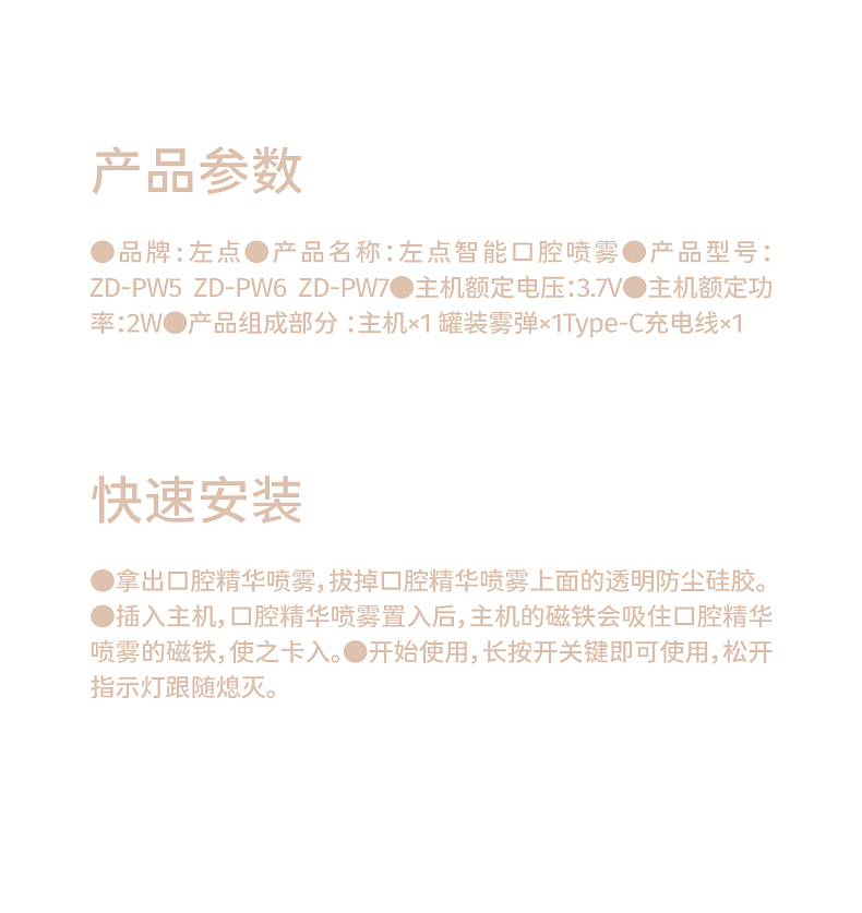 左点智能口腔喷雾器微米级雾化喷雾口气清新剂
