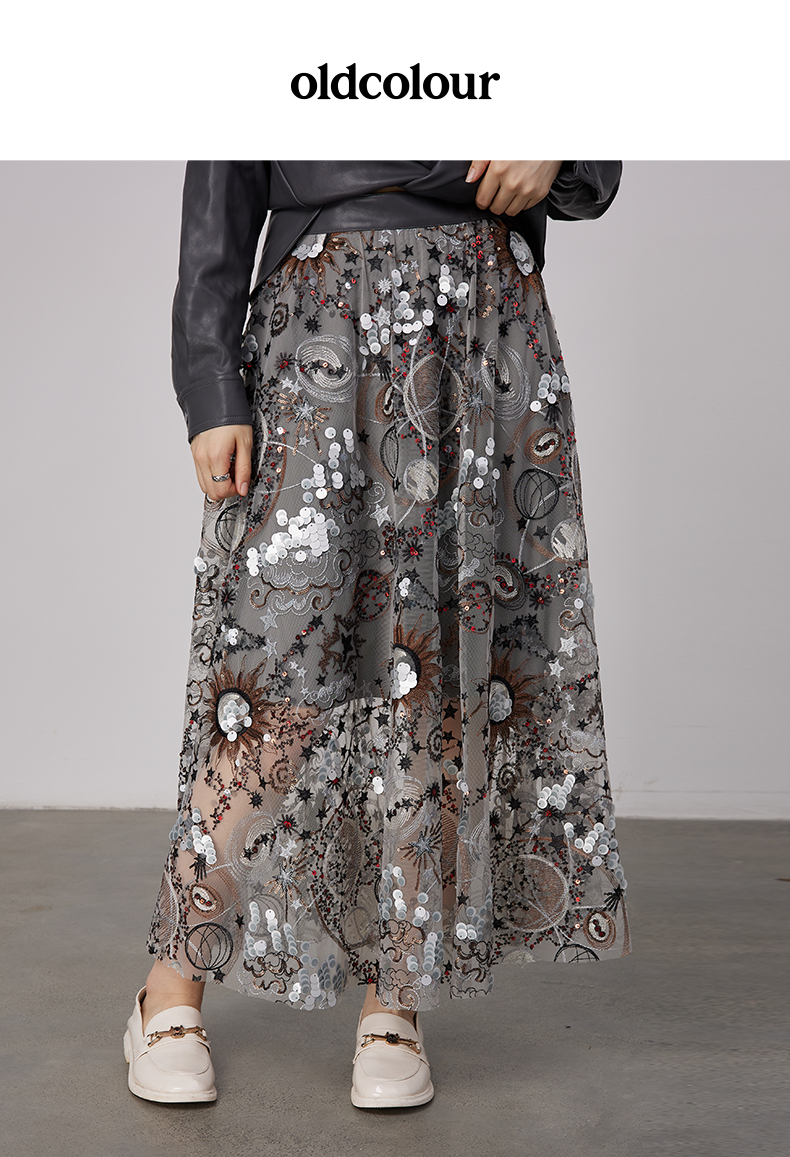 oldcolour2021秋商场同款气质印花高级感显瘦半身裙N34063461