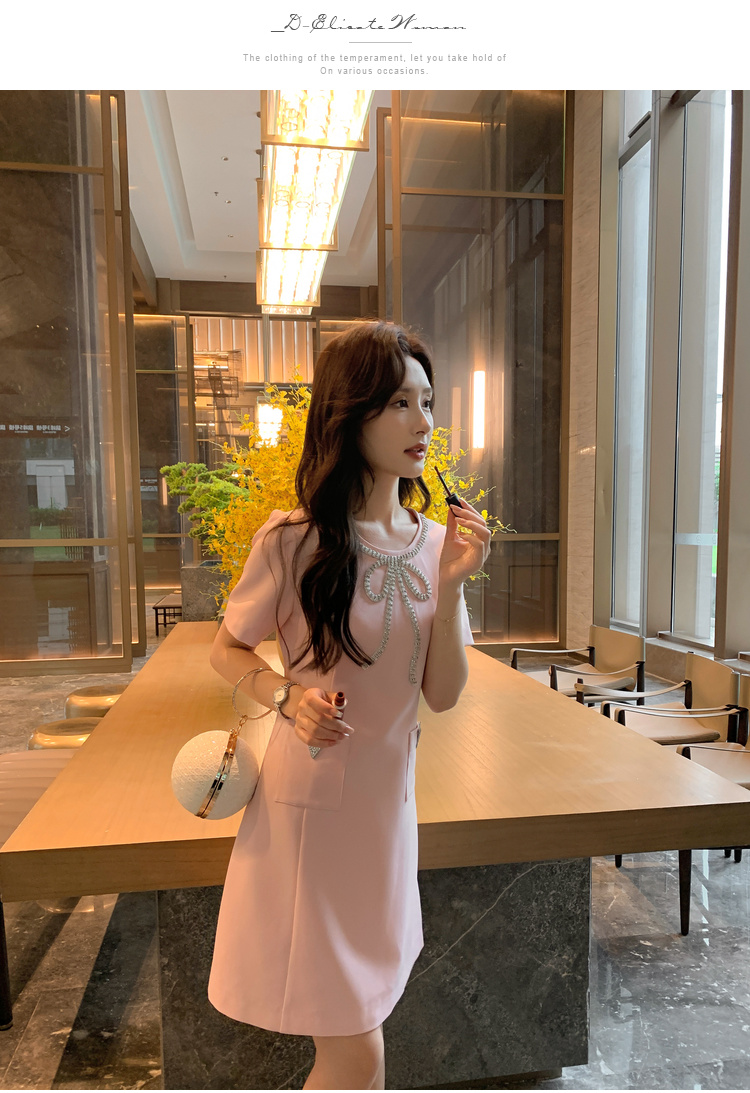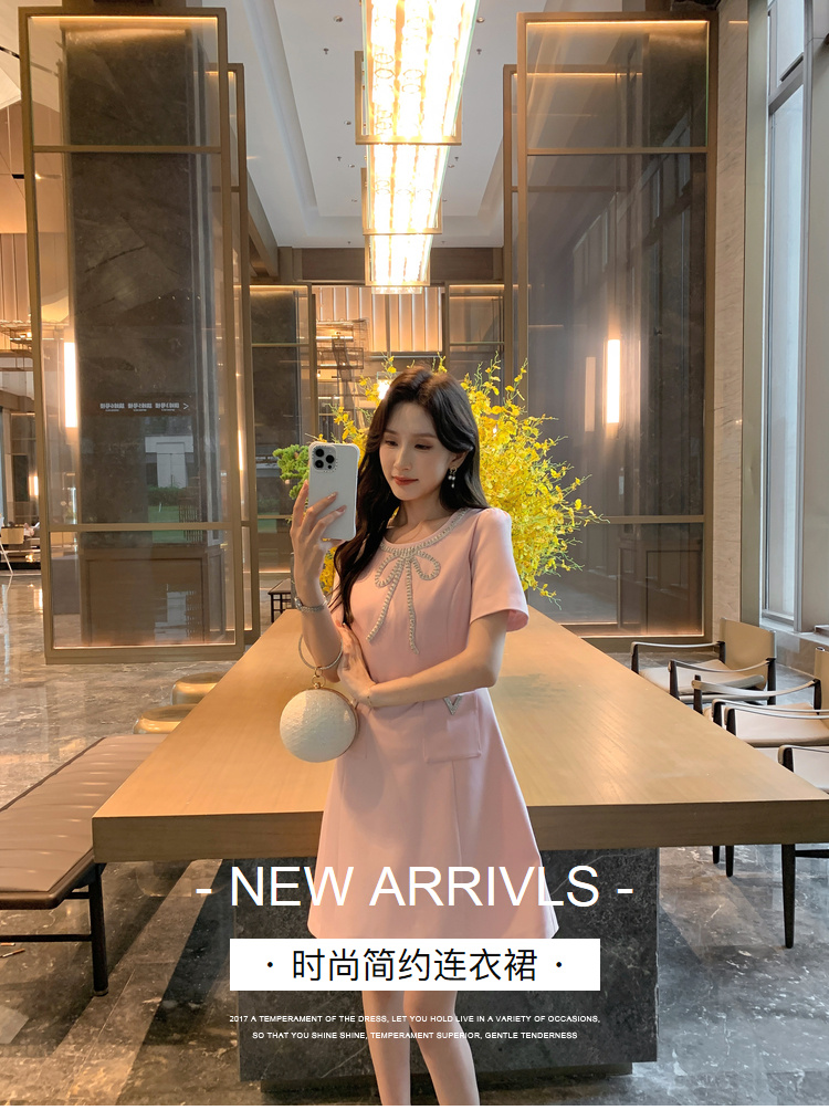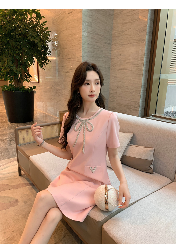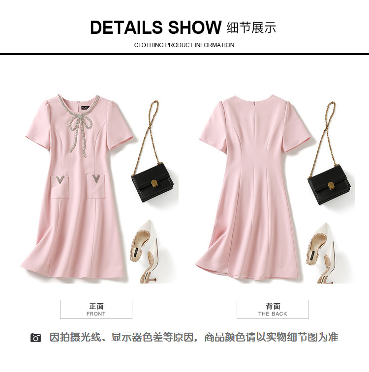 [奢姿轻奢系列]大码女装2024夏季蝴蝶结装饰裙子胖妹妹时尚连衣裙8942890102【1】