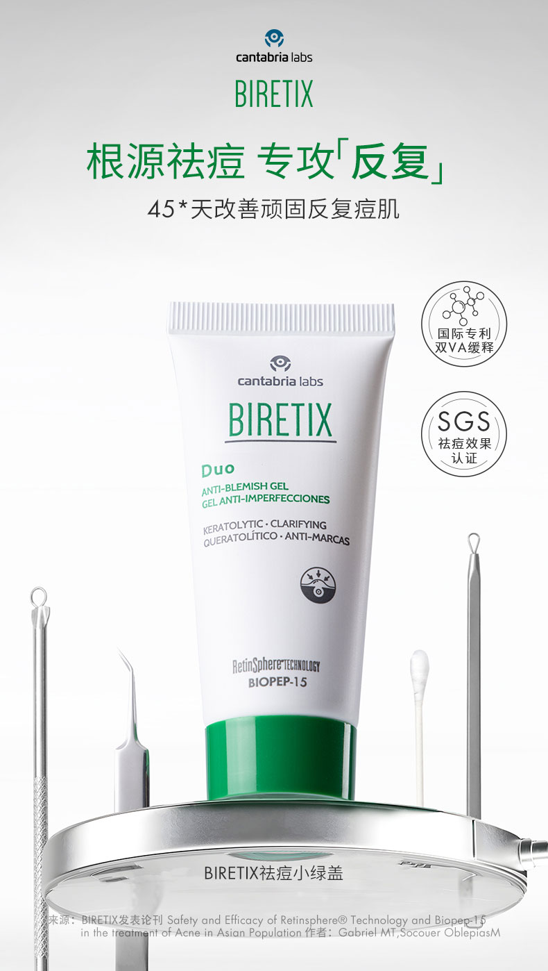 【郑州仓】西班牙BIRETIX 祛痘小绿盖精华乳Duo30ml/瓶 赠抗痘洁面10ml*5
